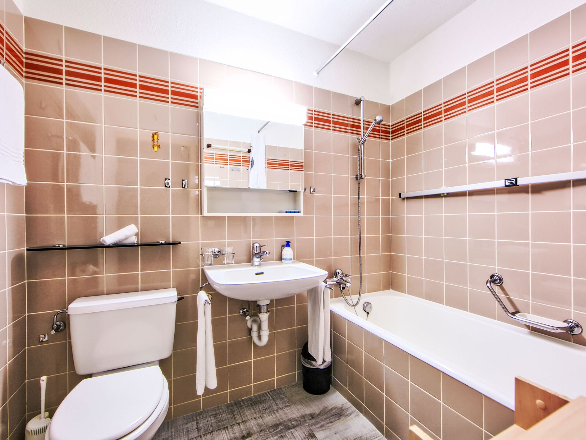 Residentie "Ringstrasse (Utoring)". In de plaats, 500 m van het centrum, 20 m van het skigebied. In het huis: bar, salon, tafeltennis, speelkamer, lift, bergruimte voor fietsen, berging voor ski's, centrale verwarming, wasmachine, droger (extra). Broodjesservice en drankjesservice. Toegangsweg tot aan het huis (bergweg). In de winter sneeuwkettingen aanbevolen, 's winters 4x4 aanbevolen. Parkeerplaats bij het huis, Openbare parkeergarage op 50 m, extra. Levensmiddelenwinkel, supermarkt, restaurant 500 m, bushalte "Leukerbad, Bristol" 250 m, openluchtzwembad 500 m, thermaalbad 300 m. Tennis 500 m, kabelbaan, kabelbaan op, ski faciliteiten, skipisten 20 m, rodelbaan, langlaufloipe 500 m, ijsbaan 1 km. Bekende skigebieden kunnen gemakkelijk worden bereikt: Leukerbad Torrent 20 m. Wandelgebied Gemmi 1 km. Het huis staat op een beboste helling op het zuidwesten, direct naast de Torrent-kabelbanen. Slechts een korte trappenweg scheidt het huis van het dalstation. Parkeermogelijkheid: in de winter parkeerplaats CHF35.00/week, garage CHF 70.00/week, in de zomer parkeerplaats gratis, garage CHF 35.00/week.