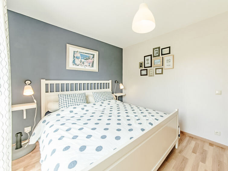 Vosseslag 3 km van De Haan aan Zee: Moderne residentie "Duinenzicht II". Aan de rand van de plaats, 3 km van het centrum van De Haan, van zee, 650 m van het strand. Voor medegebruik: groot, verzorgde tuin 160 m2. Voor alleengebruik: terras (18 m2), tuinmeubelen, openbare parkeerplaatsen 50 m. Supermarkt 3 km, restaurant 50 m, bakkerij 10 m, café, fietsverhuur 3 km, tramhalte "Vosseslag" 500 m, bushalte "Halte Heidelaan" 230 m, treinstation "Oostende" 10 km, zandstrand "Strand Vosseslag" 650 m, openluchtzwembad 12 km, overdekt zwembad 2.5 km, thermaalbad "Thermae Palace" 12 km, fKK-strand 2.3 km. Jachthaven 12 km, golfterrein (18 holes) 1.6 km, midgetgolf 3.1 km. Attracties in de buurt: Familiepark De Sierk 700 m, Oostende 8 km, Blankenberge 12 km, Brugge 19 km, Sea Life Blankenberge 13 km, Plopsaland De Panne 45 km. Wandelgebied Beeweg 3 km, Landerijenpad 3 km, Spuikompad 3 km.