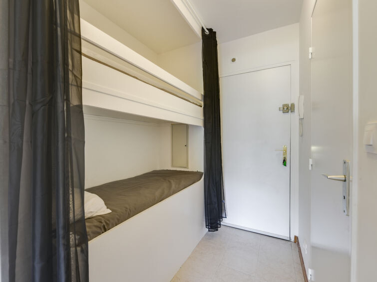 Studio 1-kamer 23 m2 op de 2e verdieping. Doelmatig en mooi ingericht: woonkamer met 1 2-pers divanbed (135 cm, lengte 185 cm), TV (Flatscreen TV), radio en CD-speler. Uitgang naar het terras. Hal met 1 x 2 stapelbedden (90 cm, lengte 190 cm). Kookhoek (4 keramische glas kookplaten, broodrooster, waterkoker, elektrische koffiemachine, combimagnetron). Douche/WC. Elektrische verwarming, air-conditioning. Balkon 9 m2. Balkonmeubilair, ligstoelen (2). Uitzicht op het dal. Ter beschikking: strijkijzer, kinderstoel, kinderbed tot 3 jaar, haardroger, babycommode. Internet (Internet (WiFi), gratis). Garage nr. 46, hoogte 189 cm, breedte 223 cm. 1 klein huisdier/hond toegestaan. TV alleen FR. Rookmelders.