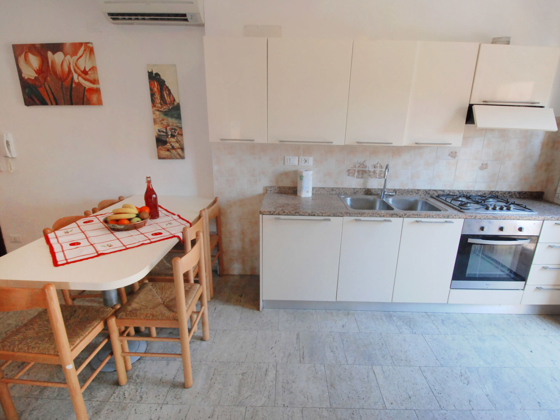 Appartement 3-kamers 62 m2. Eenvoudig en comfortabel ingericht: woon-/slaapkamer met 1 2-pers divanbed en TV. Uitgang naar het balkon. 1 kamer met 1 2-pers bed. 1 kamer met 1 x 2 stapelbedden. Kookhoek). Douche/bidet/WC. Air-conditioning, heteluchtverwarming. Groot balkon. Maximaal 1 huisdier/hond toegestaan. IT027034B4I57S5LCX