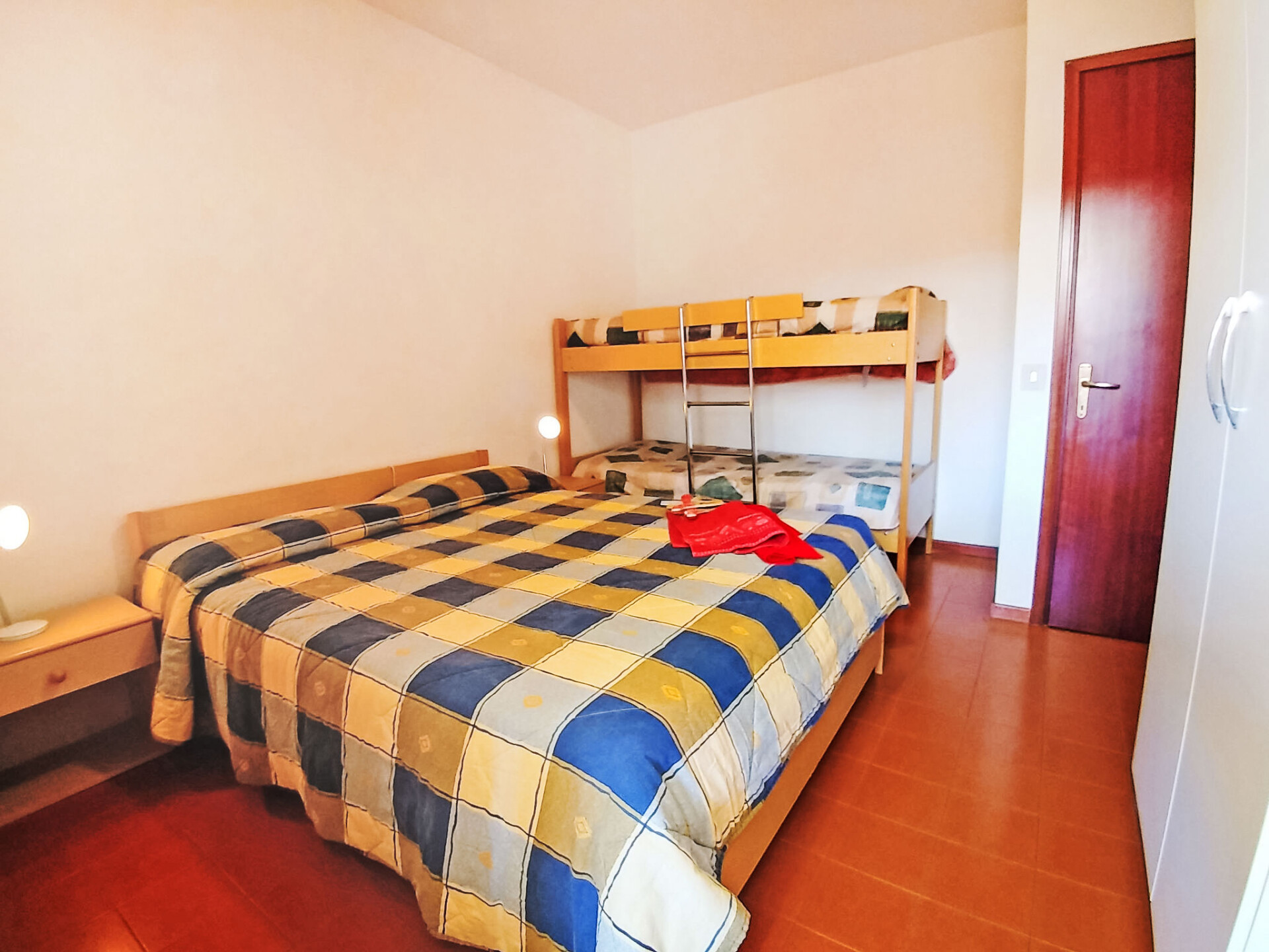 Appartement 3-kamers 55 m2. Eenvoudig en doelmatig ingericht: woon-/slaapkamer met 1 2-pers divanbed en TV. 1 kamer met 1 x 2 stapelbedden. 1 kamer met 2 bedden. Kookhoek). Douche/bidet/WC. Geen verwarmingsmogelijkheid. Klein terras. Terrasmeubelen. Parkeerplaats. Maximaal 1 huisdier/hond toegestaan. IT027034B4JCCMR758