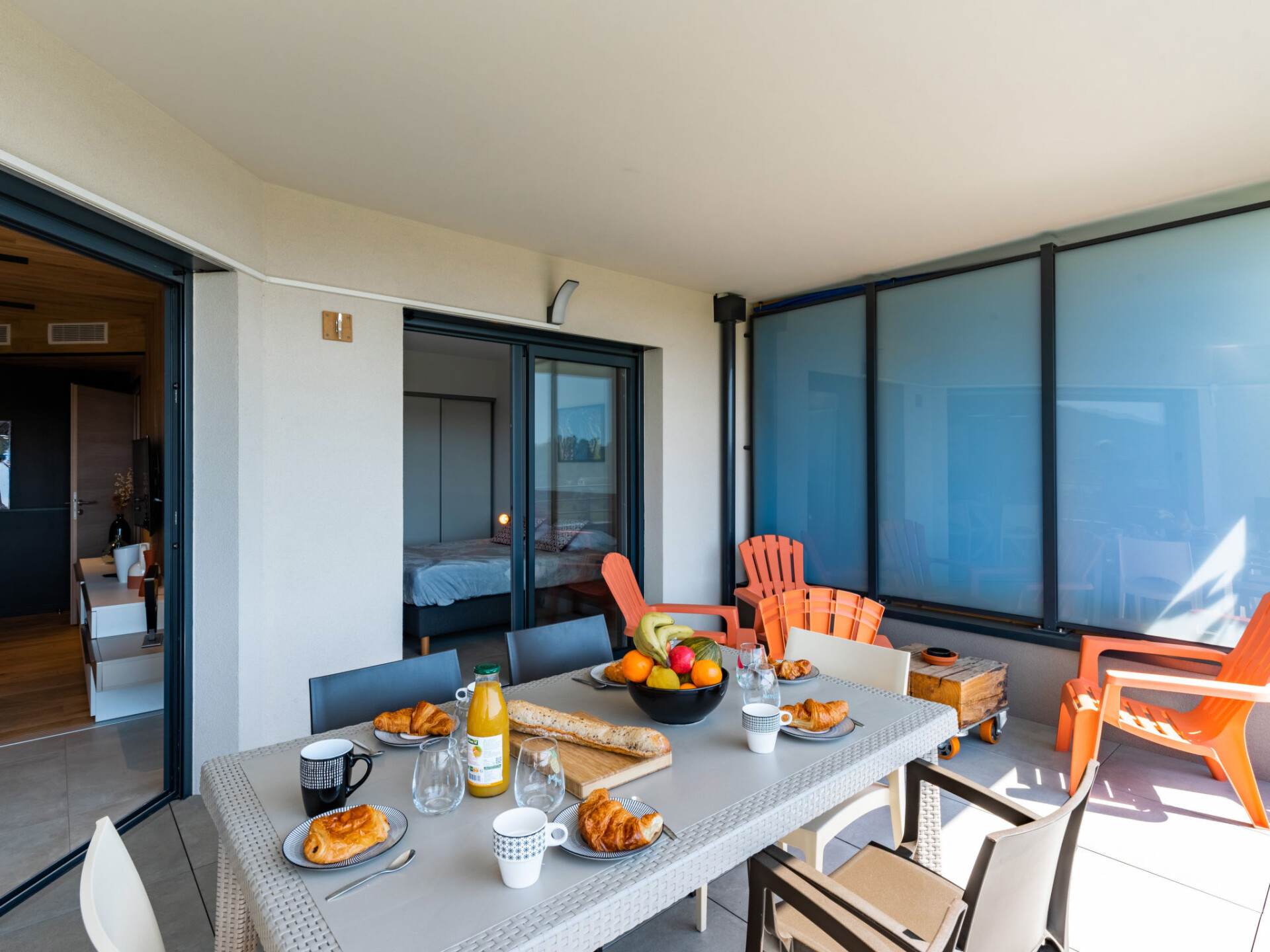 Appartement 3-kamers 72 m2 op de 5e verdieping. Zeer mooi en modern ingericht: woon-/eetkamer met 1 2-pers divanbed (160 cm, lengte 200 cm), TV (Flatscreen TV). Uitgang naar het terras. 1 kamer met 1 2-pers bed (160 cm, lengte 200 cm). Uitgang naar het terras. 1 kamer met 2 bedden (90 cm, lengte 190 cm). Open keuken (oven, afwasmachine, 4 inductiekookplaten, broodrooster, waterkoker, magnetron, diepvriezer, elektrische koffiemachine). Douche/WC. Elektrische verwarming, air-conditioning. Terras 25 m2. Terrasmeubelen. Mooi uitzicht op de bergen. Ter beschikking: wasmachine, droger. Internet (WiFi, gratis). Parkeerplaats. Geschikt voor families. Niet rokers woning. Rookmelders. 2A247000320EC