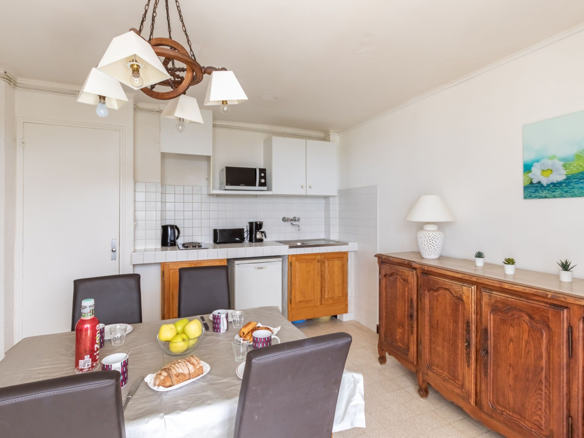 Appartement 3-kamers 52 m2 op de 1e verdieping. Eenvoudig en doelmatig ingericht: woon-/eetkamer met TV (Flatscreen TV). Uitgang naar het terras. 1 kamer met 2 bedden (80 cm, lengte 190 cm). 1 kamer met 1 2-pers bed (140 cm, lengte 190 cm). Kookhoek (2-pits kookplaat, broodrooster, waterkoker, magnetron, elektrische koffiemachine). Douche, aparte WC. Geen verwarmingsmogelijkheid. Terras 6 m2, op het zuidwesten gelegen. Terrasmeubelen. Uitzicht op zee. Ter beschikking: Internet (Internet (WiFi), extra). Parkeerplaats (1 Auto). Niet geschikt voor kinderen onder 3 jaar. TV alleen FR. Rookmelders. 8311200068401