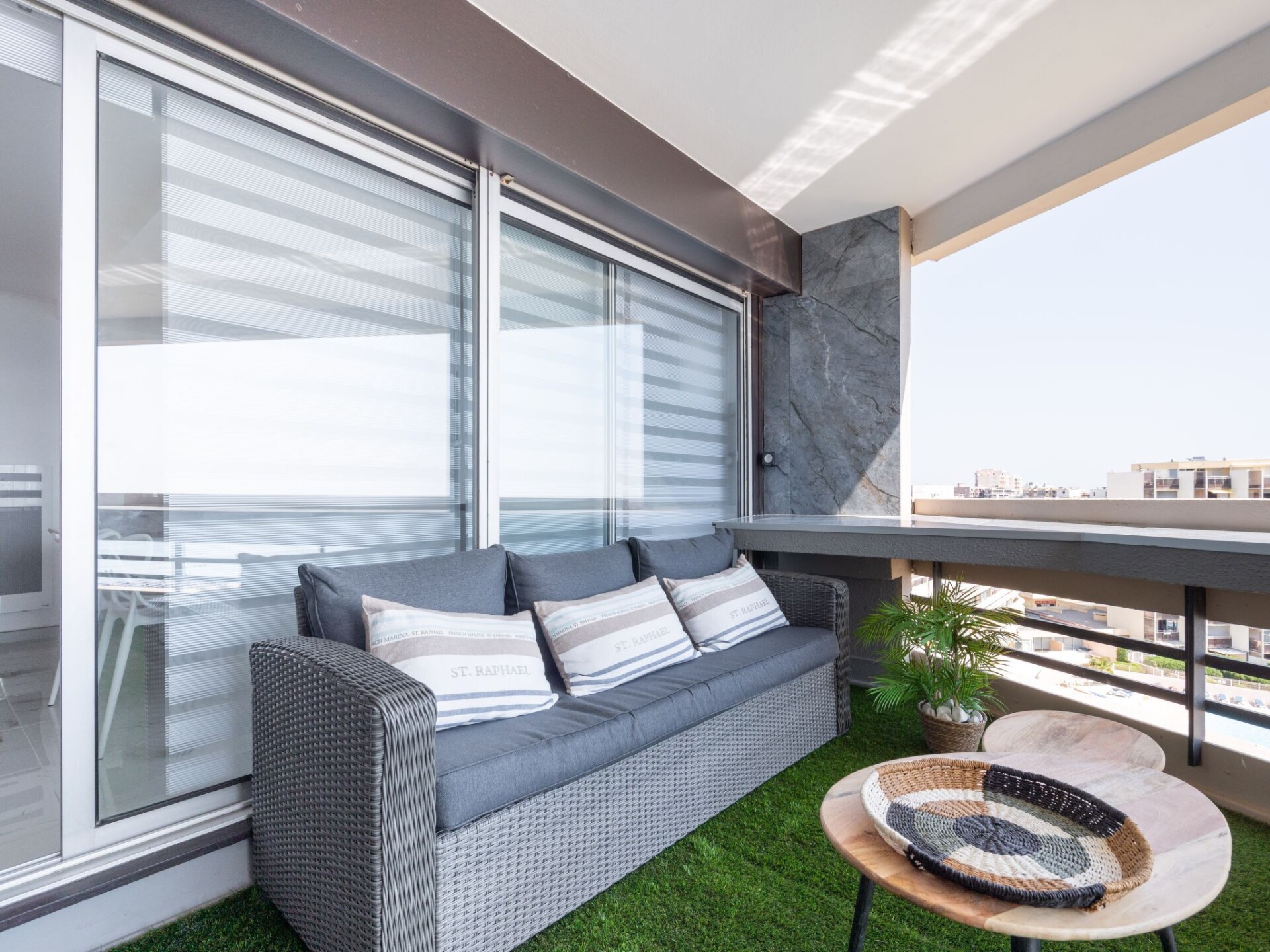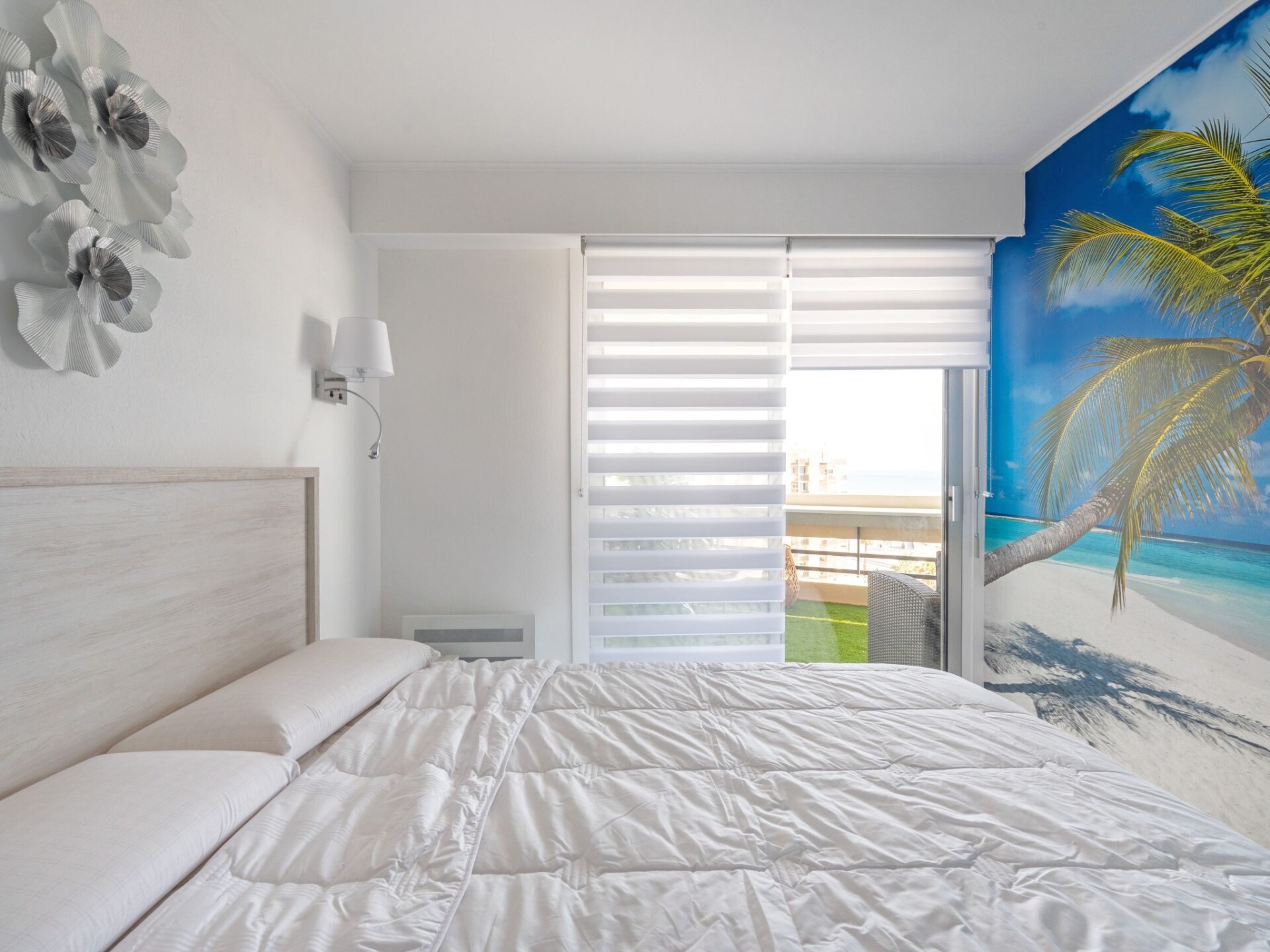 "Terrasses du Levant", appartement 2-kamers 40 m2 op de 7e verdieping, op het oosten gelegen. Volledig gerenoveerd in 2022, zeer mooi en smaakvol ingericht: woon-/eetkamer met TV (Flatscreen TV), air-conditioning. Uitgang naar het terras, op het oosten. 1 kamer met 1 2-pers bed (1 x 160 cm, lengte 200 cm), TV, air-conditioning en ventilator. Uitgang naar het terras. Groot, open keuken (oven, afwasmachine, 4 inductiekookplaten, broodrooster, waterkoker, magnetron, elektrische koffiemachine, kookeiland). Douche, aparte WC. Groot terras 20 m2, op het oosten gelegen. Terrasmeubelen. Zeer mooi uitzicht op zee. Ter beschikking: wasmachine, droger, strijkijzer, haardroger. Internet (Internet (WiFi), gratis). Parkeerplaats nr. 261. Aanbod door een particulier volgens art. 155, IV van CGI.