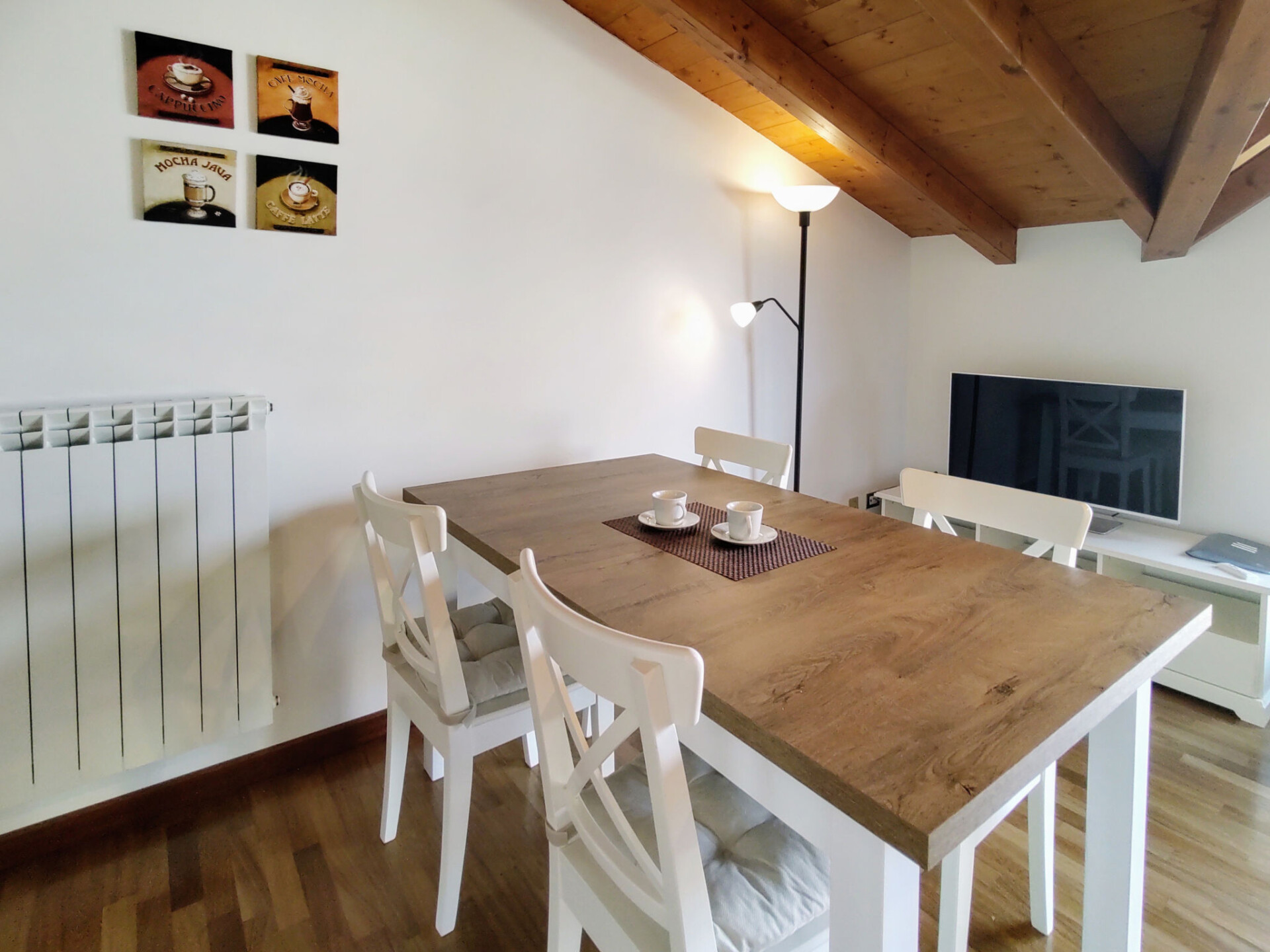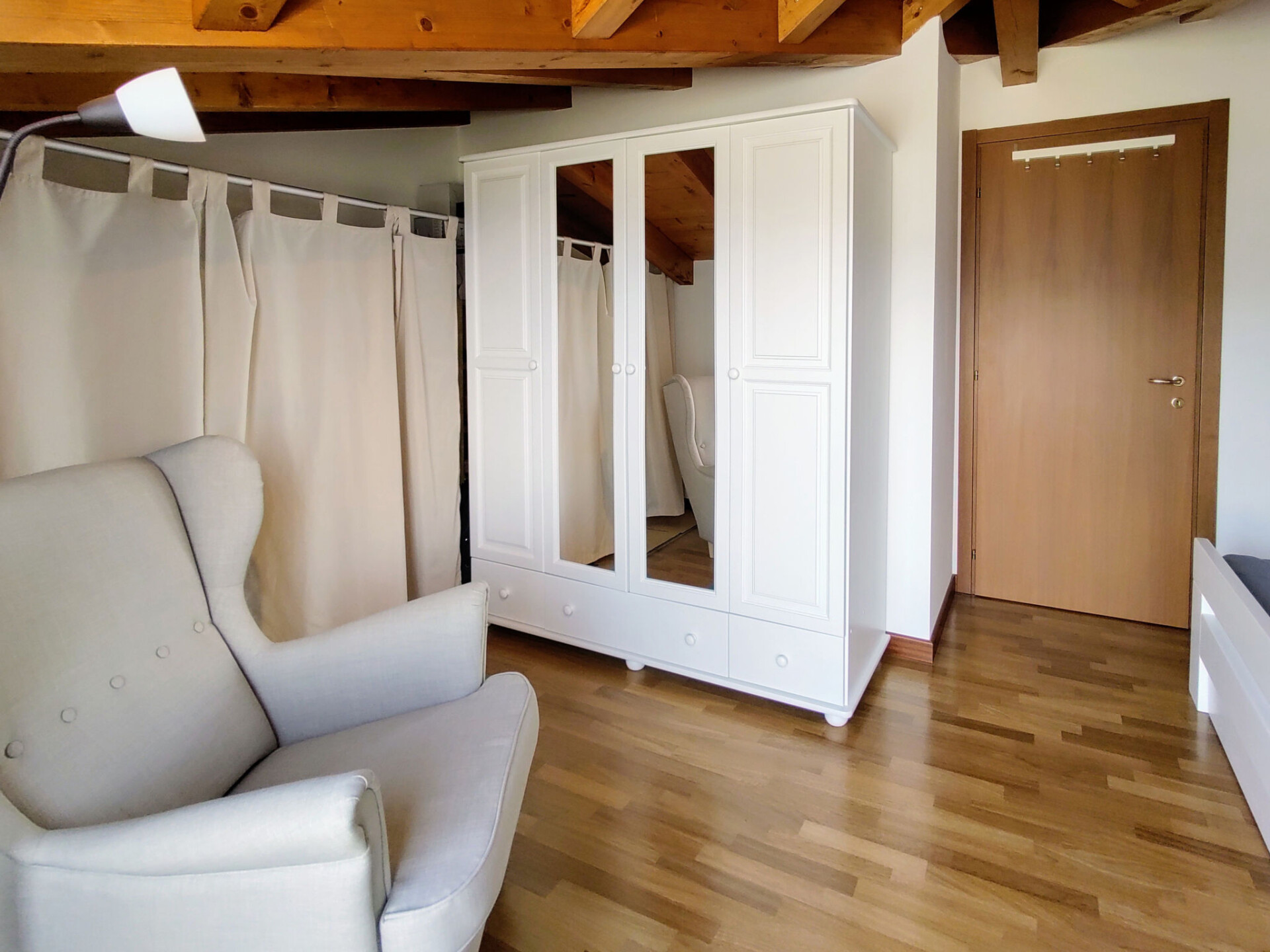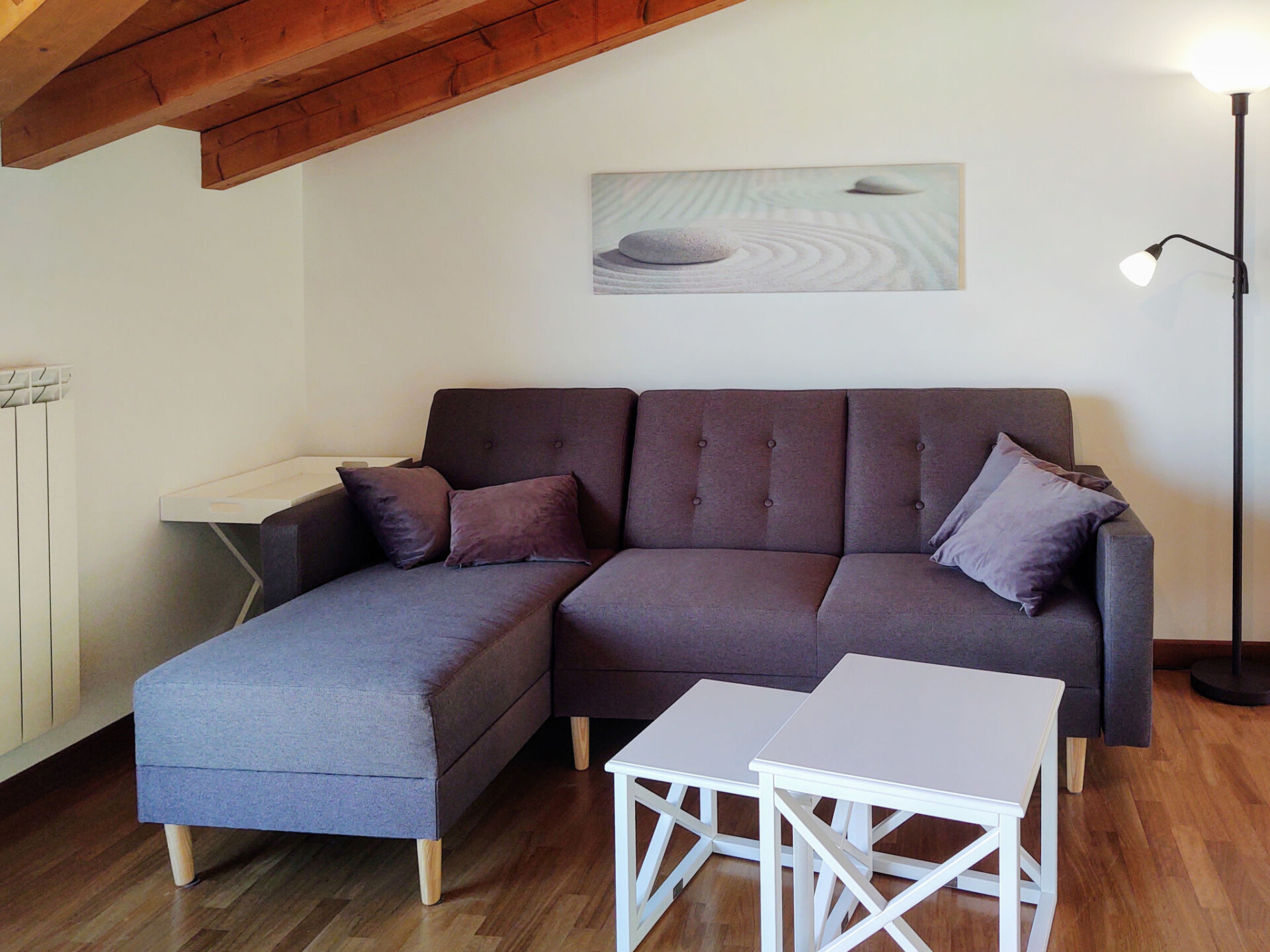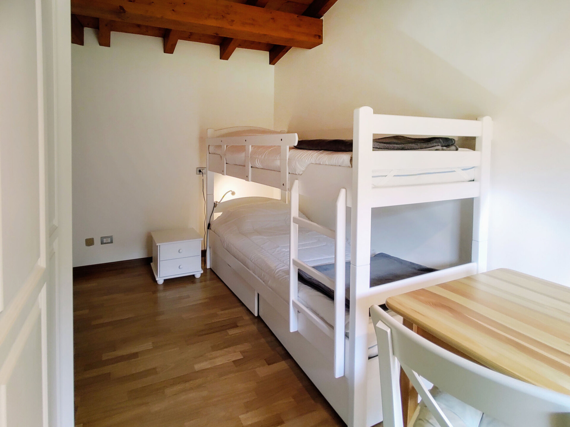 Appartement 3-kamers 75 m2, op de bovenste verdieping, op het westen gelegen. Licht, gedeeltelijk afgeschuinde daken, modern en stijlvol ingericht: woon-/eetkamer met eettafel en Sat-TV. Uitgang naar het balkon. 1 2-pers. kamer. Uitgang naar het balkon. 1 kamer met 1 x 2 stapelbedden. Uitgang naar het balkon. Open keuken (oven, afwasmachine, 4 keramische glas kookplaten, broodrooster, waterkoker, magnetron, elektrische koffiemachine). Bad/WC, douche/WC. Gas-verwarming. Parketvloeren. Groot balkon 30 m2, klein balkon. Balkonmeubilair, ligstoelen (2). Zeer mooi uitzicht op het meer. Ter beschikking: wasmachine, kinderstoel, kinderbed. Internet (WiFi, gratis). Parkeerplaats (1 Auto). Niet rokers woning. Maximaal 1 klein huisdier/hond toegestaan. Privé ingang. IT012114C242WP8TXP