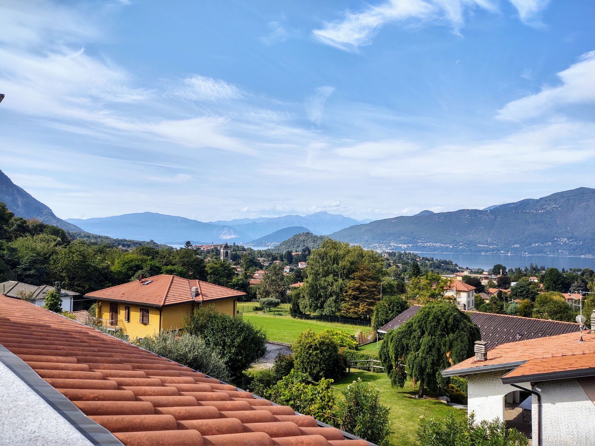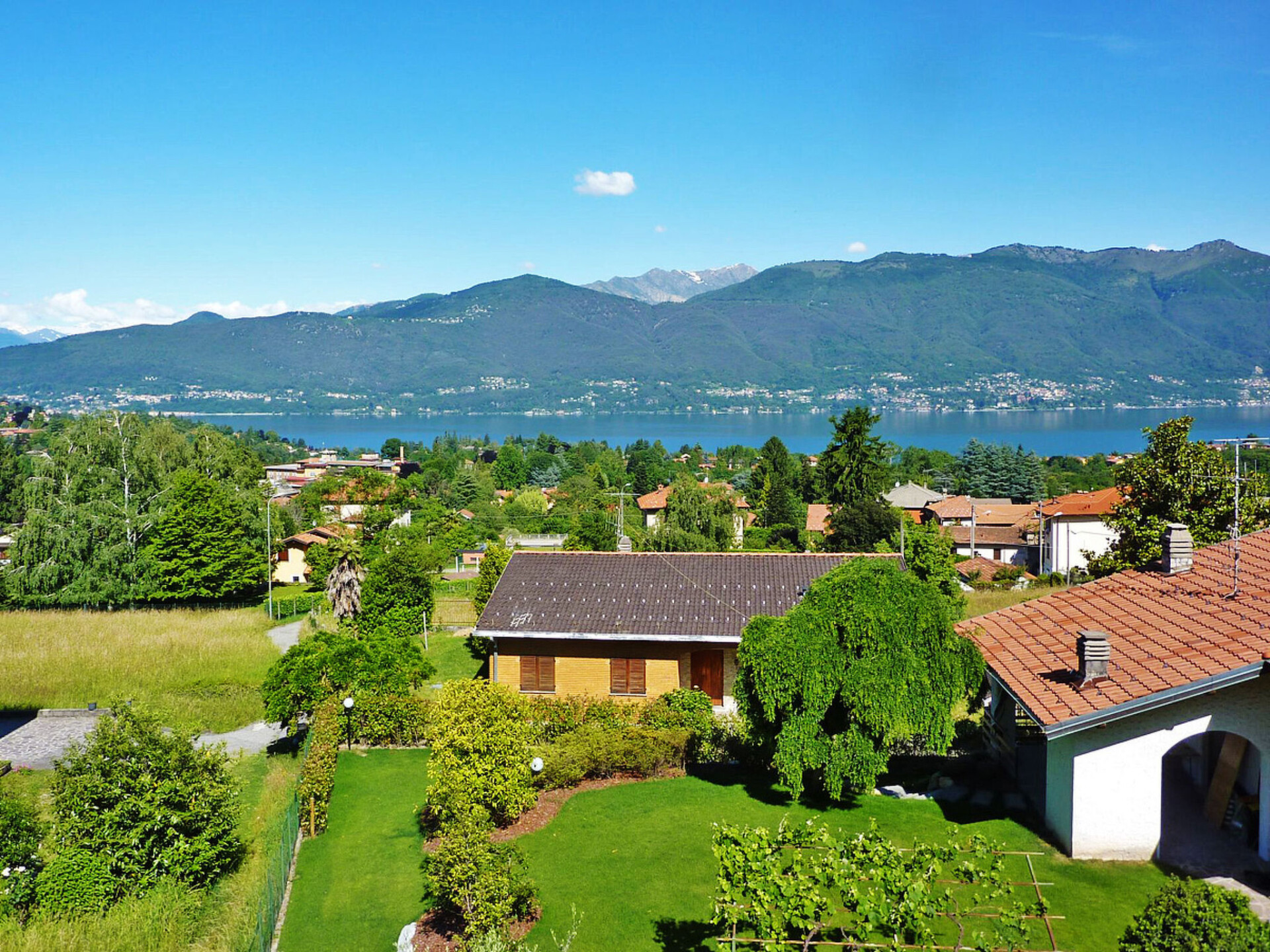 Kleine, moderne residentie "Torre del Lago", van 3 verdiepingen. 5 appartementen in de woning. In de wijk Musadino, 2.6 km van het centrum van Porto Valtravaglia, 31 km van het centrum van Lugano, 33 km van het centrum van Varese, tegen een helling, in een woonwijk, 2.6 km van het meer. Voor medegebruik: terrein 750 m2 (omheind) met gazon en planten, openluchtzwembad (8 x 4 m, 140 cm diepte, seizoensgebonden beschikbaarheid: 01.Jun. - 15.Sep.). Buitendouche, terras, tuinmeubelen, onderhoud zwembad door de eigenaar/tuinman. Trappenweg naar het huis. Supermarkt 2.5 km, bushalte 400 m, treinstation "Porto Valtravaglia" 3 km, kiezelstrand "Punta Molino" 2.6 km, overdekt zwembad 11 km. Jachthaven 2.6 km, golfterrein (18 holes) 23 km, bergtrein 10 km.