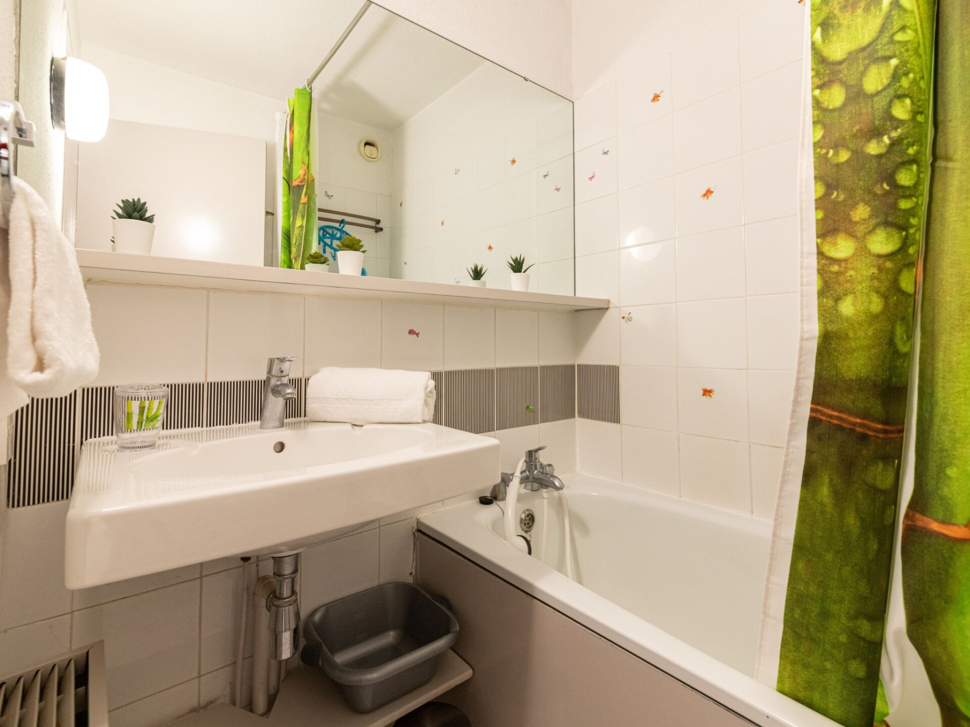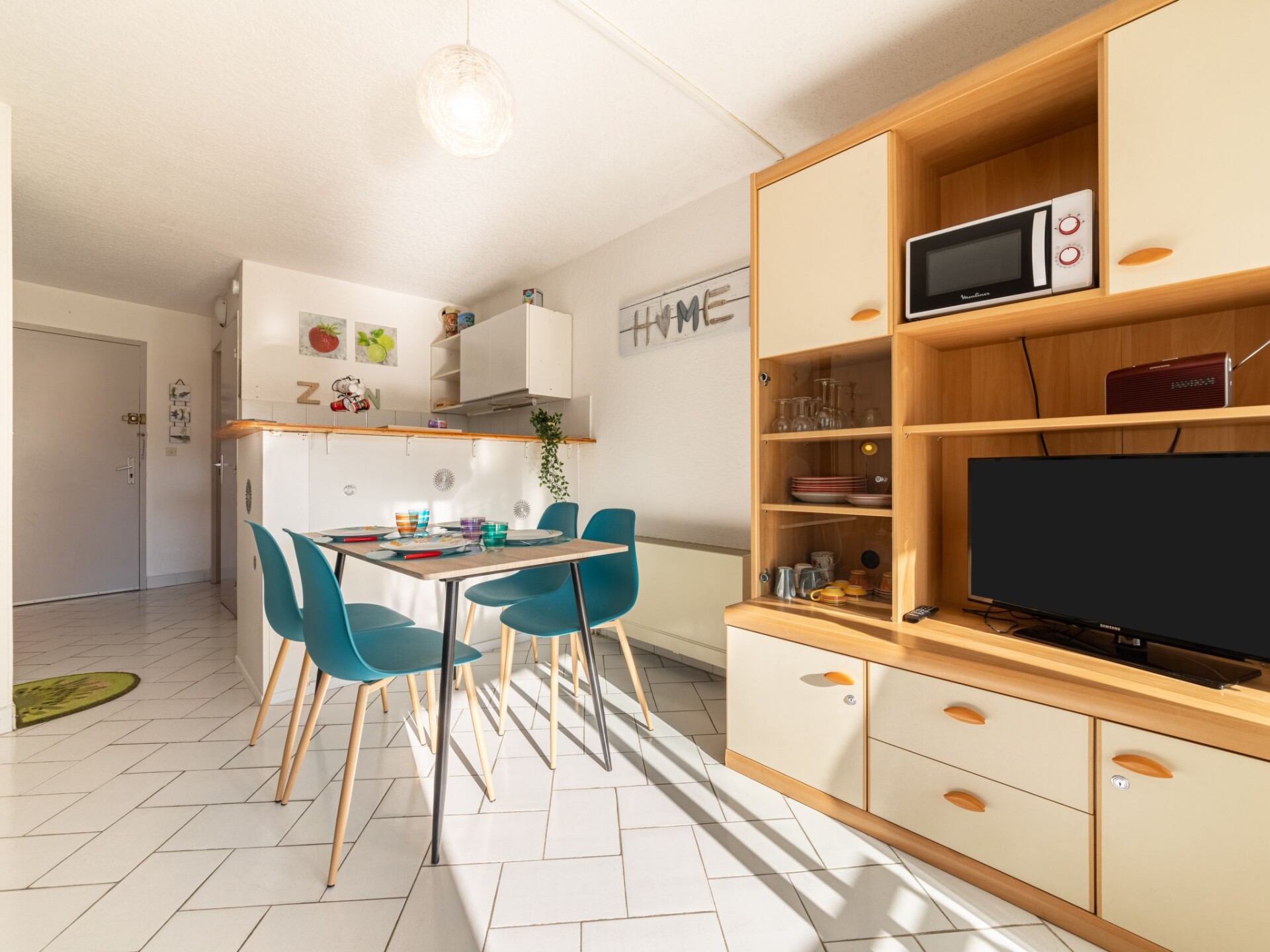 "Ulysse plage 1", appartement 1-kamer 30 m2 op de 1e verdieping. Woon-/eetkamer met 1 2-pers divanbed (140 cm, lengte 190 cm), TV (Flatscreen TV). Cabine met 1 x 2 stapelbedden (90 cm, lengte 190 cm). Woonkeuken (oven, 3 inductiekookplaten, broodrooster, waterkoker, magnetron, elektrische koffiemachine, pads voor de koffiemachine (NESPRESSO) extra). Badkamer, aparte WC. Elektrische verwarming. Terras 7 m2, op het zuiden gelegen. Terrasmeubelen. Uitzicht op de tuin. Ter beschikking: wasmachine. Internet (Internet (WiFi), extra). Parkeerplaats nr. 508 (1 Auto). 1 klein huisdier/hond toegestaan. Rookmelders. In plaats van een afgesloten slaapkamer bevinden sommige slaapgedeeltes zich in een open ruimte (galerij, nis, etc.). FR6618.310.22 APPARTEMENT 128