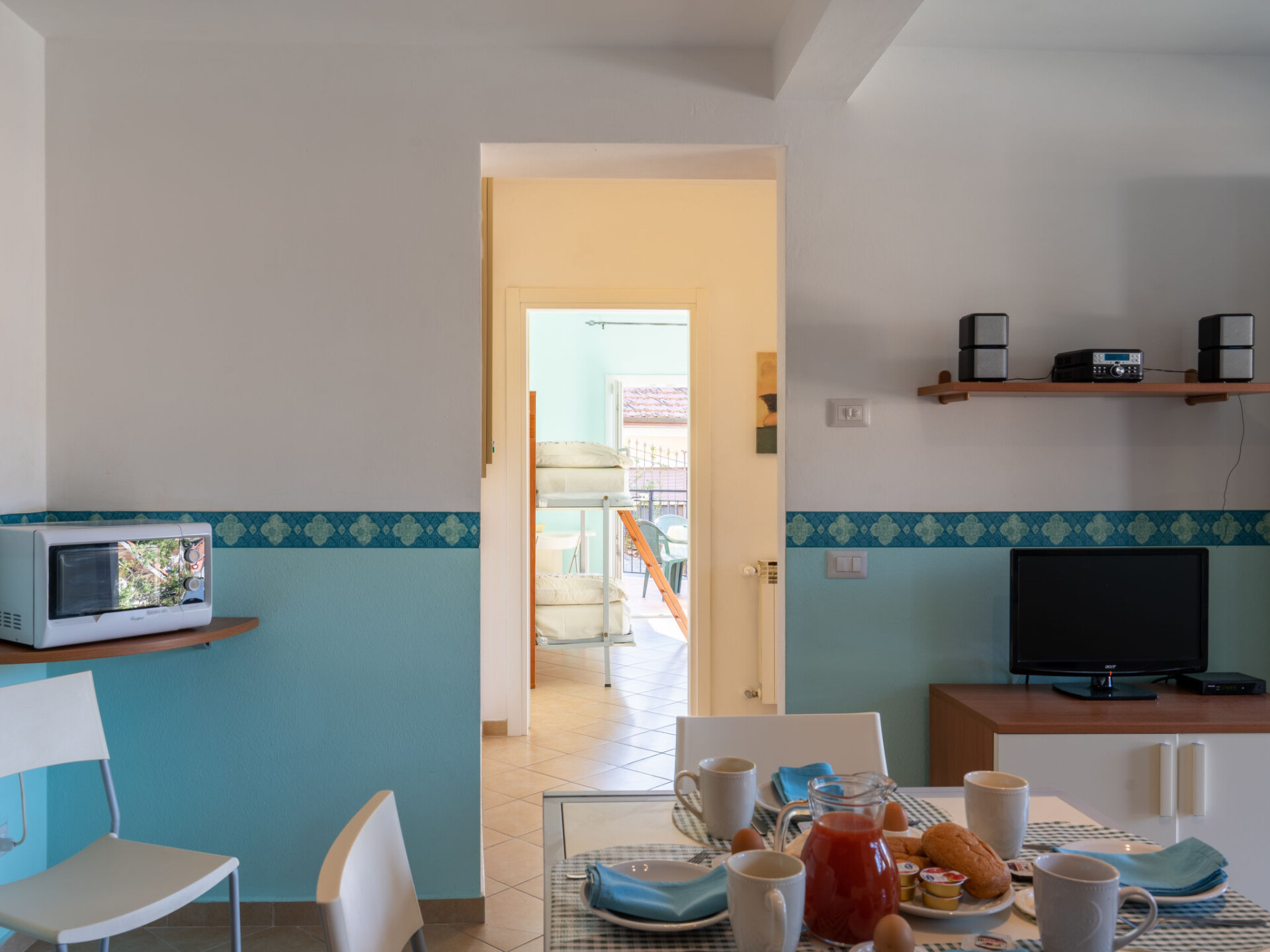 "Verde (PTB151)", appartement 2-kamers 60 m2 op de 1e verdieping. Licht, modern ingericht: woon-/slaapkamer met 1 2-pers divanbed (160 cm), eettafel, Sat-TV, radio en CD-speler. Uitgang naar het terras. 1 kamer met 1 x 2 stapelbedden (80 cm), 1 2-pers bed (160 cm). Open keuken (oven, afwasmachine, 4 kookpitten (vlammen), broodrooster, waterkoker, magnetron, diepvriezer, grill, elektrische koffiemachine). Douche/WC. Gas-verwarming. Verwarming alleen beschikbaar van 15.10. tot 01.05. Klein terras. Terrasmeubelen. Mooi panoramazicht op het landschap en de plaats. Ter beschikking: kinderstoel, kinderbed. Internet (Internet (WiFi), gratis). Niet rokers woning. Privé ingang. IT008041B5QNEAKLK7
