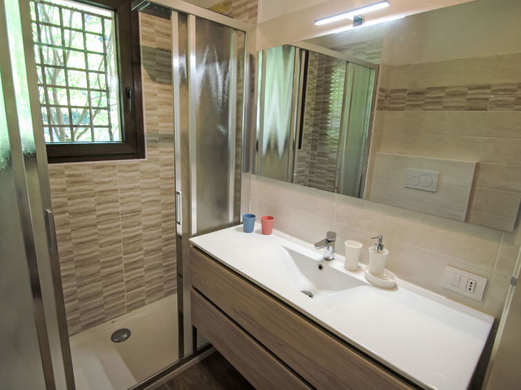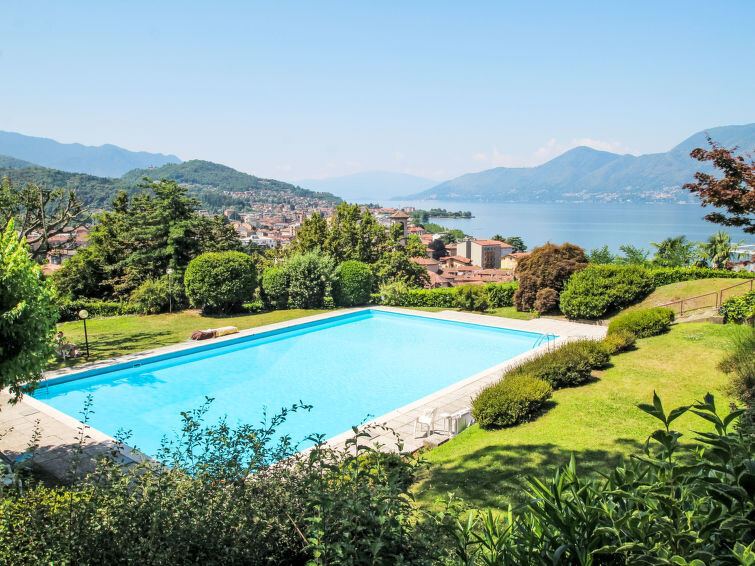 Groot residentie "Villa Castiglioni". 600 m van het centrum van Luino, verhoogde ligging tegen een helling, 700 m van het meer. Voor medegebruik: park met bloemen en bomen, openluchtzwembad (20 x 8 m, seizoensgebonden beschikbaarheid: 01.Jun. - 15.Sep.). Buitendouche. Supermarkt 1 km, restaurant, bar 500 m, bushalte 200 m, treinstation "Luino" 1.6 km. Auto noodzakelijk. De sleuteloverdracht vindt plaats bij het agentschap Holiday Rentals in Porto Valtravaglia, 9 km.