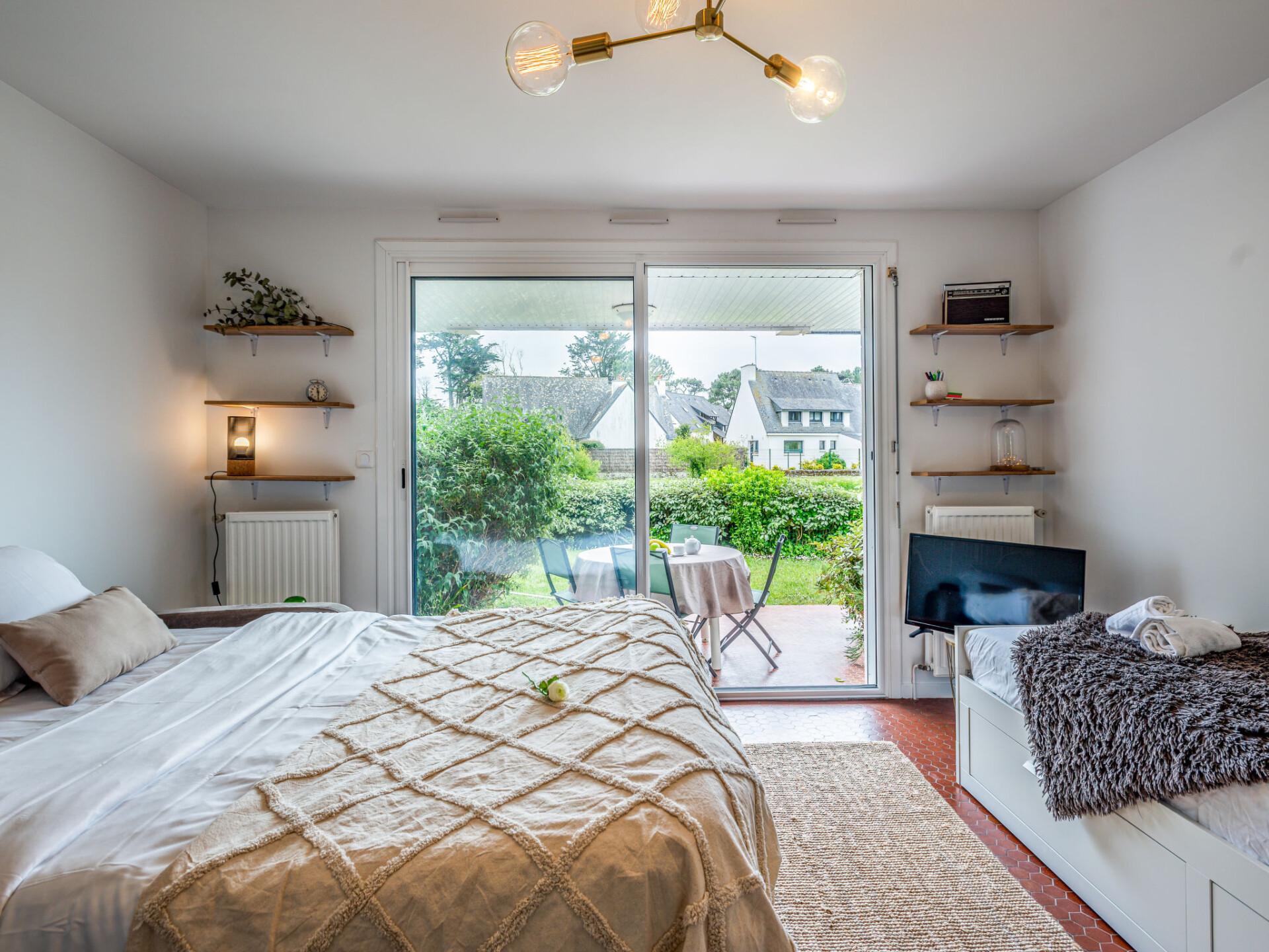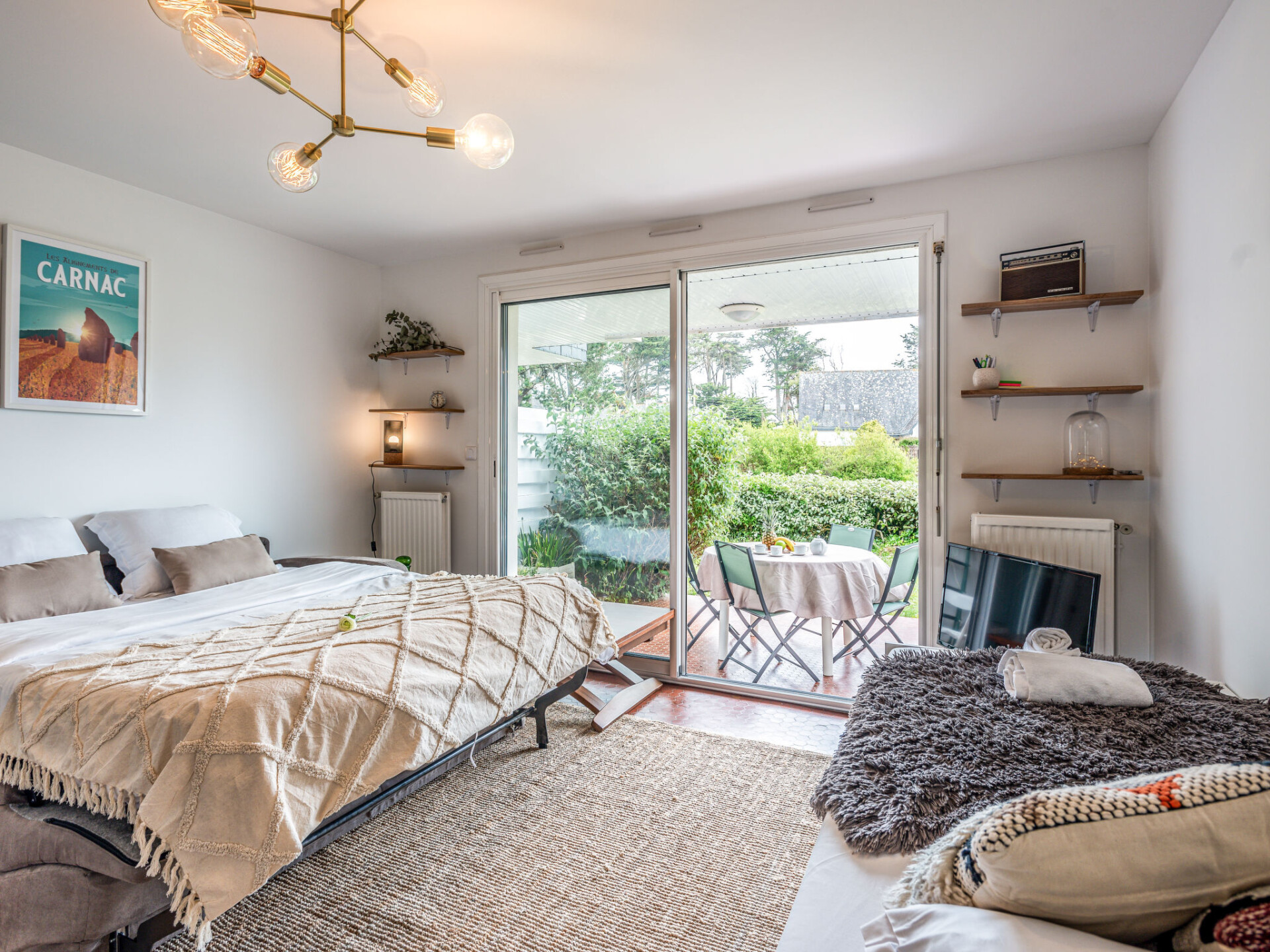 Residentie "Village de Légenèse", van 2 verdiepingen. Aan de rand van de plaats, 2 km van het centrum van Carnac Plage, 300 m van zee, 300 m van het strand. In het complex: levensmiddelenwinkel 800 m, supermarkt 2.5 km, restaurant 600 m, zandstrand "Légenèse", thermaalbad "Thalazur Carnac" 300 m. Golfterrein (18 holes) 15 km, surfschool 5 km, zeilschool 900 m, tennis 1 km. Attracties in de buurt: La Trinité sur Mer 5 km, Presqu'ile de Quiberon 15 km, Belle Ile en Mer, Auray 15 km, Vannes 50 km, Lorient 65 km. Wandelgebied le Golfe du Morbihan.