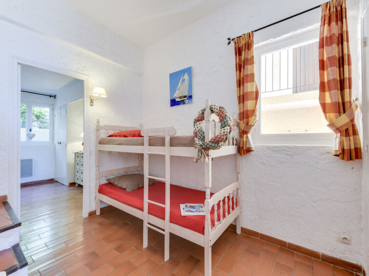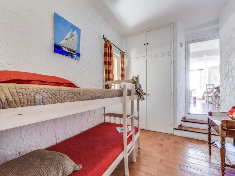 "Village de Silhouette 4", appartement 3-kamers 50 m2 op de 1e verdieping. Gezellig ingericht: woon-/eetkamer met TV (Flatscreen TV), air-conditioning. Uitgang naar het terras. Cabine met 1 x 2 stapelbedden (90 cm, lengte 190 cm). Doorloopkamer met 1 2-pers bed (160 cm, lengte 190 cm), air-conditioning. Open keuken (oven, afwasmachine, 4 keramische glas kookplaten, magnetron, elektrische koffiemachine). Badkamer, aparte WC. Elektrische verwarming. Terras 13 m2, op het zuidoosten gelegen. Terrasmeubelen, barbecue. Ter beschikking: wasmachine. Internet (Internet (WiFi), gratis). Parkeerplaats. Niet rokers woning. Rookmelders. 83068000517LB