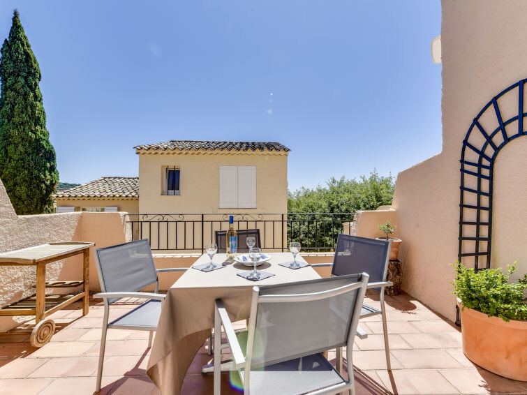 Mooi residentie "Village de Silhouette", omgeven door bomen. Buiten de plaats, 5 km van het centrum van Grimaud, rustige ligging op een heuvel, 6 km van zee. Voor medegebruik: openluchtzwembad omheind (17 x 8 m, 120 - 250 cm diepte, seizoensgebonden beschikbaarheid: 15.Mei. - 30.Sep.). Parkeerplaats op 40 m. Winkel 5 km, levensmiddelenwinkel 5 km, supermarkt 6 km, restaurant 5 km, bushalte "Port Grimaud" 4.6 km, zandstrand "Port Grimaud" 6 km. Golfterrein (18 holes) 8 km, zeilschool 8 km. Attracties in de buurt: Port Grimaud 6 km, Sainte Maxime 12 km, Saint-Tropez 13 km, Plages de Pampelonne 20 km, Nice 110 km, Monaco 130 km. Bekende meren kunnen gemakkelijk worden bereikt: Lac de Sainte Croix 95 km. Wandelgebied Massif de l'Esterel 50 km. Auto noodzakelijk. De sleuteloverdracht vindt plaats bij het agentschap Interhome in Gassin, 7 km. Vergelijkbare accommodaties kunnen worden geboekt. De woningen kunnen onderling van inrichting verschillen. De omgeving is gevoelig voor geluidsoverlast. Gelieve geen lawaai te maken en de rust te bewaren.