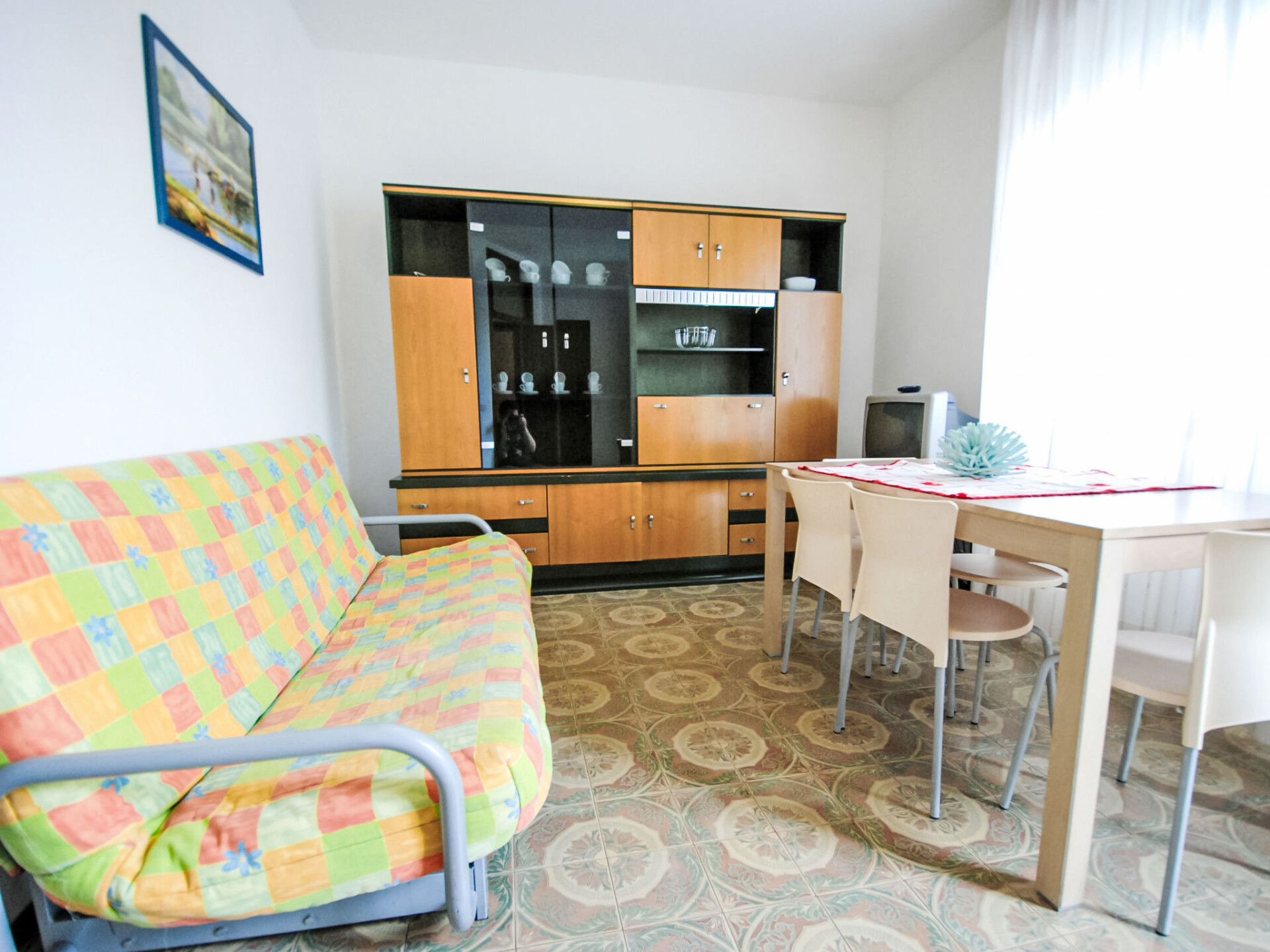 Comfortabele residentie "Villaggio Azzurro". In het centrum van Bibione, rustige ligging, 700 m van zee, van het strand. Voor medegebruik: 2 zwembaden (25 x 10 m, 150 - 150 cm diepte, seizoensgebonden beschikbaarheid: 15.Mei. - 15.Sep. openingstijden zwembad: 09:00-13:30 en 15:30-22:00). Parkeerplaats bij het huis. Bushalte 850 m. De afgebeelde foto is slechts een voorbeeld. Vergelijkbare accommodaties kunnen worden geboekt.