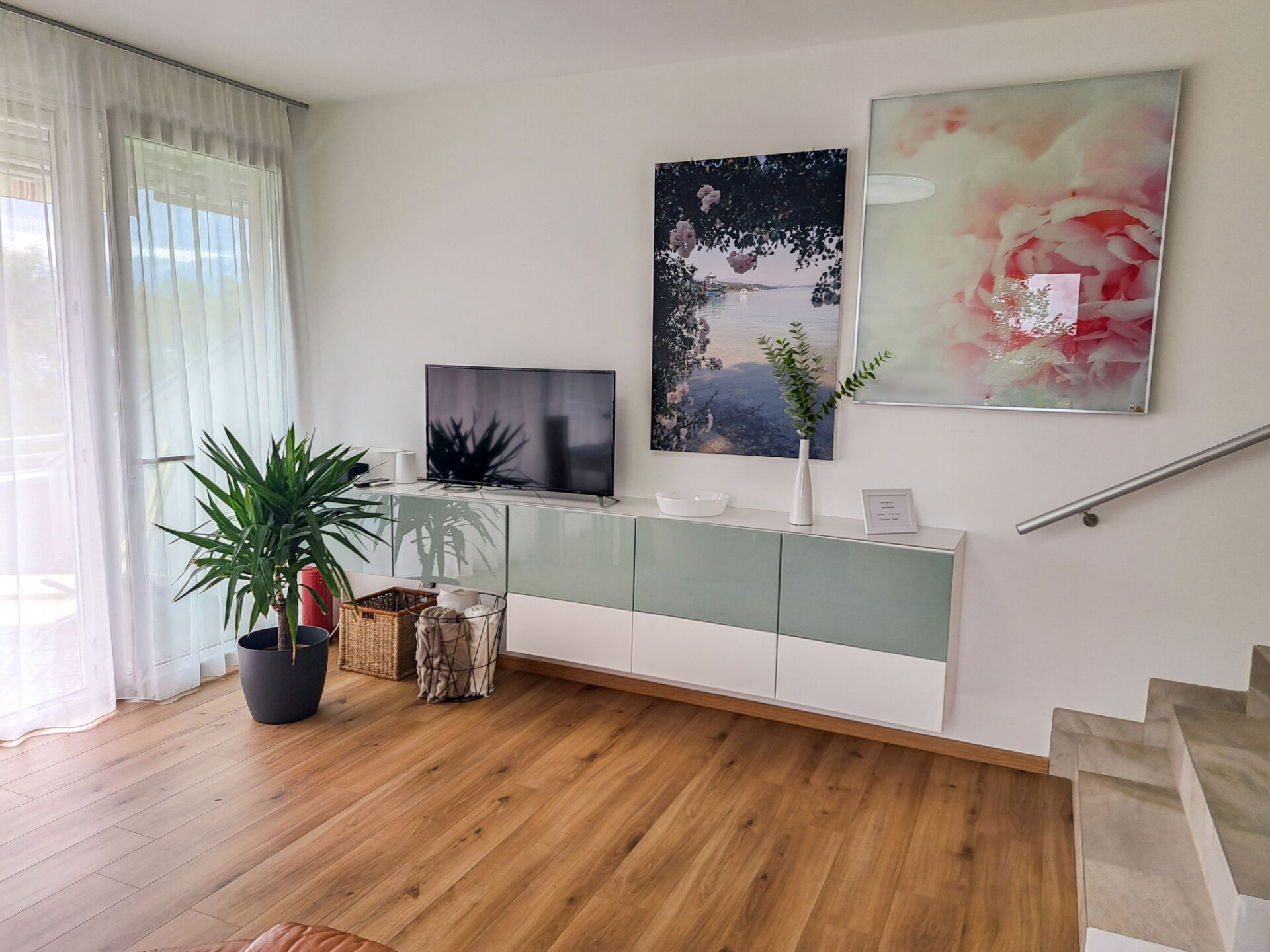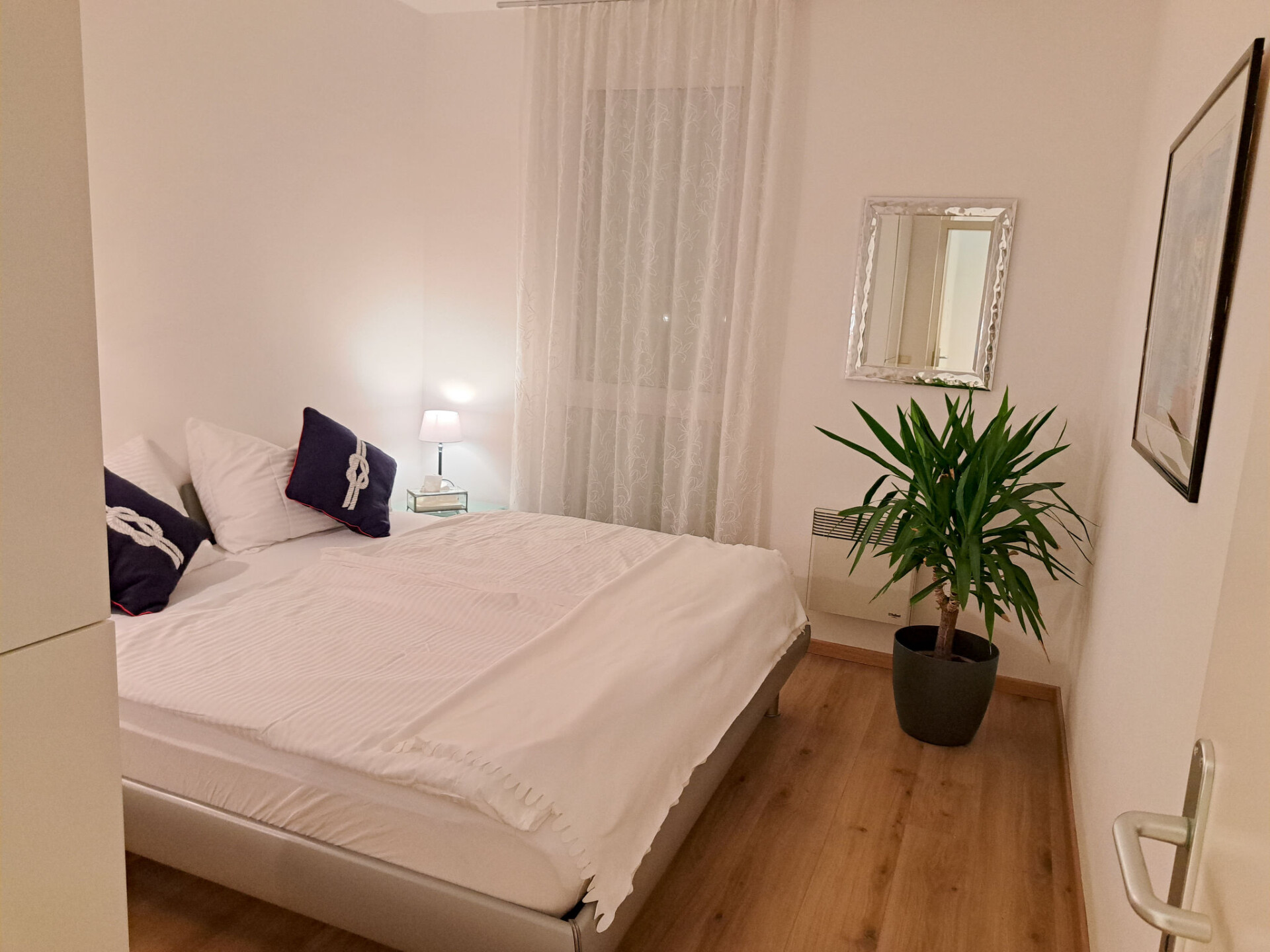"Vinzek", appartement 3-kamers 60 m2. Licht, zeer mooi ingericht: woon-/eetkamer met bad/WC, Sat-TV en elektrische verwarming. Uitgang naar het terras. 2 2-pers. kamers. Open keuken (afwasmachine, 4 keramische glas kookplaten, broodrooster, waterkoker, magnetron, elektrische koffiemachine). Parketvloeren. Terras, op het zuiden gelegen. Terrasmeubelen, elektrische barbecue. Zeer mooi panoramazicht op het meer. Ter beschikking: wasmachine. Internet (Internet (WiFi)). Parkeerplaats (1 Auto) bij het huis. Niet rokers woning. Rookmelders.