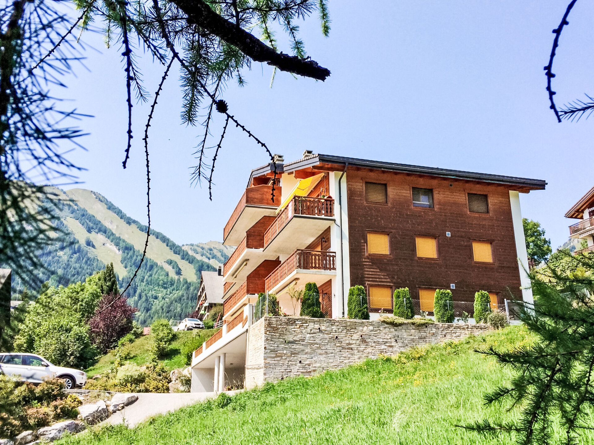 Mooi, gezellige residentie "Viognier", van 3 verdiepingen. In de wijk Pont de Pierre, 2.1 km van het skigebied, aan een doodlopende weg, op het zuiden. In het huis: lift, berging voor ski's, wasmachine, droger (voor medegebruik, extra), droogruimte. Toegangsweg tot aan het huis. Levensmiddelenwinkel 1.4 km, restaurant 500 m, bar, bakkerij 1.4 km, café, bushalte "Morthey, Pont-de-Pierre" 250 m, thermaalbad 700 m. Skiverhuur 1.4 km, skibushalte 100 m, skischool 1.4 km, langlaufloipe 2.7 km. Gratis skibus. Gratis skibus naar het skigebied d'Ovronnaz.