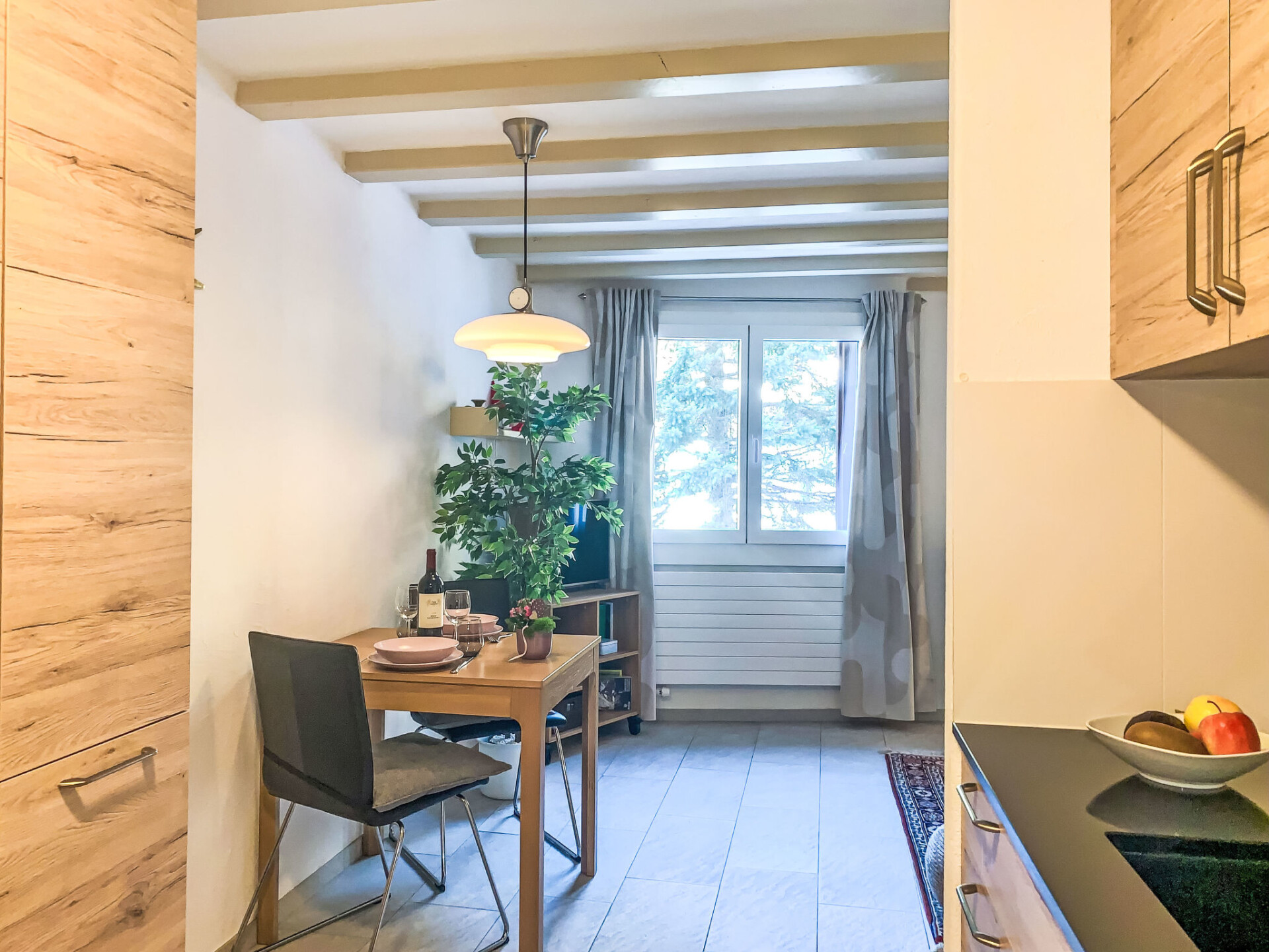 "Residenza Chesa Margun 45-2", appartement 1-kamer 28 m2, op het noorden gelegen. Volledig gerenoveerd in 2021, comfortabel en gezellig ingericht: woon-/slaapkamer met 1 2-pers divanbed (170 cm, lengte 200 cm), TV en Flatscreen TV. Kookhoek in de hal (oven, afwasmachine, 2 keramische glas kookplaten, magnetron, elektrische koffiemachine) met eettafel. Bad/WC. Elektrische verwarming. Zijdelings uitzicht op de bergen en de plaats. Ter beschikking: Internet (WiFi, gratis). Garage, hoogte 203 cm, breedte 350 cm. Niet rokers woning.