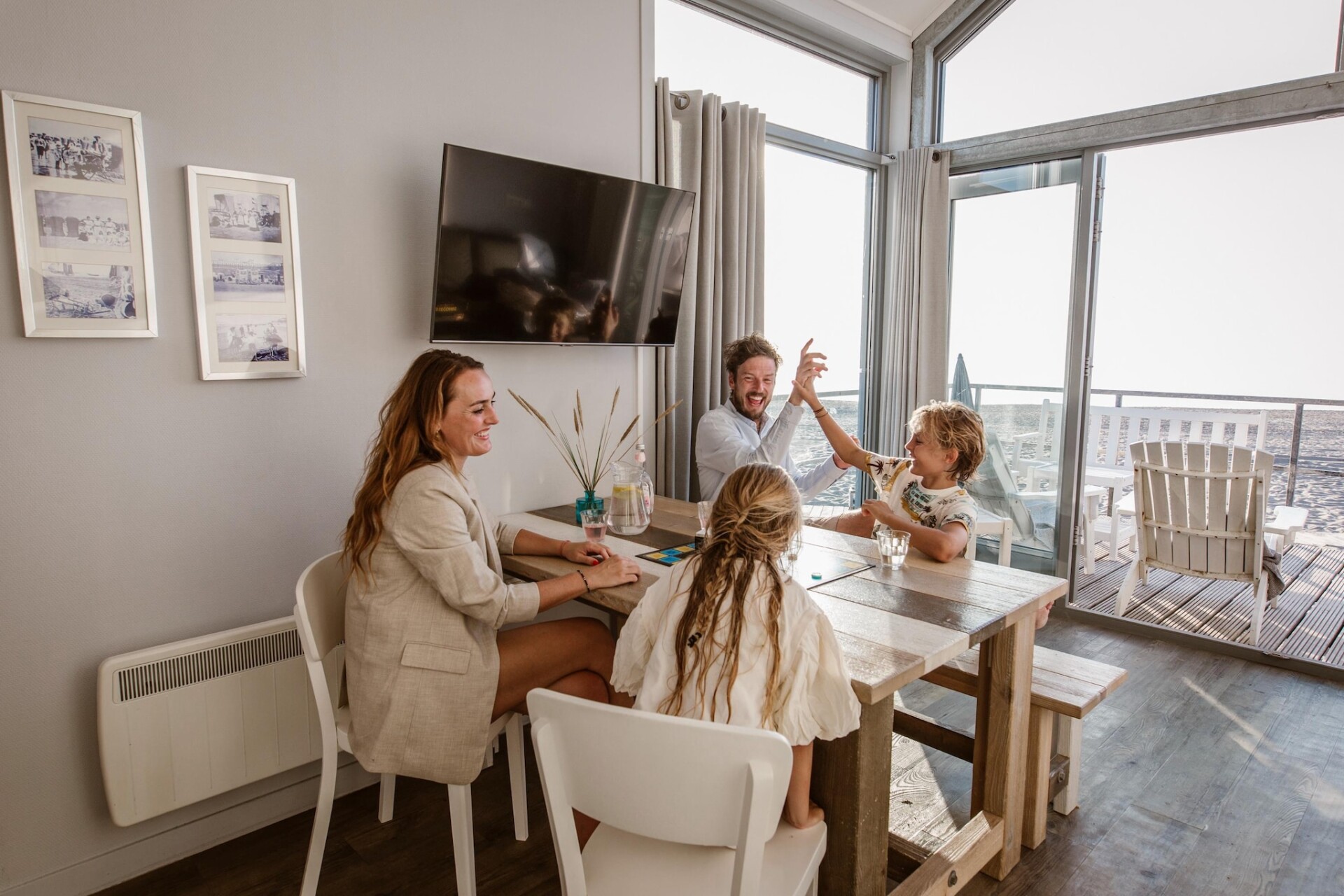 Het beach house is compleet en sfeervol ingericht. Er is een lichte woonkamer met smart-TV. De bank kan indien gewenst worden gebruikt als 2-pers. slaapbank. In de open keuken vindt u er onder andere een magnetron. Er is één slaapkamer met twee 1-pers. boxspringbedden, al dan niet in een 2-pers. opstelling. Er is tevens een slaap-vide met twee 1-pers. bedden, bereikbaar via een steile trap vanuit de woonkamer. De badkamer is voorzien van een douche en toilet. Er is standaard een campingbedje en traphekje boven aanwezig.