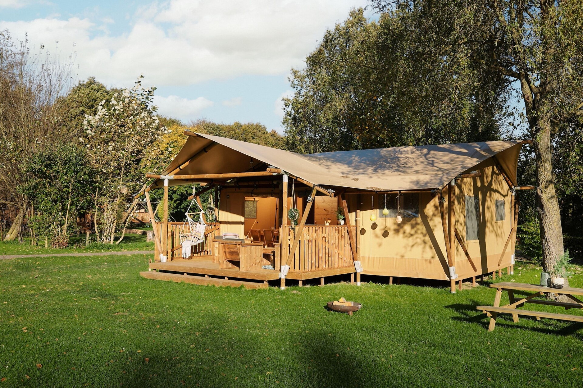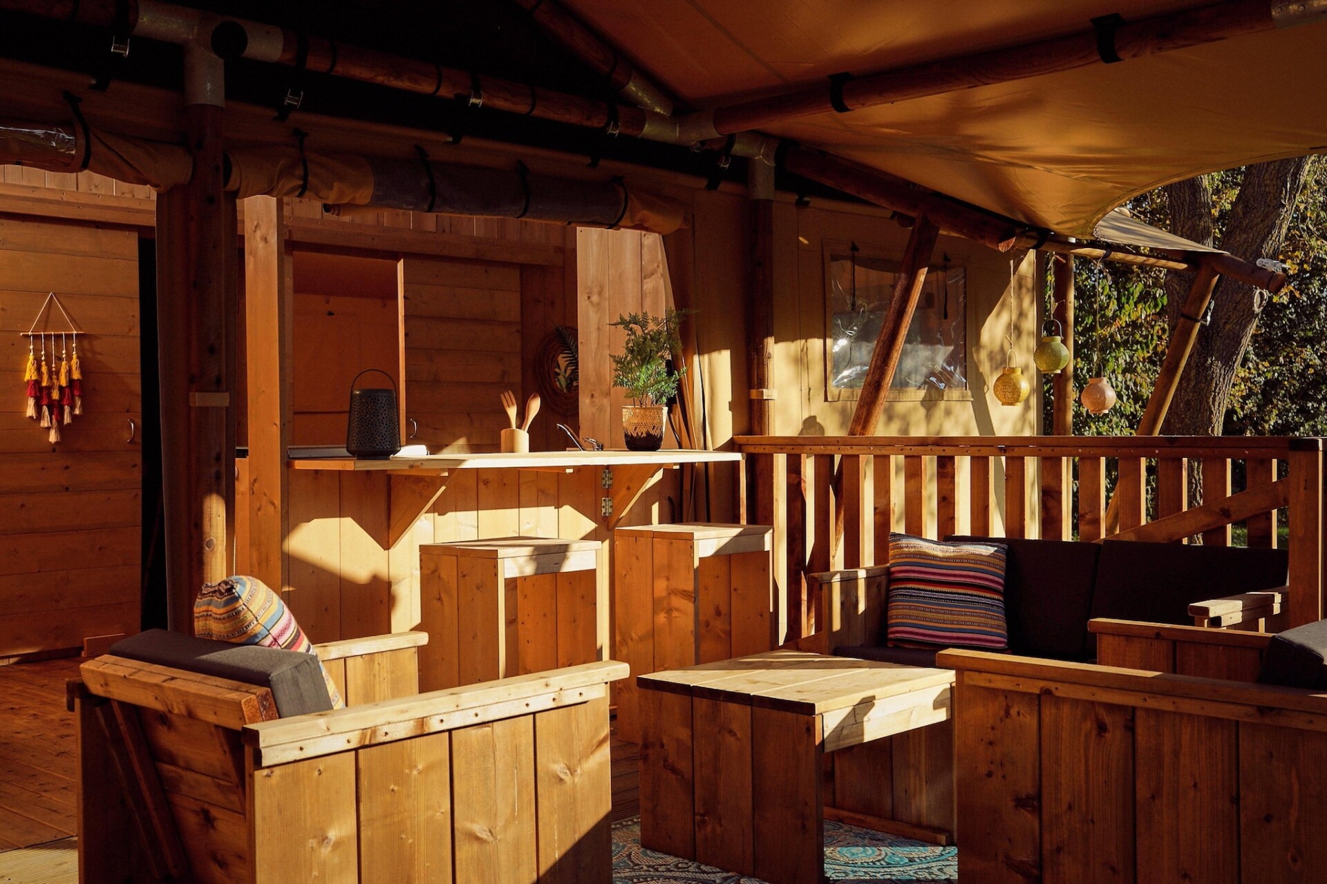 Ervaar de perfecte mix van avontuur en comfort in deze moderne glampingtent, gelegen in de rustige omgeving van Zeewolde. Met de charme van een klassieke safaritent en het gemak van een vakantiehuis, beschikt deze ruime lodge over een gezellige woon- en eetkamer, een volledig uitgeruste keuken (inclusief een Nespresso-apparaat en gaskookplaat) en oprolbare canvas wanden die de ruimte openen naar de natuur. Ontspan binnen of geniet van uw ochtendkoffie aan de keukenbar die naadloos aansluit op het terras. Dit is binnen-buitenleven op zijn best!
