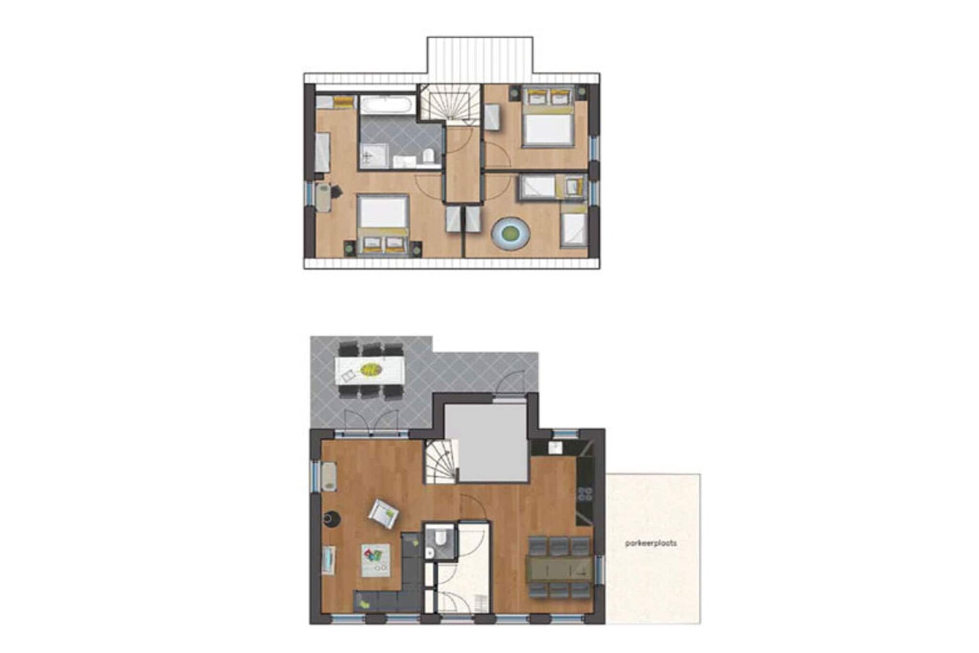 De villa's zijn volledig ingericht op (groot)ouders met klein(e) kinderen. De inrichting is comfortabel, modern en sfeervol. Er is een ruime woonkamer met gezellige houtkachel. In de moderne open keuken vindt u er diverse apparatuur, waaronder een combimagnetron, afwasmachine en Nespresseo koffiezetapparaat. Op de eerste verdieping zijn er drie slaapkamers. In twee van de slaapkamers staan twee 1-pers. boxspringbedden, al dan niet in een 2-pers. opstelling. De derde slaapkamer is een kinderslaapkamer met een stapelbed. U heeft de beschikking over één badkamer met douche, ligbad, dubbele wastafel en toilet. Daarnaast is er een wasmachine aanwezig. Er zijn twee traphekjes, kindvriendelijke stopcontacten en er is een aanvullende kinderinventaris. Deze bestaat uit speelgoed en een spelcomputer. Deze villa is geschikt voor maximaal vier volwassenen en twee kinderen.