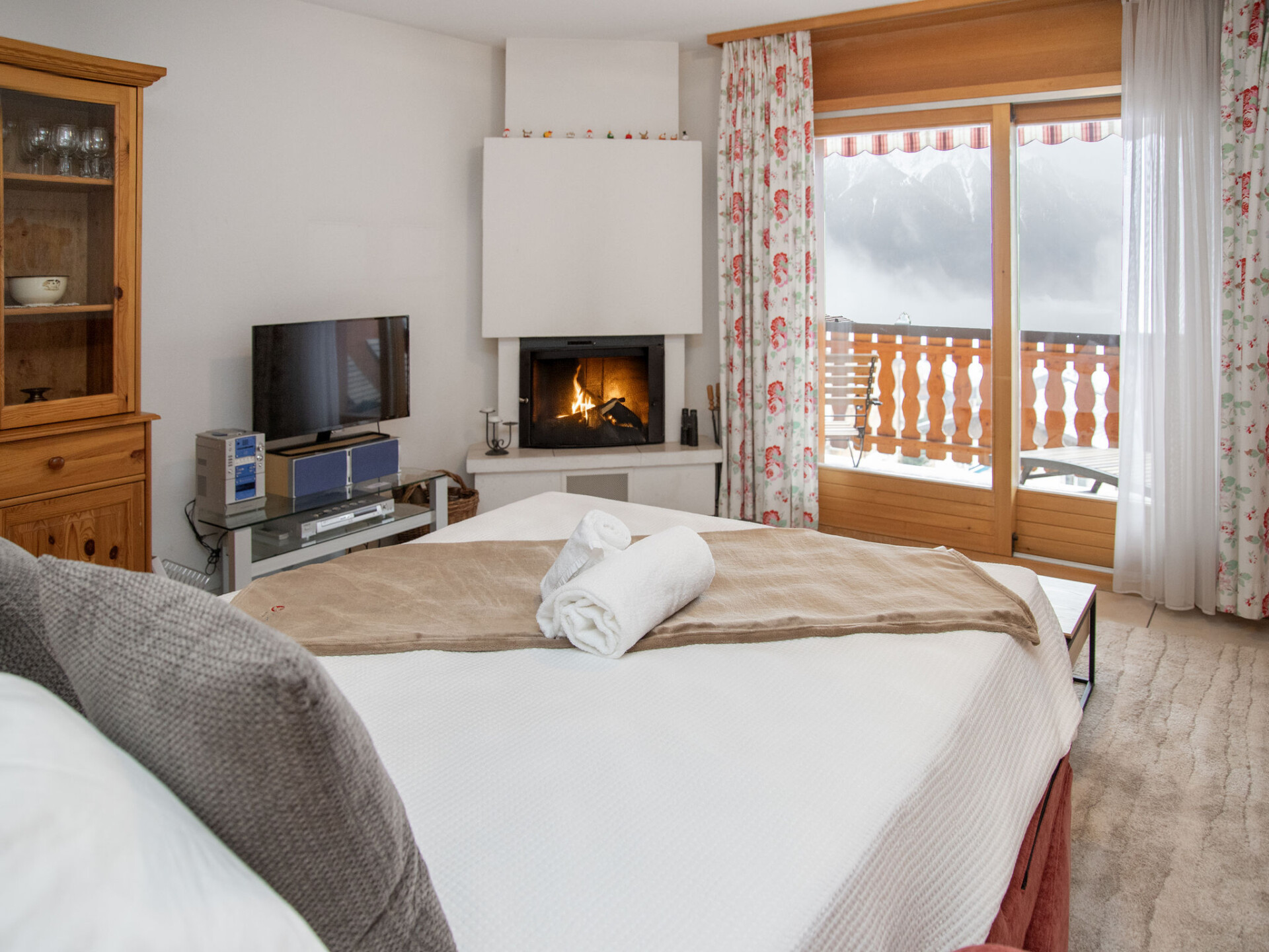 "Réze 5", appartement 2-kamers 60 m2 op de 2e verdieping, op het zuiden gelegen. Comfortabel en modern ingericht: woon-/eetkamer 25 m2 met 1 2-pers divanbed (1 x 140 cm, lengte 190 cm), open haard, Kabel-TV, Flatscreen TV, stereo-installatie en DVD. Uitgang naar het balkon. 1 kamer met 2 bedden (90 cm, lengte 200 cm), radio. Uitgang naar het balkon. Kookhoek (4-pits kookplaat, oven, afwasmachine, magnetron, elektrische koffiemachine, pads voor de koffiemachine (Nespresso) extra) met eettafel. Bad/WC. Balkon 16 m2, op het zuiden gelegen. Terrasmeubelen, ligstoelen (2). Mooi uitzicht op de bergen. Ter beschikking: kinderbed tot 2 jaar. Internet (WiFi, gratis). Parkeerplaats nr. 5. Niet rokers woning. Maximaal 1 klein huisdier/hond toegestaan.