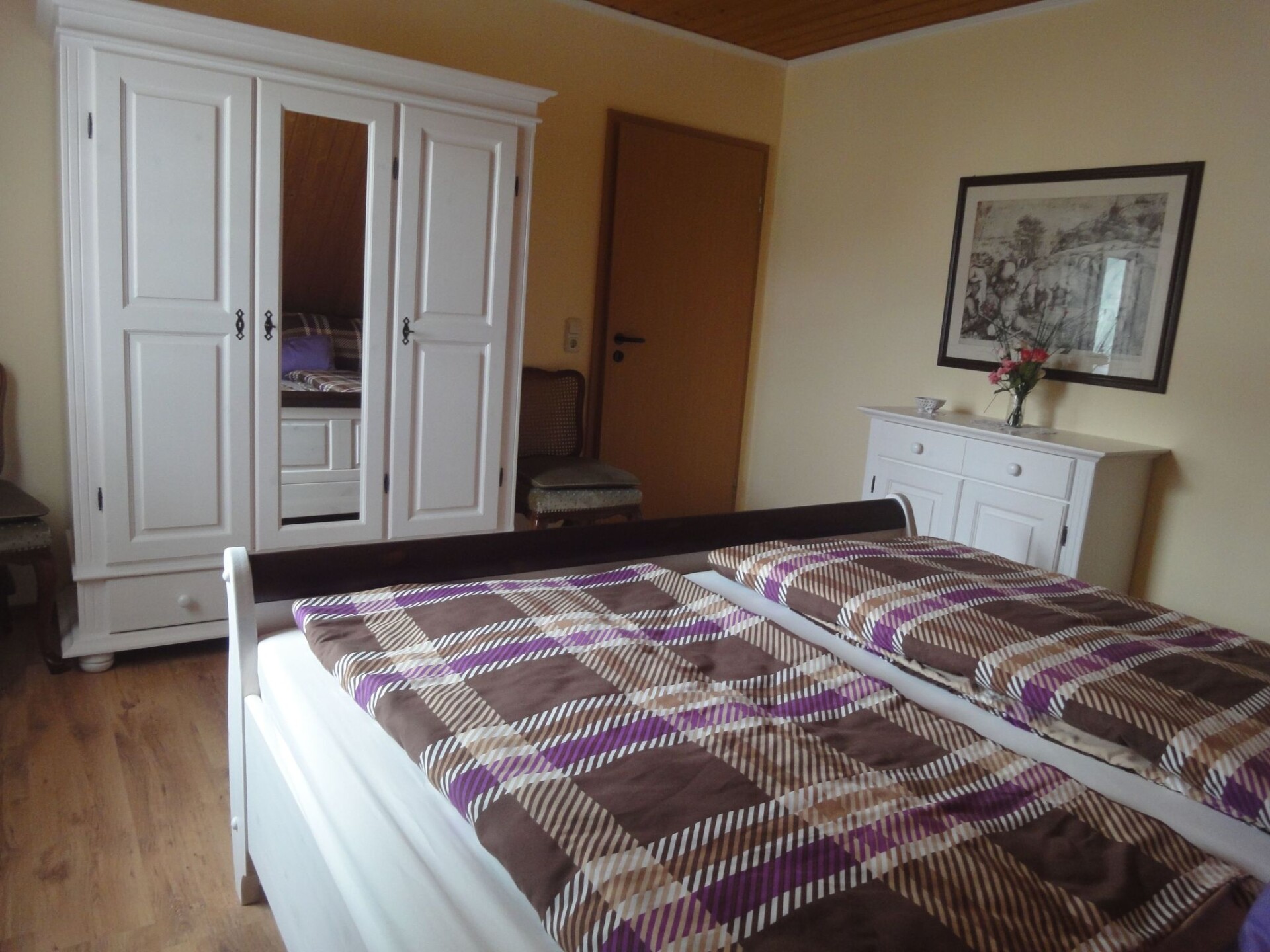 Experience an unforgettable holiday in our charming and spacious holiday flat, located in Oberdiebach, a picturesque district right in the heart of the UNESCO World Heritage Site "Upper Middle Rhine Valley". Just 15 kilometres from the legendary Loreley and nestled between Niederheimbach and Bacharach, our holiday home is the perfect starting point for exploring the picturesque Rhine.The holiday flat is located on the top floor of our house and covers around 77 m², ideal for 2 to 3 people. It is equipped with a bedroom with a double bed, another bedroom with a single bed, a bathroom and a combined kitchen with living and dining area. The separate entrance, which leads directly onto the private terrace, where a charcoal barbecue is also available on request, provides comfort and a personal touch.Outside, you will not only find a cosy seating area with garden furniture, which invites you to relax or socialise, but also the opportunity to enjoy the quiet residential area. We also offer our guests a reserved parking space right next to the seating area, or alternatively you can park along the quiet street. The slightly more challenging access to the car park can be a bit of a challenge, but the peaceful and certainly charming surroundings will make up for it.Our holiday flat is the ideal home for nature-loving guests. The surrounding region invites you to enjoy extensive hikes on the Rheinburgenwanderweg or the Rheinsteig, cycle tours along the Rhine or excursions to the neighbouring mountain ranges of Hunsrück and Taunus. Numerous castles and historic towns such as Bacharach, Oberwesel, Bingen and Rüdesheim are in the immediate vicinity and are ready to be discovered by you. You can also take a boat trip on the Rhine or visit the Hunsrück Zoo/High Game Reserve.Spend relaxing days in our holiday flat and immerse yourself in the captivating beauty of the Upper Middle Rhine Valley. Whether you want to explore nature, visit historical sites or simply enjoy the peace and quiet - here you will find the ideal retreat for an unforgettable time. We look forward to welcoming you as our guests!