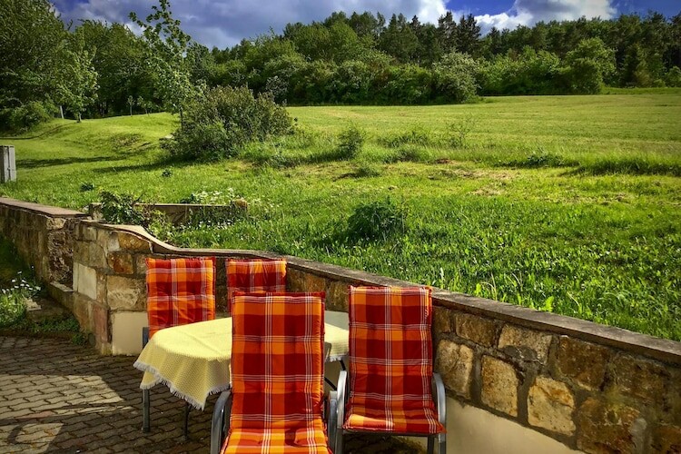 Weg van de stress en het dagelijkse leven, vindt u een sfeer van aangenaam comfort en rust in dit vakantiehuis op de heuvel. Vanaf het balkon heeft u een prachtig panoramisch uitzicht op het Rhön-gebergte. Achter het huis op het terras kunt u genieten van de avondzon met uitzicht op de bosrand en zeker een gezellige barbecue-avond beginnen. Kaltensundheim ligt op een hoogte van 460 meter boven zeeniveau, ongeveer 15 kilometer van Meiningen. Kenmerkende bergen zijn de Hemschenberg in het zuidoosten, de Alte Mark in het zuiden en de Leichelberg in het oosten. Het mooie stadsbeeld wordt gekenmerkt door de vele vakwerkhuizen, waarbij vooral de bakkerij uit 1704 de moeite waard is. Hier is nu een dorpsmuseum gehuisvest, dat informatie geeft over de lokale geschiedenis en de geschiedenis van de DDR.