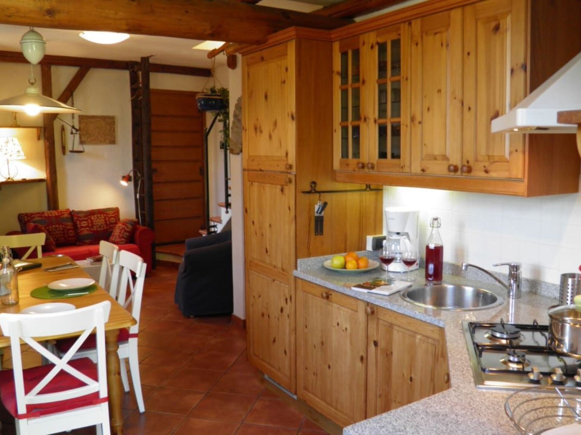 Welcome to the vineyard farmhouse Casa Rina, a fascinating holiday residence that delights its guests not only with its idyllic location above Lake Como, but also with its historical significance as a former winery dating back to 1724. Situated amidst former vineyards and rusticos in the characteristic Lombard style, Casa Ribolla promises an unforgettable holiday full of tranquillity and with breathtaking panoramic lake views.The rooms of the Ribolla are comfortably and modernly furnished and offer everything you need for a relaxing stay. From the rustic fireplace in the living area, which radiates a soothing warmth and cosiness, to the open and fully equipped kitchen, which leaves nothing to be desired. The integrated dishwasher, washing machine, iron and 4-burner gas hob are just a few examples of the well thought-out equipment. In addition, satellite TV and WIFI internet connection provide entertainment and comfort. The cosy bedrooms facing the lake and a small sleeping gallery, which can be reached via a wooden ladder, guarantee peaceful nights.The outdoor area leaves nothing to be desired and offers the perfect place to relax with its solar-heated communal pool [7 x 3.5 m] - open from Easter to the end of October - and the sun terraces with deckchairs. The garden terrace with lake view and barbecue offers ideal conditions for socialising in the open air. A goldfish pond, dwarf rabbits and chickens are particularly popular with our younger guests.The area surrounding Casa Rina offers a wide range of activities. Whether it's walks, hikes or bike tours directly from the residence - the fascinating location inspires numerous outdoor activities. The proximity to the beautiful promenade of Gravedona with its shopping facilities, restaurants, bars and cafés, which can be reached on foot in just 15 - 20 minutes, also contributes to a varied holiday. The boat landing stage also makes for easy excursions to the towns around the lake.Discover the tranquil yet fascinating world of Casa Rina and be enchanted by the unique combination of historical charm and modern comfort. Here you will find the perfect retreat for a relaxing holiday in the midst of nature, without having to forego the advantages of modern facilities. Casa Ribolla is waiting to provide you and your loved ones with unforgettable moments on Lake Como. IT013249B4T5TYWX6G