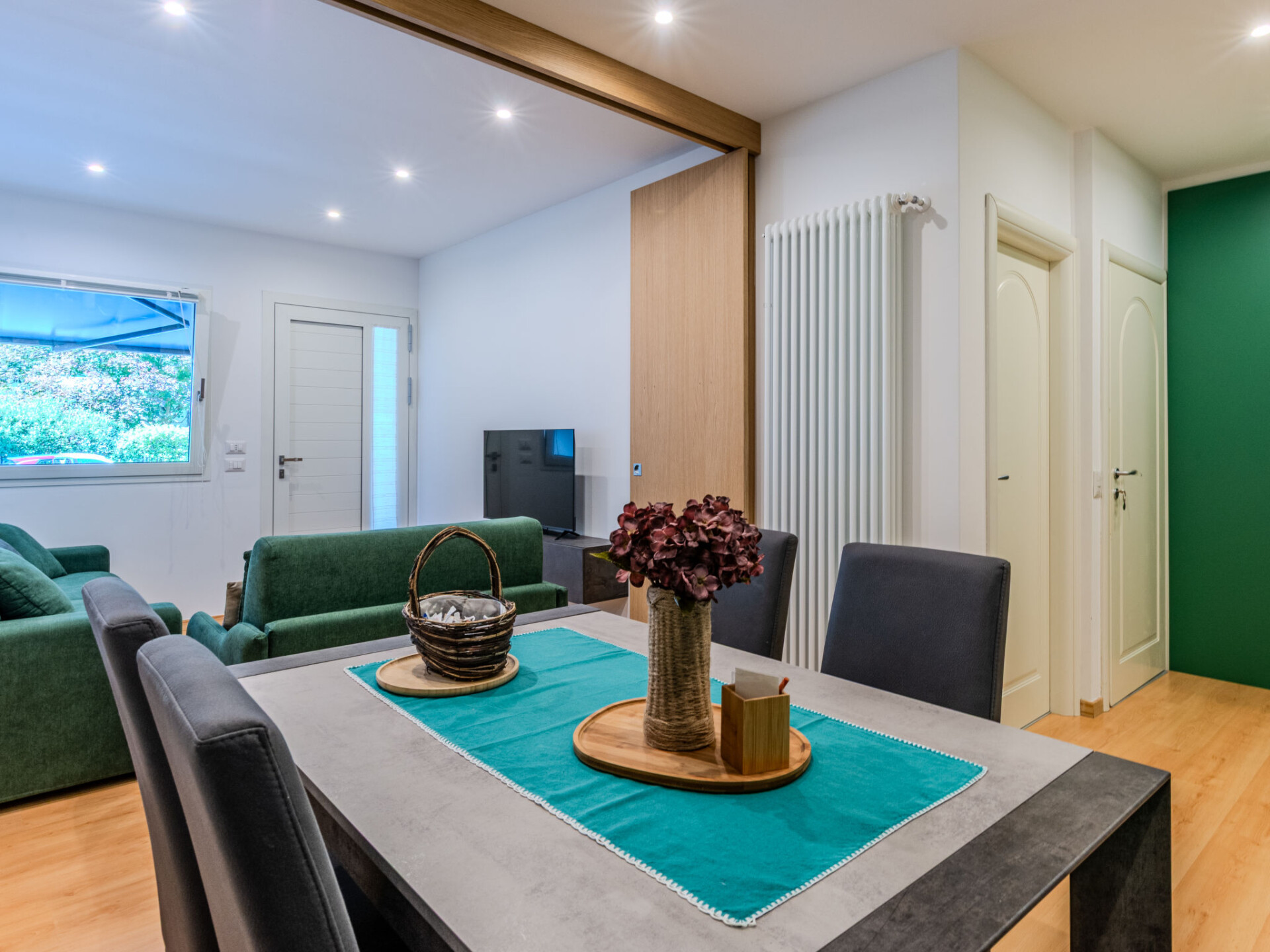 Appartement 2-kamers 50 m2, op de begane grond. Comfortabel ingericht: woon-/slaapkamer met 1 2-pers divanbed en TV. Uitgang naar het terras. 1 kamer met 1 2-pers bed. Open keuken (oven, afwasmachine, 4 inductiekookplaten, broodrooster) met eettafel. Douche/bidet/WC. Gas-verwarming. Verwarming alleen beschikbaar van 15.10. tot 15.04. Zithoek in de tuin. Terrasmeubelen, barbecue, ligstoelen (2). Ter beschikking: wasmachine, haardroger. Internet (WiFi, gratis). Parkeerplaats (2 Auto's). Niet rokers woning. Maximaal 1 huisdier/hond toegestaan. Privé ingang, brandblusser. IT014075C2ZMSCYVNP