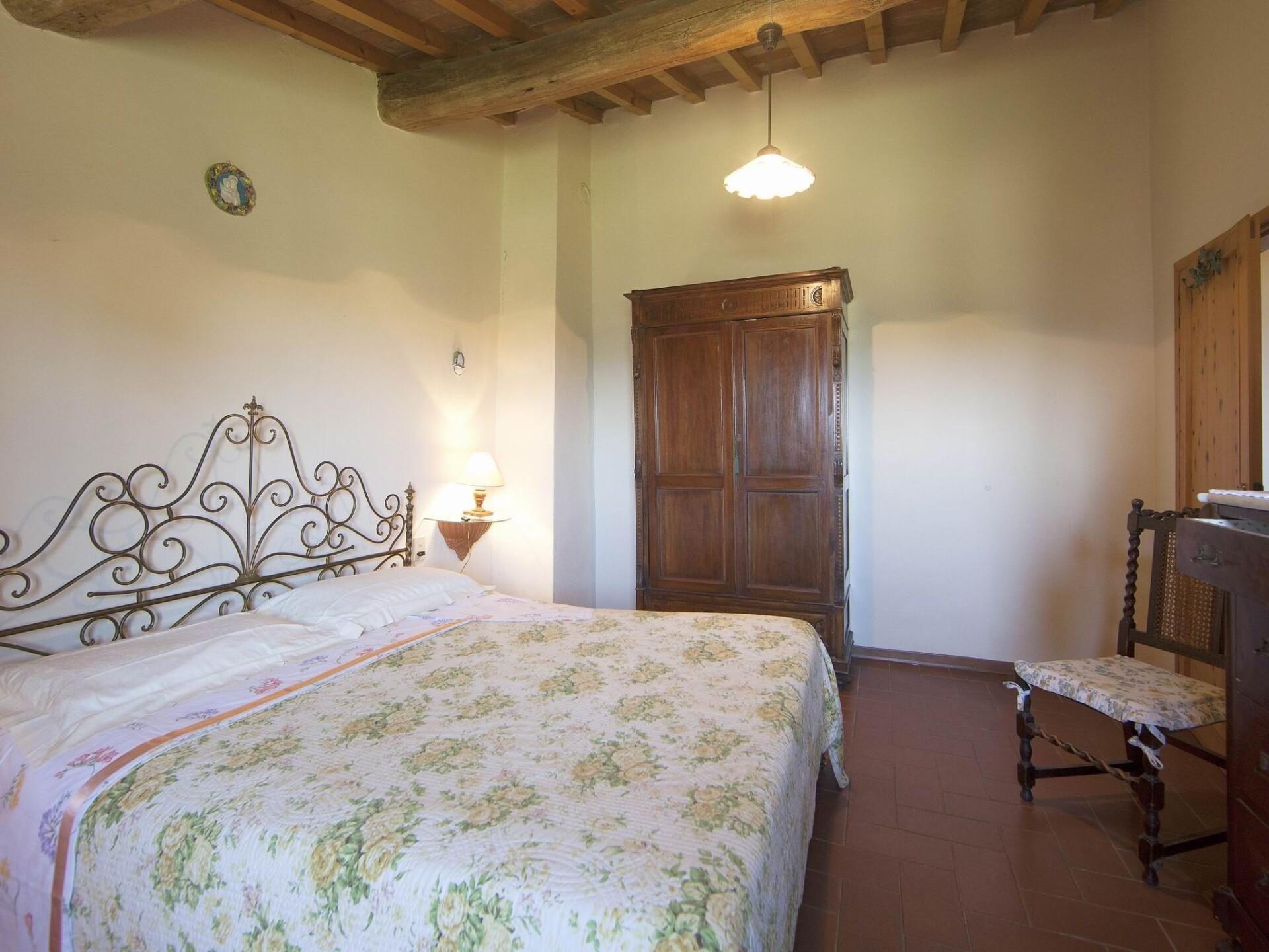 Holiday flat located in the old village where the restaurant is located, about 500 metres from the farmhouse and the swimming pool.Spacious and lovely flat measuring 98 square metres on the ground floor with 6 beds. It is spread over two floors and has two bedrooms (one with double bed and one with two single beds), a living room with sofa bed (for two people) and two bathrooms (one with shower and one with WC). Private terrace. Air conditioning.This splendid winery and holiday resort overlooks a beautiful landscape of vineyards, olive groves, wheat fields and cypress woods typical of Tuscany, in particular the Florentine hills of Montespertoli.The 15th century farm covers 500 hectares and produces 6 different types of wine and olive oil. For this reason, this property recreates all the characteristics of the Tuscan countryside and offers an ideal location for a completely relaxing holiday.We have 16 flats distributed in several renovated old barns and cottages. 2 flats are in the farmhouse next to the swimming pool (14x7, open from May to October), 10 are in the small hamlet where the restaurant is located, 500 metres from the pool. Another 4 flats are located in another farmhouse 200 metres from the restaurant and the swimming pool. The flats are furnished with particular attention to guests' comfort.The farmhouse organises wine tastings and visits to the wine cellar. On the estate, guests will also find a small museum of period carriages. The location is ideal for visiting most of the art centres such as Florence, Pisa, Lucca, Siena, San Gimignano and Volterra.At guests' disposal barbecue, Wi-Fi Internet connection, washing machine, children's playground.Distances: nearest shops Montespertoli 5 km, Florence 25 km, Certaldo 20 km, San Gimignano 35 km, Pisa 65 km, Siena 70 km. IT048030B54NKYYEYJ