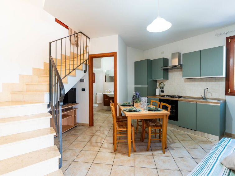 "Rosmarino", appartement 2-kamers 70 m2 op 2 verdiepingen, op de begane grond. Doelmatig en gezellig ingericht: woon-/eetkamer met 1 2-pers divanbed (140 cm, lengte 200 cm). Uitgang naar het balkon. Kookhoek (oven, afwasmachine, 4 kookpitten (vlammen), broodrooster, waterkoker). Douche/bidet/WC. Bovenverdieping: 1 2-pers. kamer met afgeschuinde daken. Douche/bidet/WC. Air-conditioning. Verwarming alleen beschikbaar van 01.11. tot 15.04. Terras 20 m2. Terrasmeubelen. Uitzicht op het landschap. Ter beschikking: kinderbed tot 2 jaar, haardroger. Internet (WiFi, gratis). Parkeerplaats bij het huis. Maximaal 1 huisdier/hond toegestaan. Rookmelders, brandblusser. IT009006B4MY6VRM77