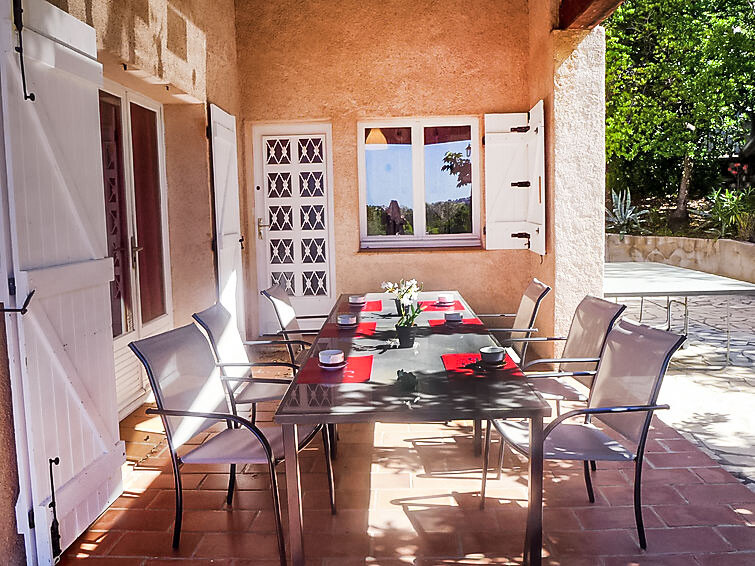 Gezellige eengezinswoning "Roumagnac". Buiten de plaats, 3.1 km van het centrum van Cavalaire sur Mer, tegen een helling, in een woonwijk, 1.6 km van zee, op het zuiden. Voor alleengebruik: tuin 1.700 m2 (niet omheind). Buitendouche, parkeerplaats (voor 3 auto's) op het terrein. Winkel 2.5 km, levensmiddelenwinkel 2 km, supermarkt 4.2 km, winkelcentrum 11 km, restaurant 2 km, bar 2 km, bakkerij 2 km, bushalte "PLACE DU PARC" 1.6 km, zandstrand "Terre de sable" 1.6 km, park "Aqualand" 23 km, duikschool 3.5 km. Jachthaven 3.4 km, zeilschool 3.2 km, tennis 1 km, midgetgolf 12 km, manege 3 km. Attracties in de buurt: Azur Park, Paint-ball 13 km, Bowling à Port-Grimaud 14 km, St-Tropez 18 km, Ste-Maxime 25 km. Wandelgebied Sentier du Fenouillet 5.6 km, Sentier du Littoral 8 km, Toulon 62 km. Auto noodzakelijk. De sleuteloverdracht vindt plaats bij het agentschap Interhome in Cavalaire.