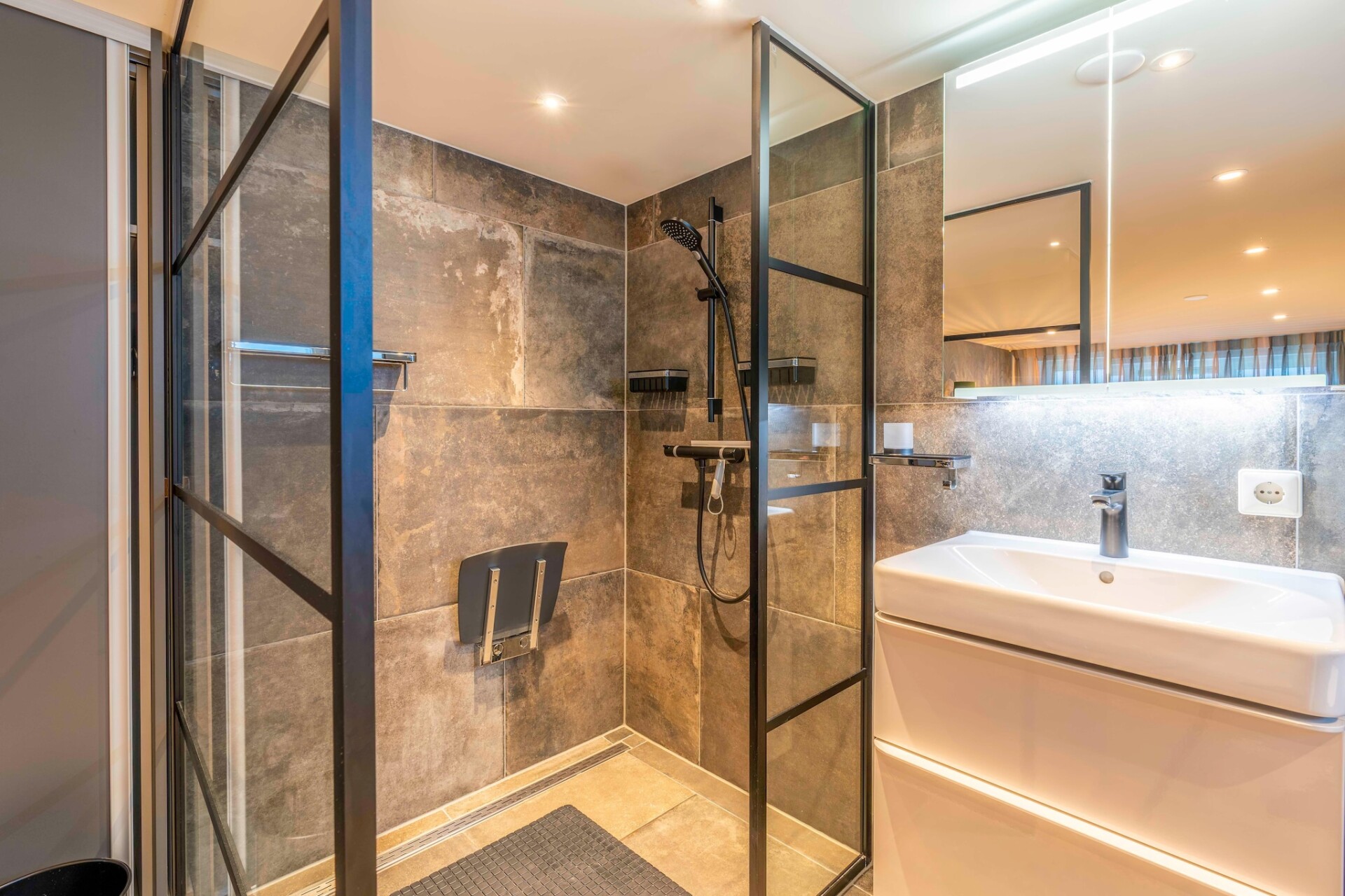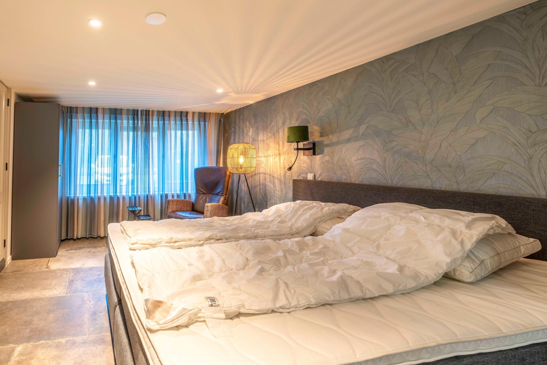 Er zijn 3 slaapkamers aanwezig, één bevindt zicht op de begane grond en is voorzien van een comfortabel 2-persoons boxspring bed en een TV. Tevens beschikt deze slaapkamer over een badkamer ensuite welke is voorzien van een ruime inloopdouche, wastafel en een toilet. Op de etage zijn twee slaapkamers aanwezig, beide zijn voorzien van twee 1-persoons boxspring bedden. Eén slaapkamer beschikt over een TV en een privé terras. Tevens is er op de etage een badkamer aanwezig welke uitgerust is met een douche, wastafel en een toilet. Op de begane grond is een separate toilet aanwezig.