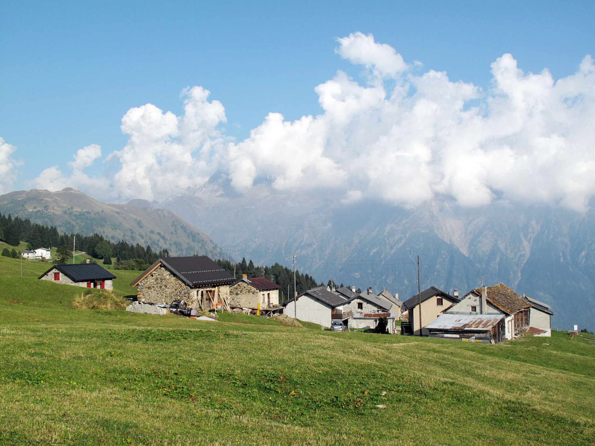 San Prou, Acquacalda 35 km van Malvaglia: Rustieke, eenvoudige eengezinswoning "Rustico Edel", 1.940 m boven zeeniveau, vrijstaand, omgeven door weiden. In het district Valle di Blenio, rustige, zonnige, verhoogde ligging, 20 m van de bosrand, 300 m van de rivier, te midden van groen. Voor medegebruik: wild terrein, weide. Barbecue. Voor alleengebruik: tuinmeubelen. In het huis: bergruimte voor fietsen. 200 m lange toegangsweg (onverharde weg). Parkeerplaats bij het huis. Supermarkt 17 km, restaurant 17 km, bar 17 km, bakkerij 17 km, fietsverhuur 17 km, bushalte "Alpe Casaccia, Acquacalda 140" 300 m, treinstation "Biasca FFS - SBB" 40 km. Wandelroutes 5 m vanaf het huis. Attracties in de buurt: Castelli di Bellinzona UNESCO, Mercato, Museo della Valle di Blenio, Negrentino, archivio Donetta, Splash & SPA, Lido di Locarno, Swissminiature, Ascona, Locarno. Bekende meren kunnen gemakkelijk worden bereikt: Lago Retico, Lago di Luzzone, Lago Ritom, Lago Maggiore, Lago Lugano. Wandelgebied Lucomagno, Val di Blenio, Val Malvaglia, Greina. Auto noodzakelijk. Dieren in de buurt. In dit complex zijn verder 1 chalet te huur.