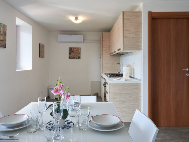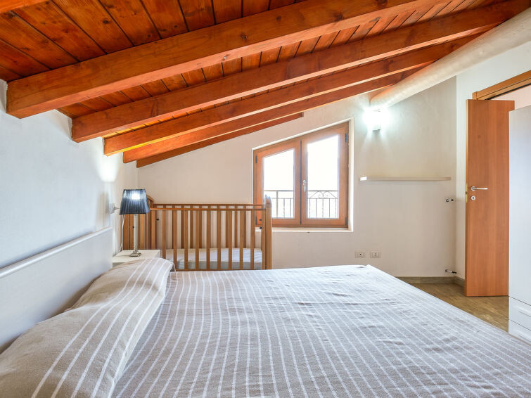 "Rustico Maria (DMA391)", appartement 3-kamers 62 m2 op 2 verdiepingen, op het zuiden gelegen. Gerenoveerd in 2012, doelmatig en modern ingericht: Bovenverdieping: (buitentrap) woon-/slaapkamer met 1 divanbed, eettafel, Sat-TV en verwarming. Uitgang naar het balkon. Open keuken (oven, afwasmachine, 4 kookpitten (vlammen), broodrooster, waterkoker, diepvriezer, elektrische koffiemachine). Douche/WC. 2e Verdieping: (wenteltrap) doorgangskamer met elektrische kachel en air-conditioning. Uitgang naar het balkon. 1 kamer met 1 2-pers bed (160 cm). 1 kamer met 2 bedden. Aparte WC. Verwarming niet in alle ruimtes. 2 balkons. Balkonmeubilair. Mooi uitzicht op het meer. Ter beschikking: kinderstoel, kinderbed tot 2 jaar. Internet (Internet (WiFi), gratis). Maximaal 1 huisdier/hond toegestaan. Privé ingang. IT013239C2JPAPW6QL