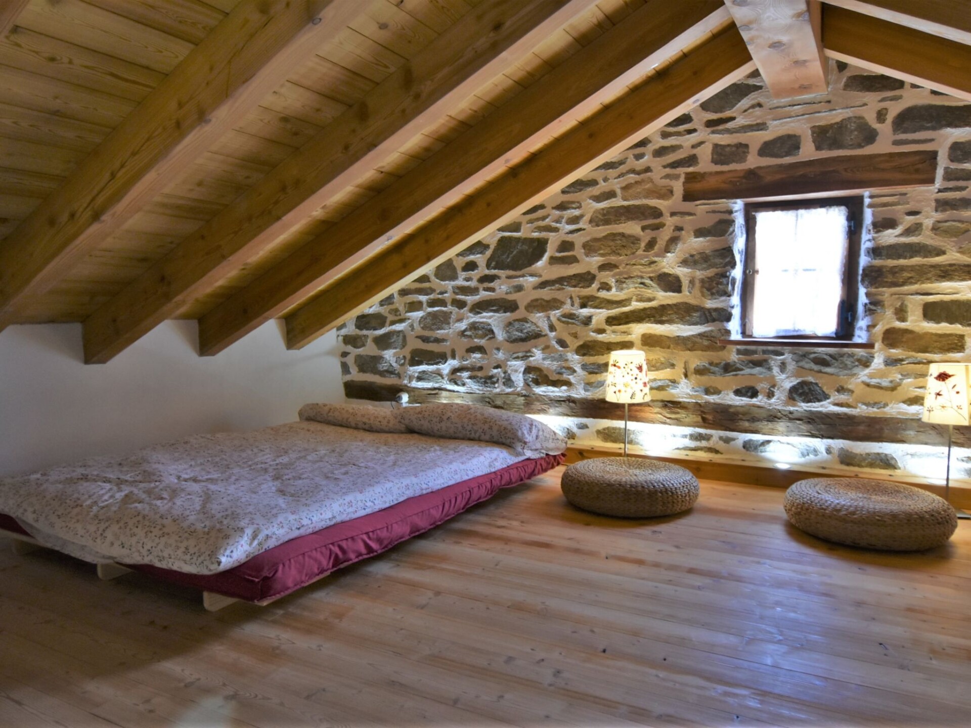 Huis 5-kamers 100 m2 op 3 verdiepingen. Gedeeltelijk afgeschuinde daken, gerenoveerd in 2021, rustiek en met veel hout ingericht: woon-/eetkamer, hoogte van het plafond 190 - 205 cm met eettafel en TV (Flatscreen TV), radio en houtkachel. Open keuken in de hal (4 kookpitten (vlammen), broodrooster, waterkoker, magnetron, elektrische koffiemachine) met hoogte van het plafond 190 - 205 cm, eettafel en houtkachel. Uitgang naar de tuin. Bovenverdieping: 1 kamer, hoogte van het plafond 185 - 200 cm met 1 2-pers bed (140 cm). 1 kamer, hoogte van het plafond 185 - 200 cm met 1 bed. 1 2-pers. kamer, hoogte van het plafond 185 - 200 cm. Douche/bidet/WC. 2e Verdieping: 1 groot kamer met afgeschuinde daken, hoogte van het plafond 60 - 200 cm met 2 bedden. Houten vloeren. Ligstoelen (2). Mooi uitzicht op de bergen en het dal. Ter beschikking: wasmachine, haardroger, haardhout (gratis). Niet rokers woning. Privé ingang. IT014058C23P3G9K7X