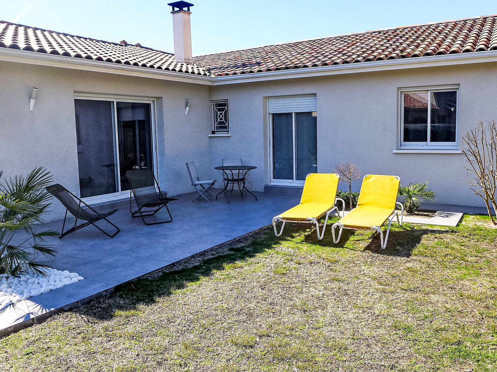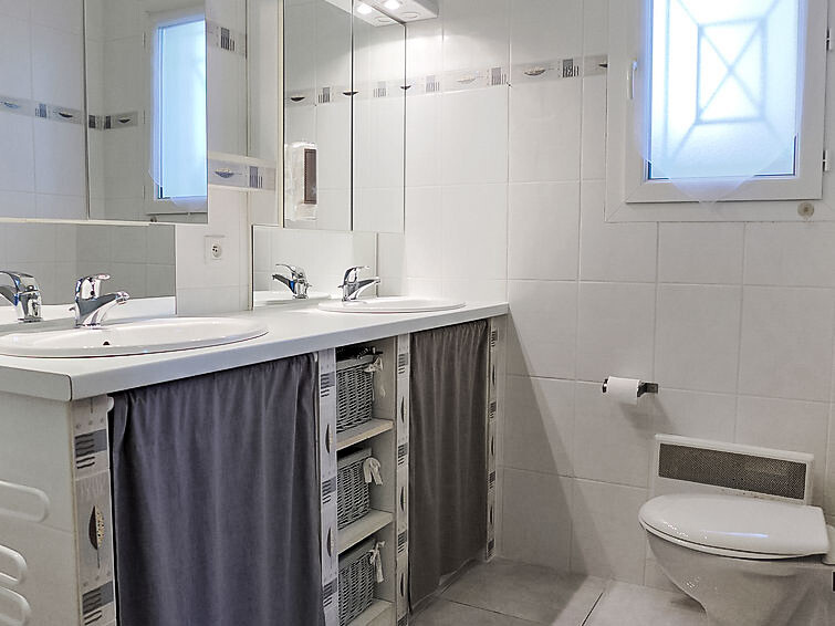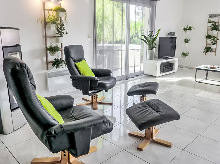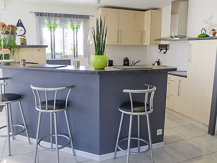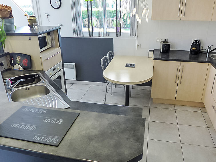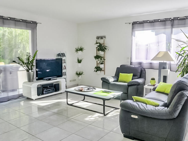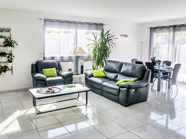 Huis 4-kamers 130 m2. Het objekt is geschikt voor 4 volwassenen + 2 kinderen. Comfortabel en mooi ingericht: woon-/eetkamer met panoramavenster met TV (Flatscreen TV), DVD. Uitgang naar het terras. 1 kamer met 1 2-pers bed (1 x 140 cm, lengte 190 cm). 1 kamer met 1 x 2 stapelbedden (90 cm, lengte 190 cm). Open bureau. 1 kamer met Kleedkamer met 1 2-pers bed (1 x 140 cm, lengte 190 cm), douche/WC en dubbele wastafels. Open keuken (oven, afwasmachine, 3 inductiekookplaten, magnetron, diepvriezer, elektrische koffiemachine). Douche, aparte WC. Elektrische verwarming. Terras 30 m2, op het zuiden gelegen terras 30 m2, op het noorden gelegen. Terrasmeubelen, barbecue. Ter beschikking: wasmachine, droger, strijkijzer. Internet (WiFi, gratis). Parkeerplaats (3 Auto's), garage op het terrein. Rookmelders.