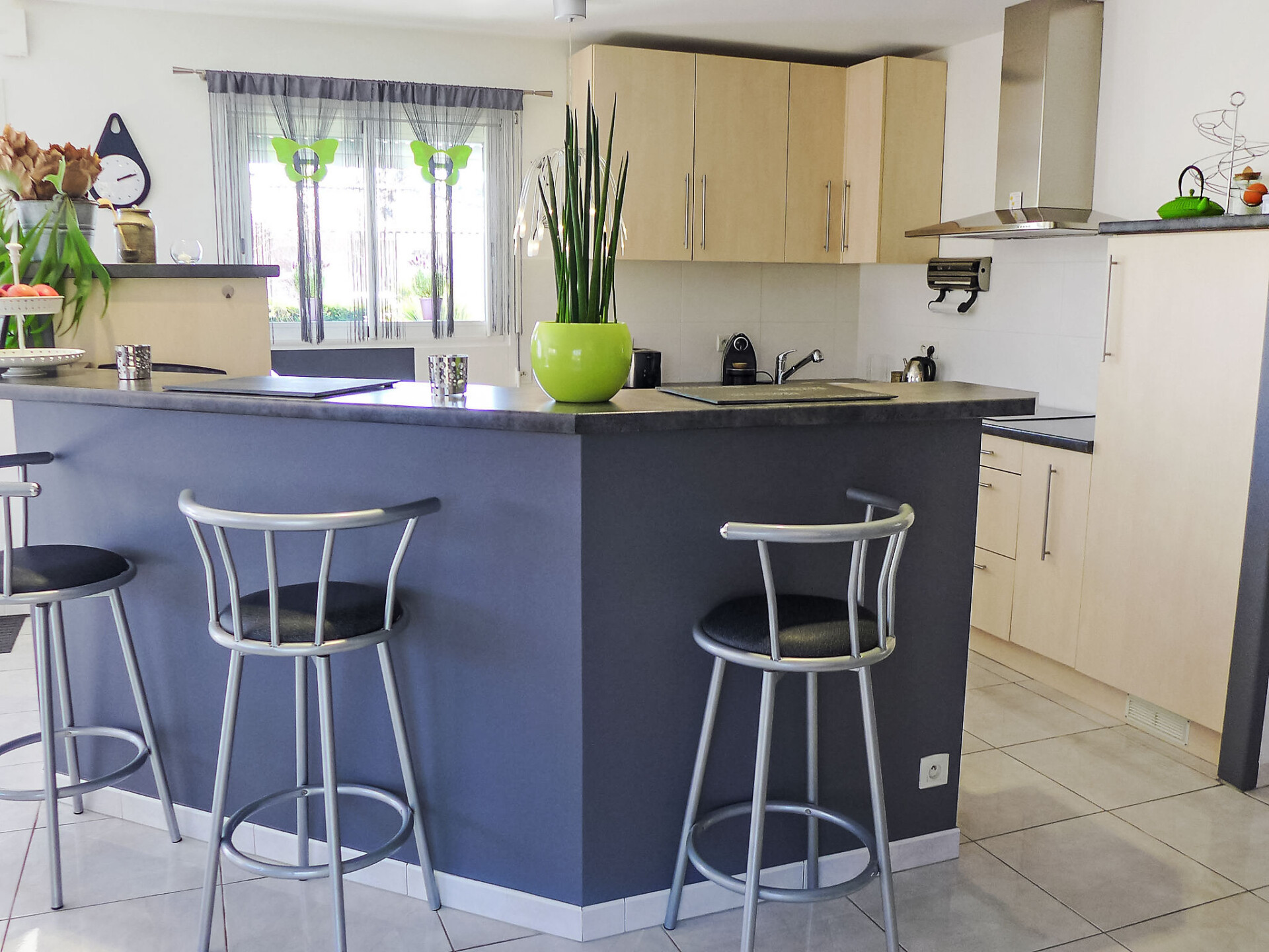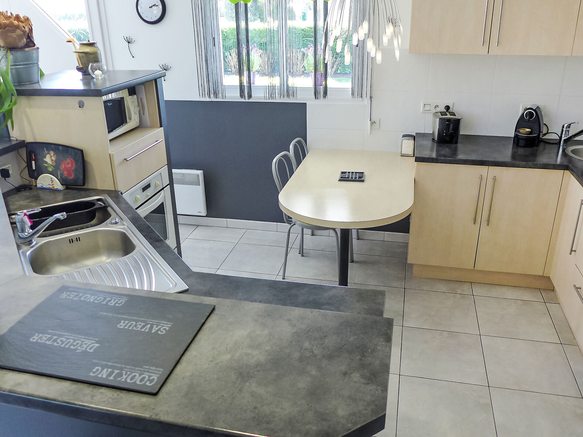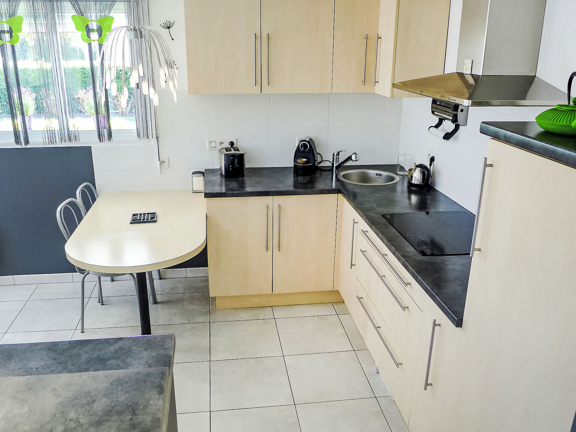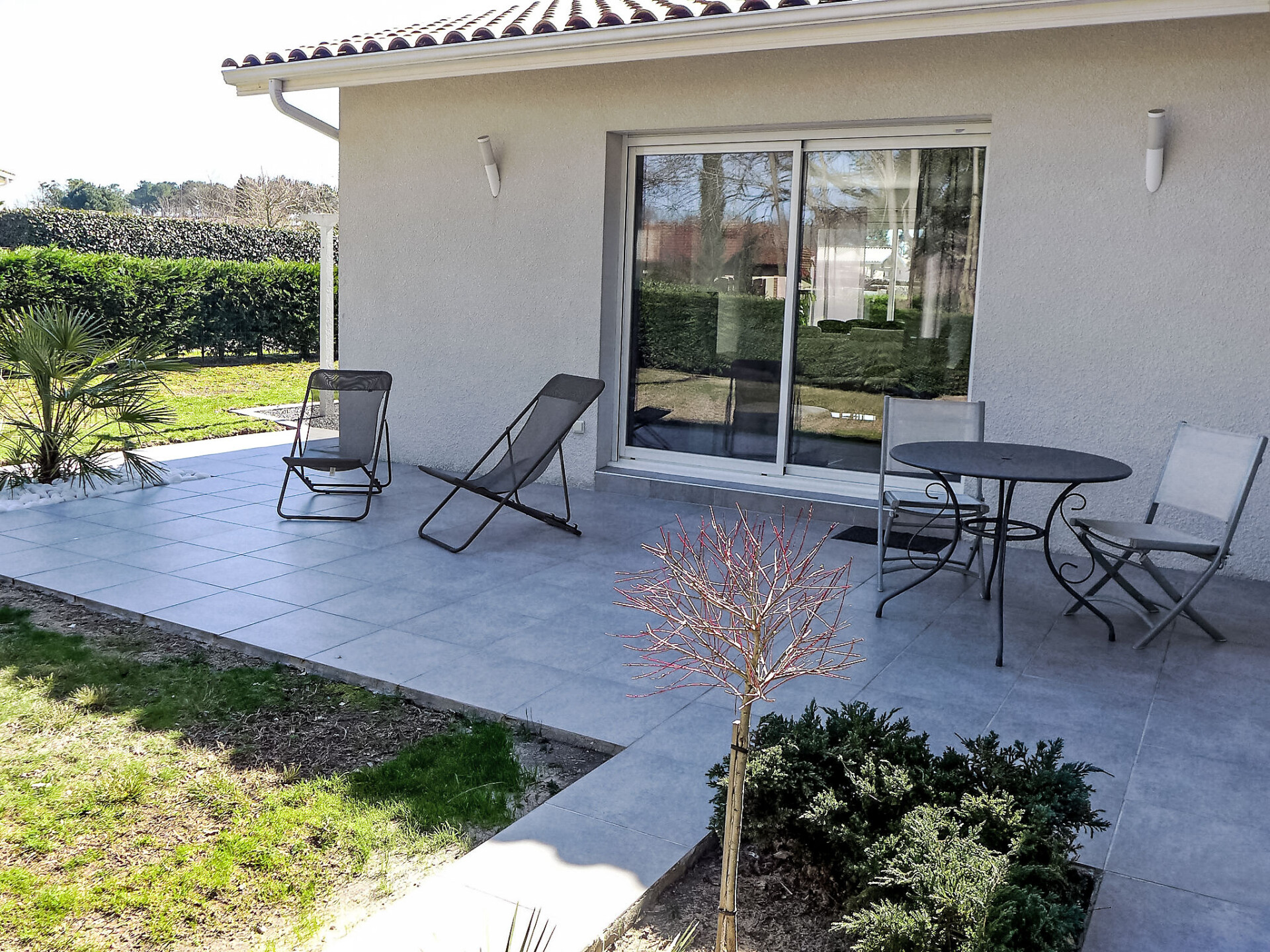 Huis 4-kamers 130 m2. Het objekt is geschikt voor 4 volwassenen + 2 kinderen. Comfortabel en mooi ingericht: woon-/eetkamer met panoramavenster met TV (Flatscreen TV), DVD. Uitgang naar het terras. 1 kamer met 1 2-pers bed (1 x 140 cm, lengte 190 cm). 1 kamer met 1 x 2 stapelbedden (90 cm, lengte 190 cm). Open bureau. 1 kamer met Kleedkamer met 1 2-pers bed (1 x 140 cm, lengte 190 cm), douche/WC en dubbele wastafels. Open keuken (oven, afwasmachine, 3 inductiekookplaten, magnetron, diepvriezer, elektrische koffiemachine). Douche, aparte WC. Elektrische verwarming. Terras 30 m2, op het zuiden gelegen terras 30 m2, op het noorden gelegen. Terrasmeubelen, barbecue. Ter beschikking: wasmachine, droger, strijkijzer. Internet (WiFi, gratis). Parkeerplaats (3 Auto's), garage op het terrein. Rookmelders.