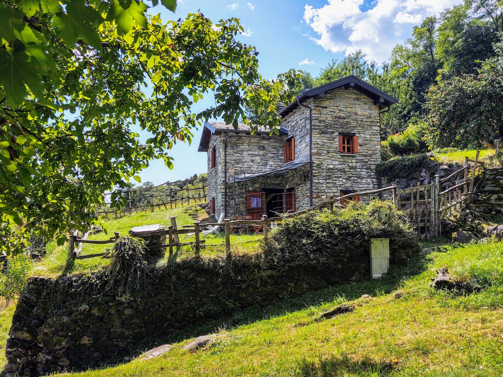 Rustieke rustieke woning "Salargo". Boven Calozzo, in het gehucht Salargo, 3 km van het centrum van Pianello (Calozzo), 14 km van het centrum van Menaggio, 50 km van het centrum van Como, 3 km van het meer. Voor alleengebruik: terrein 1.000 m2, tuin op verschillende niveaus met bomen, weide. Toegangsweg (bergweg). 20 m steil voetpad naar het huis. Parkeerplaats op 20 m. Winkel 3 km, supermarkt 4 km, restaurant 3 km, bar 3 km, bushalte 3 km, treinstation "Como" 50 km, kiezelstrand 2.5 km, openluchtzwembad 8 km. Jachthaven 3 km, golfterrein (18 holes) 20 km. Attracties in de buurt: Museo della Barca Lariana, Chiesa di S.Martino, Villa Carlotta-Tremezzo, Villa Balbianello-Lenno, Bellagio, Varenna. Bekende meren kunnen gemakkelijk worden bereikt: Lago di Mezzola, Lago di Lugano. Wandelgebied Monte Grona - Rifugio Menaggio, Sasso di Musso- Chiesa Santa Eufemia, Monte Legnoncino. Auto noodzakelijk. Vissen toegestaan (visvergunning noodzakelijk).