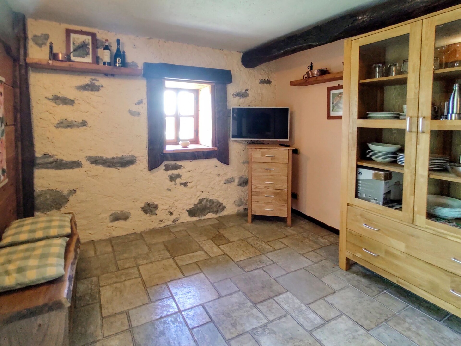 Huis 2-kamers 55 m2 op 2 verdiepingen. Rustiek en gezellig ingericht: woon-/eetkamer met Sat-TV. Uitgang naar de tuin. Kleine kookhoek (Gasfornuis, 4 kookpitten (vlammen), broodrooster). Douche/WC. Houtverwarming. Bovenverdieping: (ladder), 1 2-pers. kamer met 1 bed. Kleine salon. Natuurstenen vloeren. Ruime zithoek in de tuin. Barbecue, ligstoelen (2). Mooi panoramazicht op het meer en de bergen. Ter beschikking: Internet (WiFi, gratis). IT013183C2UC9DF4BC