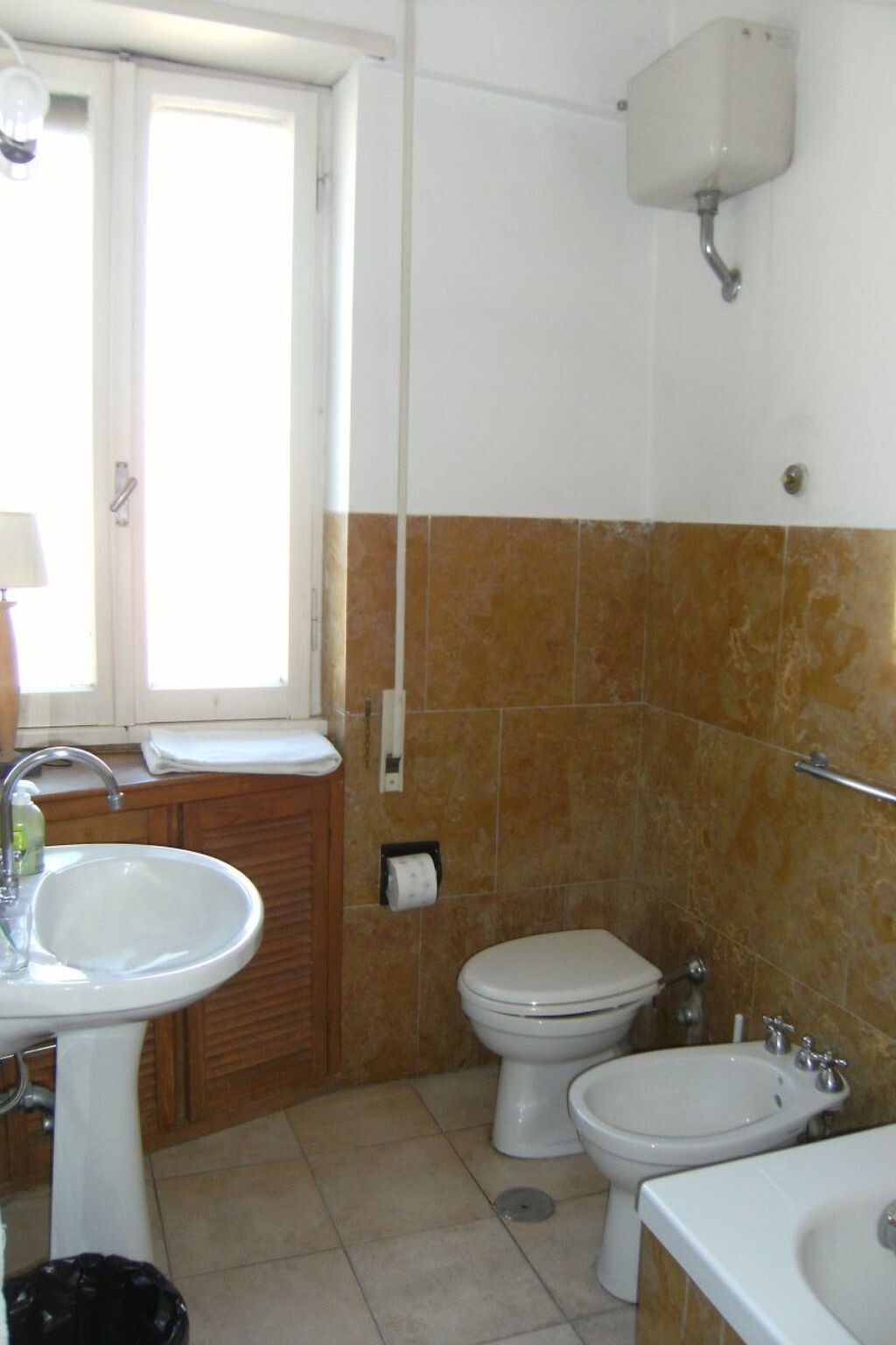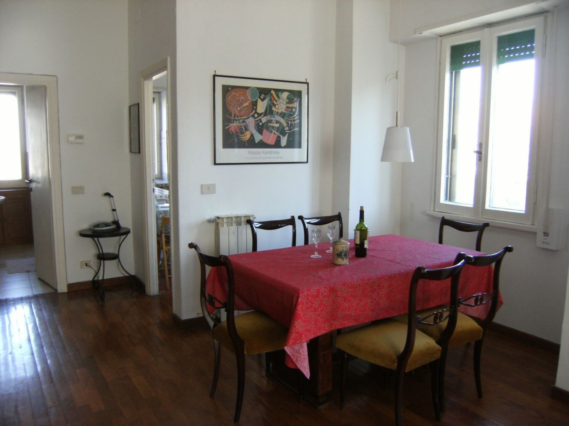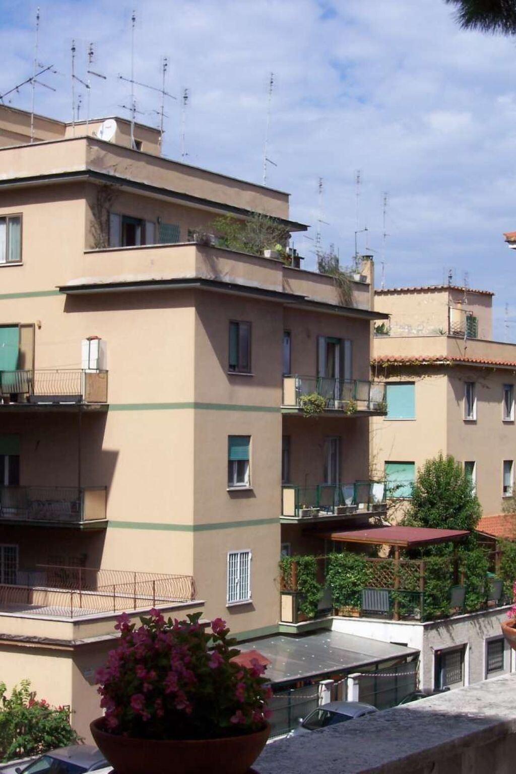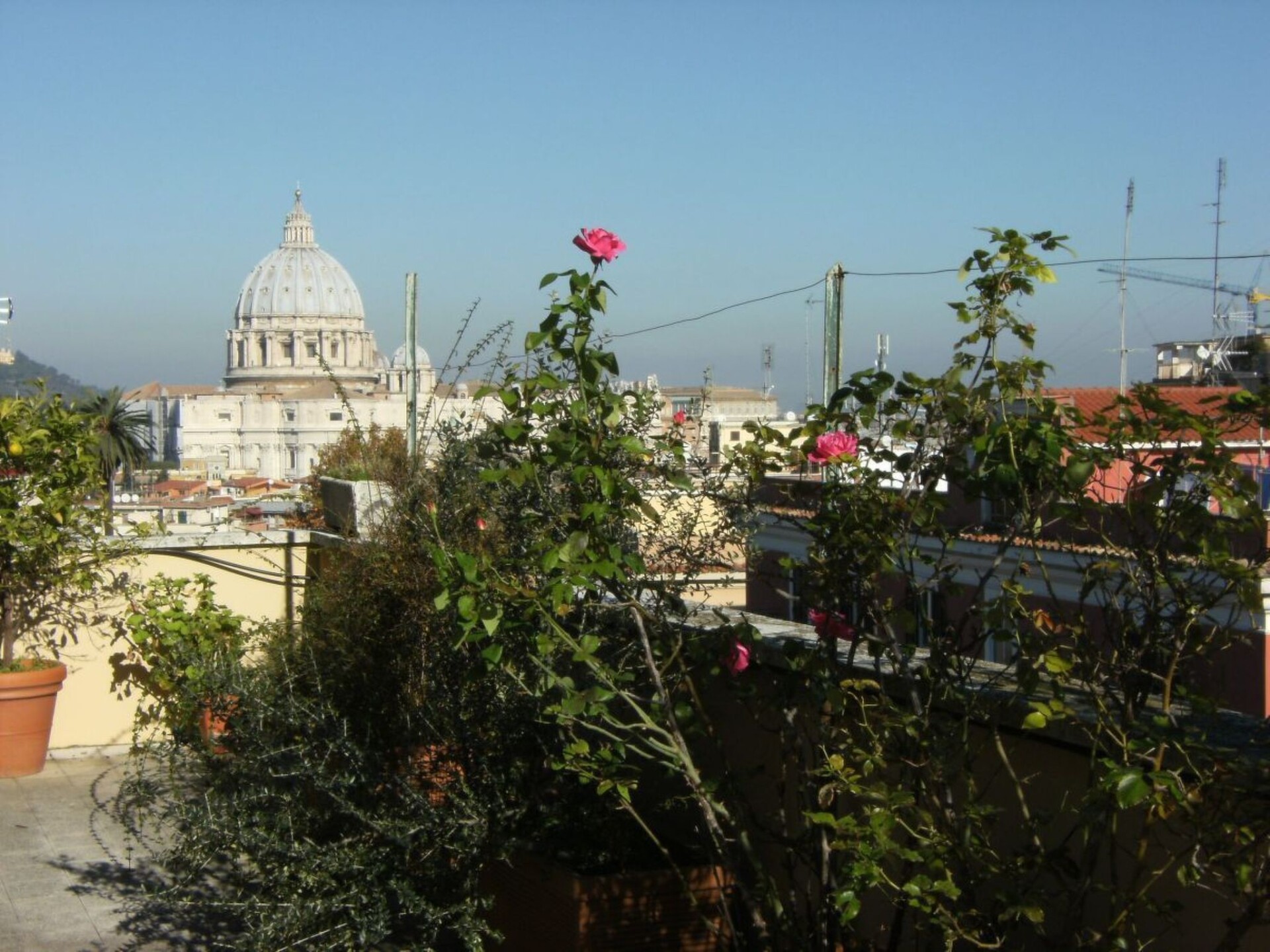 The holiday flat - an attic with a large roof terrace - is located in a very good and relatively quiet residential area with a stunning view of Rome's main church, San Pietro.It also enjoys an almost unbelievable panoramic terrace of approx. 35 square metres, equipped with a lounger or deckchair, table and chairs. The view of the dome, the upper part of the façade and the groups of figures in the narthex is breathtaking even during the day, and the sight of the huge dome's lantern illuminated at night is almost indescribable!The quiet and light-flooded flat (approx. 75 sqm) with windows on 3 sides is located on the 4th floor (a new lift has been available since 2011!) of a small apartment building and is attractively furnished: large living/dining room with access to the terrace, large satelliteTV, dvd player, ceiling fan, new double sofa bed, another 3-seater couch and 2 armchairs, large bedroom with ceiling fan, kitchen (***) with dishwasher and washing machine, view of S. Pietro and exit to terrace, bathroom (with bathtub, hairdryer). The furnishings are good and very well maintained, beautiful parquet floors, central heating (gas).Very good connections to other central areas of the city: bus line 64 through the entire city centre to Termini, bus line 34 (stops 25 m further on) to Piazza Cavour, light rail via Trastevere to Termini.Lift available in the building. IT058091C2ZC6MS6SZ