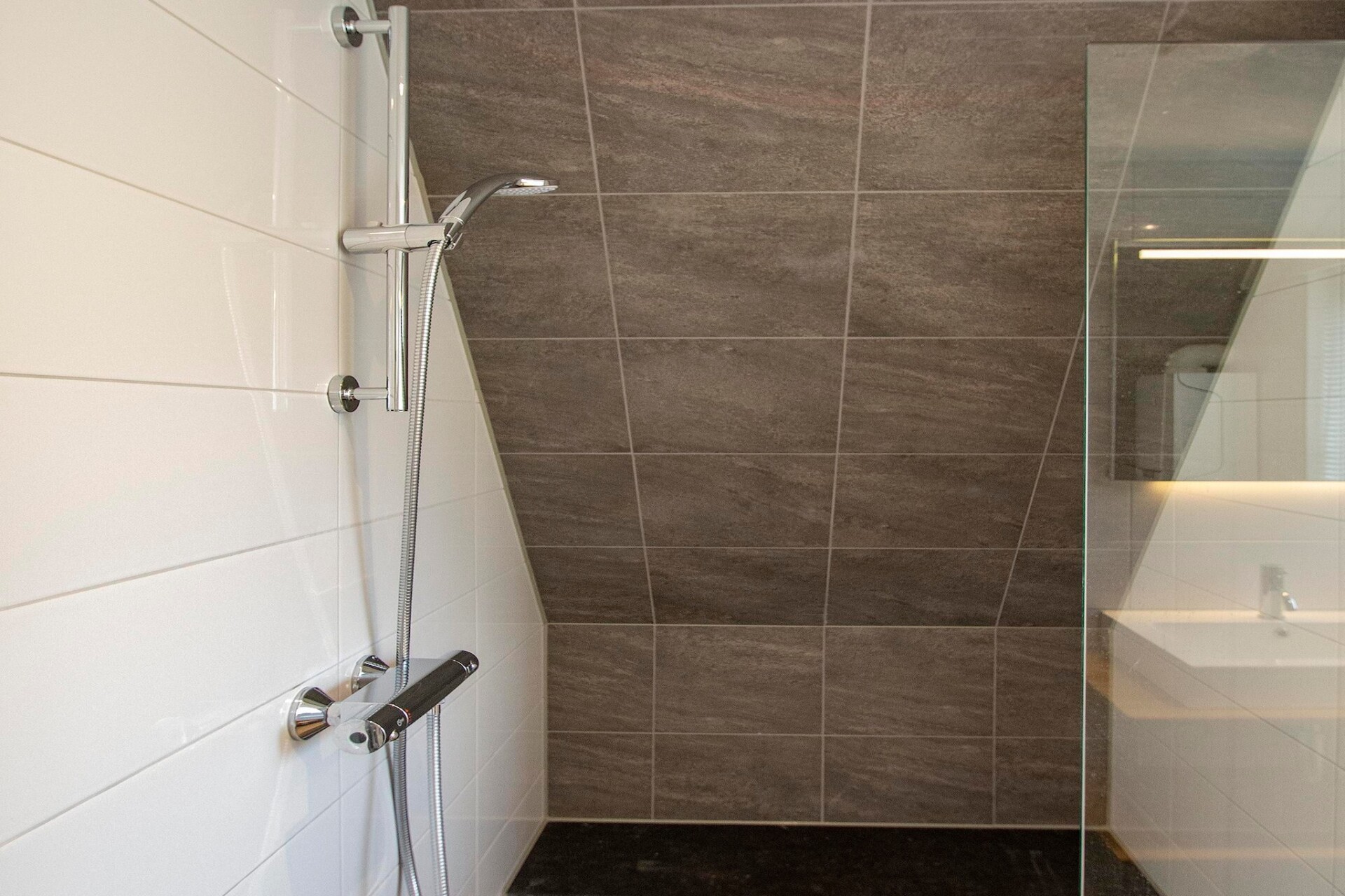 Stap binnen en vind een ruime en lichte woonkamer die naadloos aansluit op een open keuken, ideaal om samen te komen en te koken. Op de begane grond vindt u een comfortabele slaapkamer en een moderne badkamer met een inloopdouche en een wasmachine voor extra gemak.