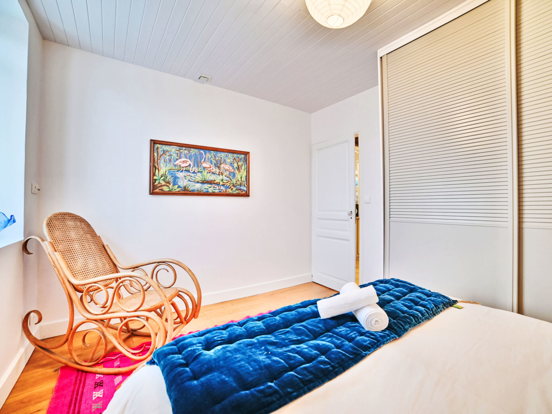Huis in een rij 4-kamers. Comfortabel en mooi ingericht: woon-/eetkamer. Uitgang naar de tuin. 1 kamer met 1 2-pers bed (160 cm, lengte 200 cm). 1 kamer met 1 2-pers bed (140 cm, lengte 190 cm). 1 kinderkamer met 1 x 1 stapelbedden (80 cm, lengte 190 cm). Open keuken (4-pits kookplaat, oven, broodrooster, waterkoker, magnetron, elektrische koffiemachine, kookeiland). Badkamer, aparte WC. Elektrische verwarming. Klein terras. Terrasmeubelen, barbecue, ligstoelen. Ter beschikking: wasmachine, haardroger. Internet (WiFi, gratis). Parkeerplaats (overdekt, 1 Auto). Rookvrij huis. Rookmelders. Aanbod door een particulier volgens art. 155, IV van CGI. 173370010426B