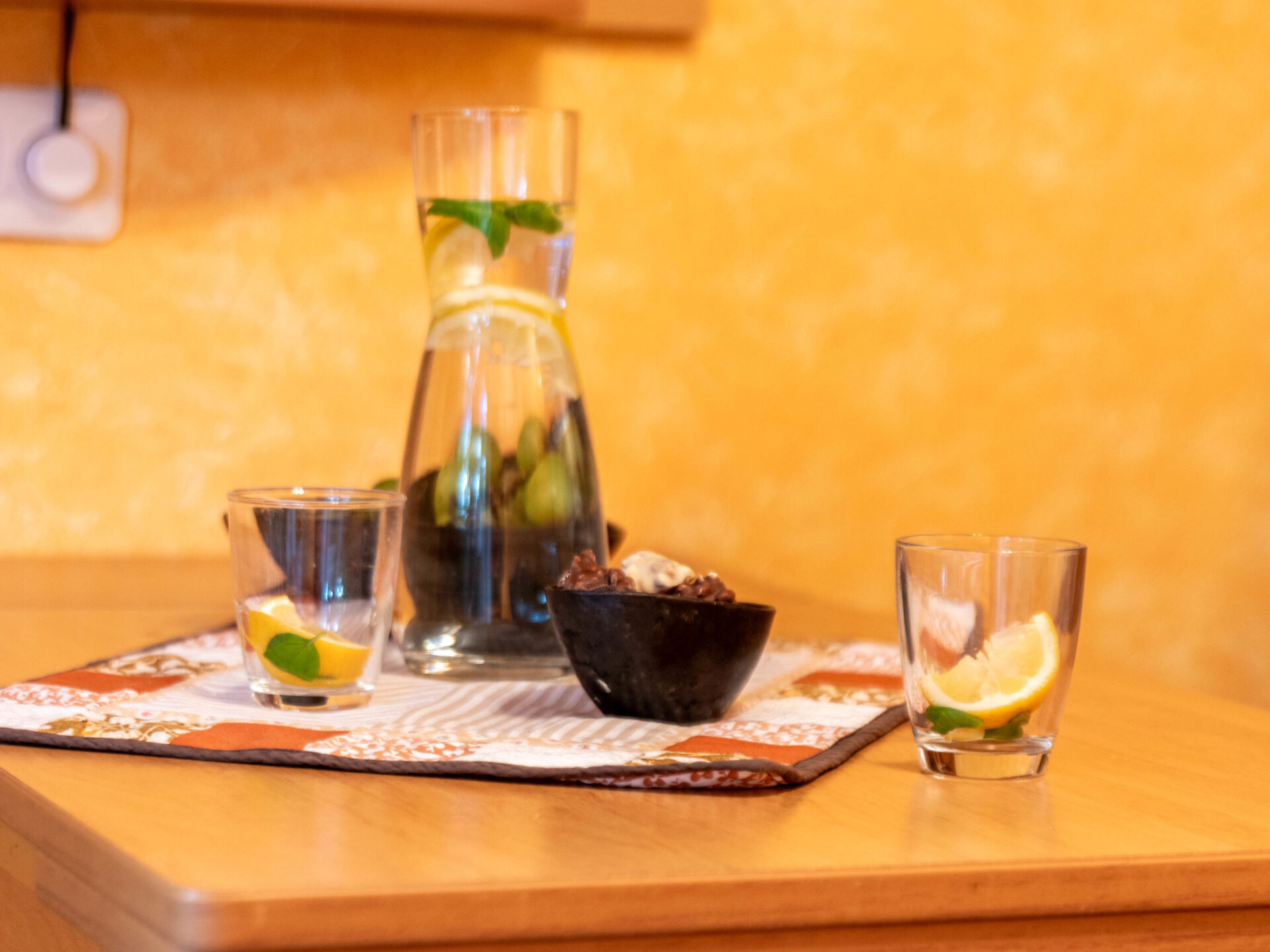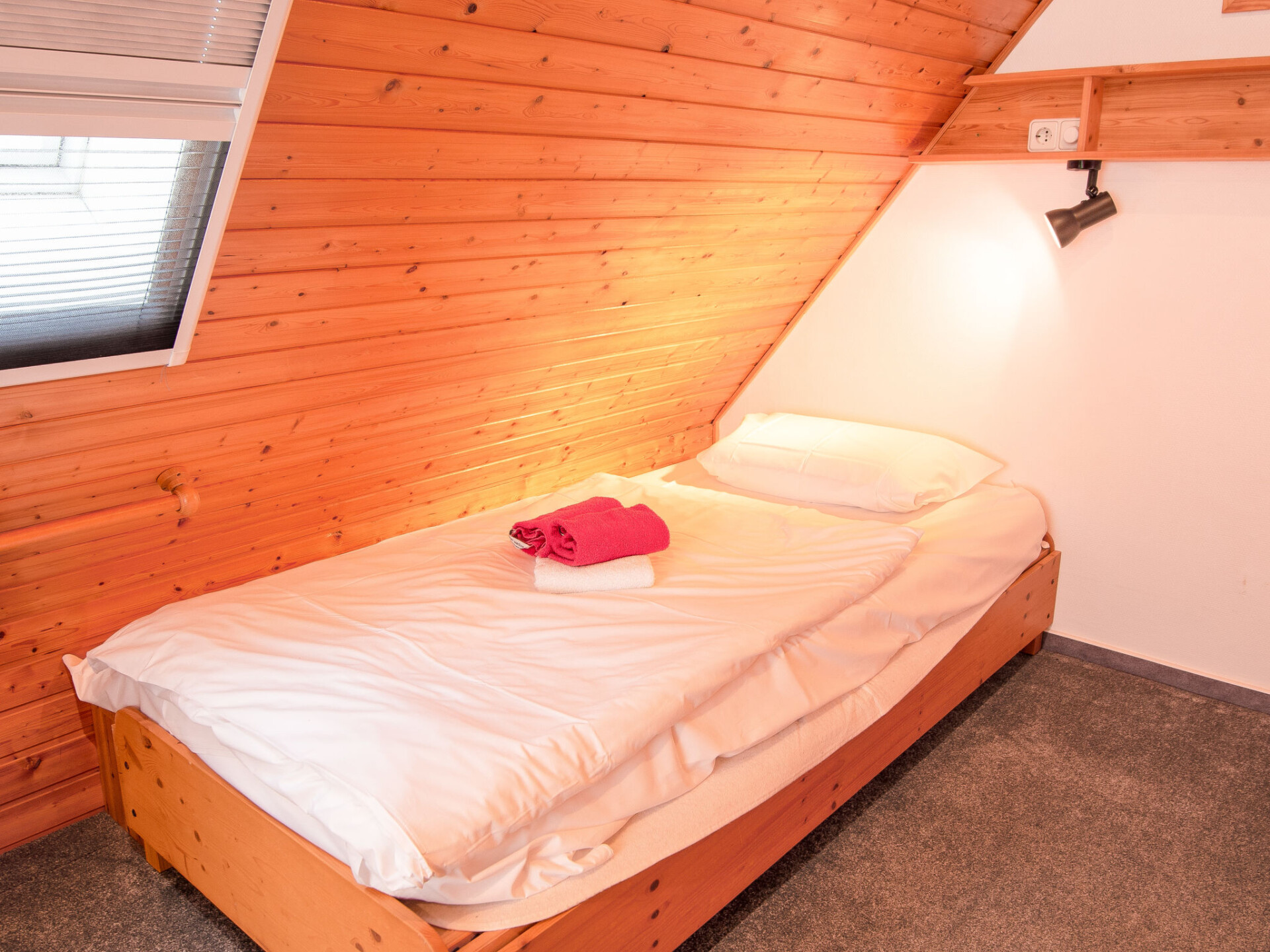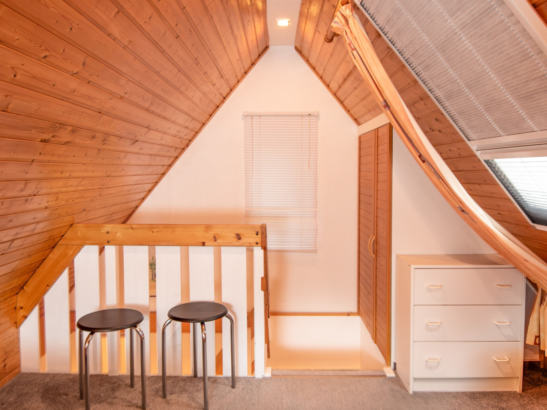 Huis 3-kamers 32 m2 op 2 verdiepingen, op de begane grond. Het objekt is geschikt voor 2 volwassenen + 2 kinderen. Gezellig ingericht: woon-/eetkamer 10 m2 met Sat-TV (Flatscreen TV), radio en CD-speler. Uitgang naar het terras. 1 kleine kamer 4 m2 met 1 x 2 stapelbedden (90 cm, lengte 190 cm). Keuken (4-pits kookplaat, oven, broodrooster, waterkoker, magnetron, elektrische koffiemachine). Douche/WC. Zolderverdieping: (steile trap), 1 open kamer 5 m2, met afgeschuinde daken met 2 bedden (90 cm, lengte 190 cm). Terrasmeubelen. Mooi uitzicht op de tuin. Ter beschikking: wasmachine, kinderstoel (extra). Koelkast zonder vriesvak, rookvrij huis. Rookmelders.
