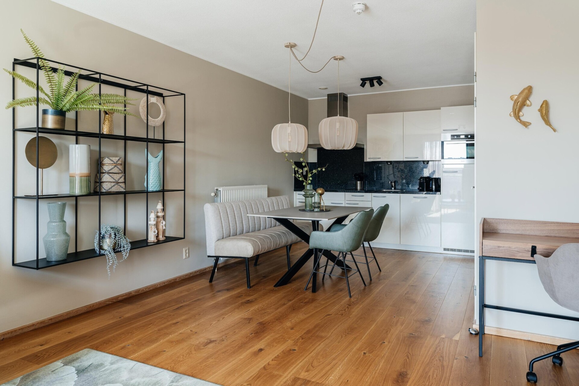 Dit moderne appartement op de begane grond, gelegen aan de Hellingweg 10b in Den Haag, Scheveningen, is ideaal voor maximaal 4 gasten. De lichte woon-/eetkamer is voorzien van een smart-tv, comfortabele stoelen en een eettafel. De open keuken is volledig uitgerust met een kookplaat, afzuigkap, oven, magnetron, vaatwasser, waterkoker en koffiezetapparaat, perfect om thuis maaltijden te bereiden. De slaapkamer is voorzien van een boxspringbed voor twee personen en twee opklapbare eenpersoonsbedden, plus een tweede tv. Een badkamer met douche en wastafel, een apart toilet en voorzieningen in de accommodatie zoals een wasmachine, strijkplank en verwarming zorgen voor een ontspannen verblijf.