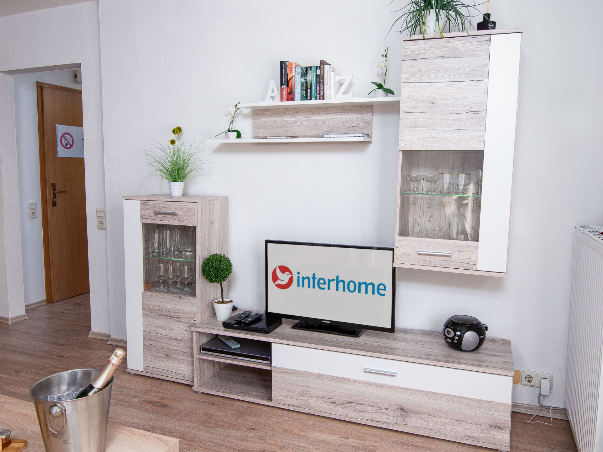 Appartement 2-kamers 55 m2 op de 1e verdieping. Mooi en gezellig ingericht: woon-/eetkamer 19 m2 met Sat-TV (Flatscreen TV), radio, CD-speler en DVD. Uitgang naar het balkon. 1 kamer 11 m2 met 1 2-pers bed (2 x 90 cm, lengte 200 cm). Kleine keuken 4 m2 (4-pits kookplaat, oven, magnetron, diepvriezer, elektrische koffiemachine) met kleine eettafel. Douche/WC. Balkonmeubilair. Ter beschikking: kinderstoel, haardroger. Internet (Internet (WiFi), gratis). Niet rokers woning. Rookmelders.