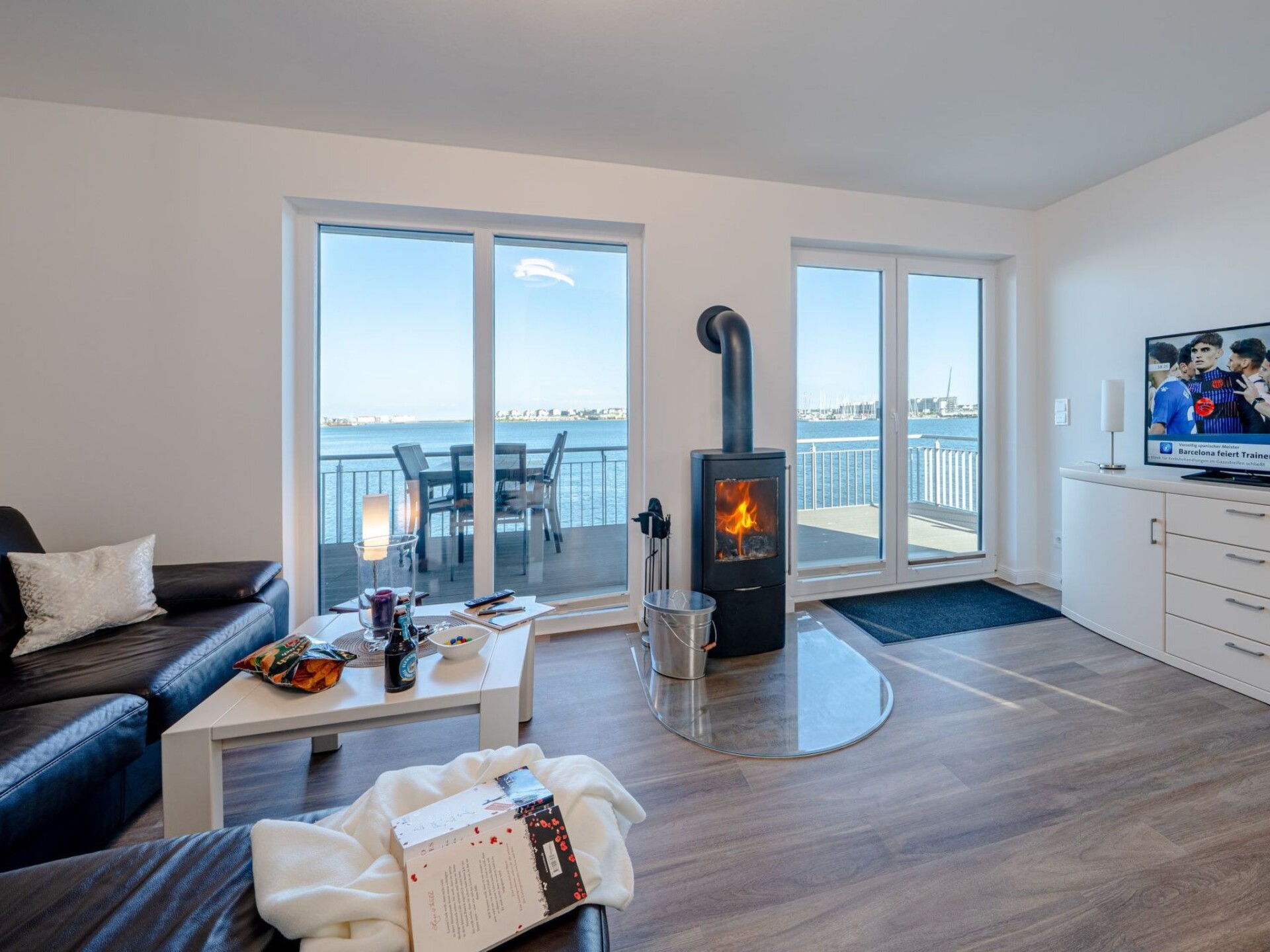De terrassen van deze droomaccommodatie bieden de hele dag zon - van zonsopgang tot zonsondergang. Elke verdieping heeft een aantrekkelijke buitenruimte, met als hoogtepunt het 360° dakterras met sensationeel panoramisch uitzicht. Vanaf hier kun je genieten van het uitzicht op de jachthaven, de Oostzee, de monding van de Schleimündung, de Schlei Oostzee fjord en het omliggende natuurgebied.