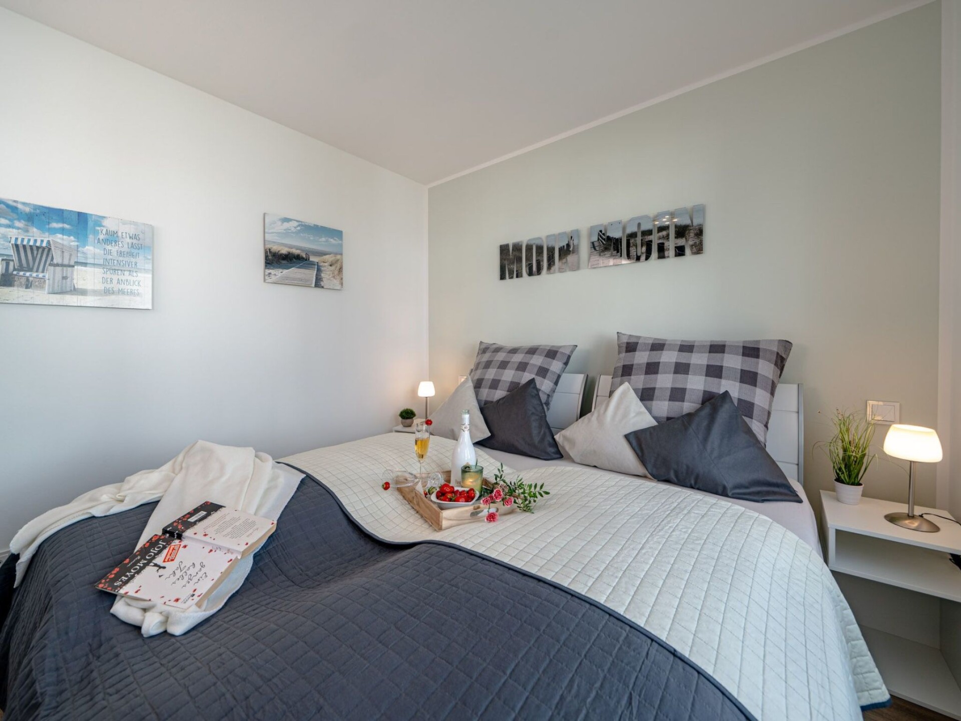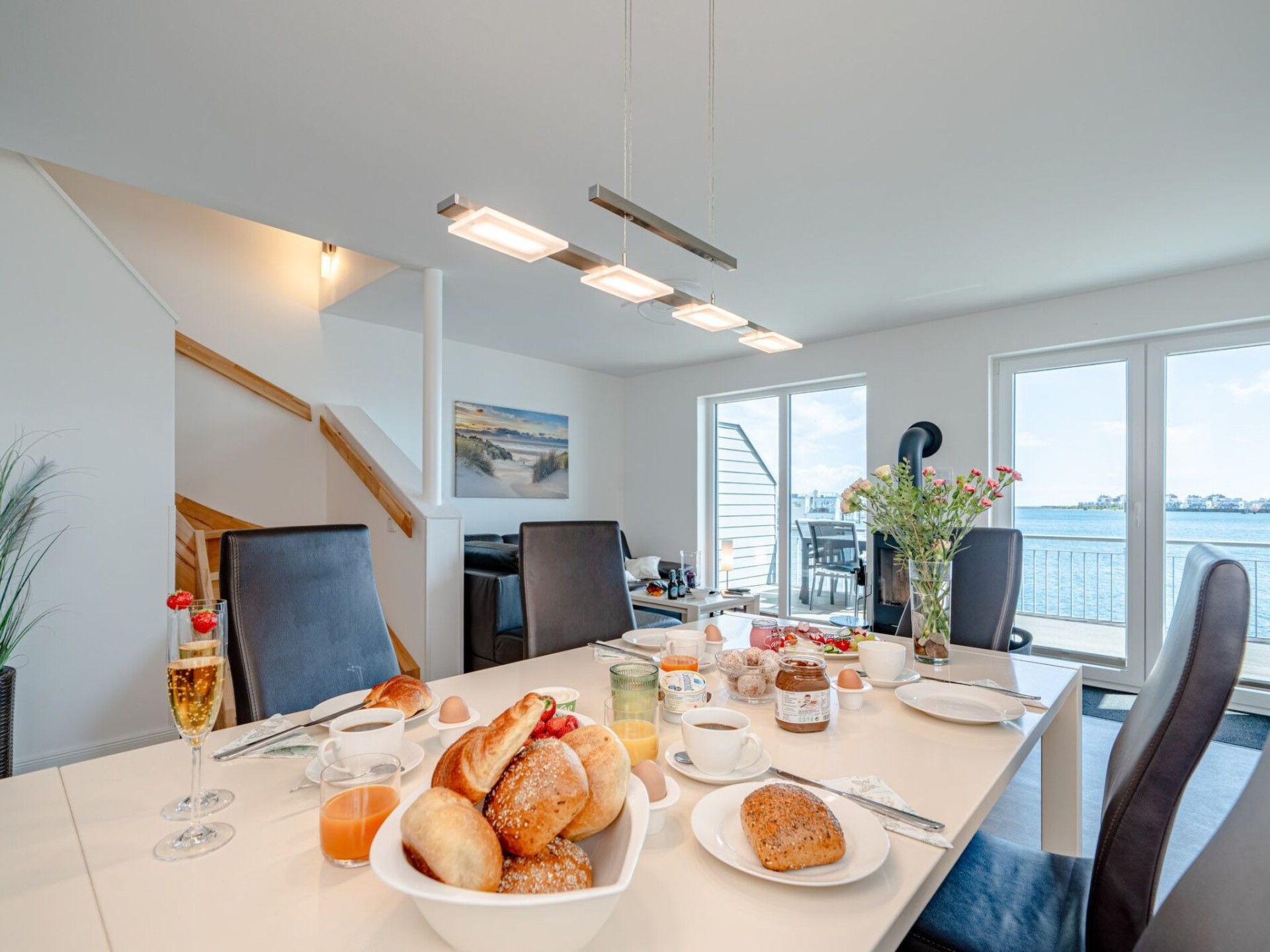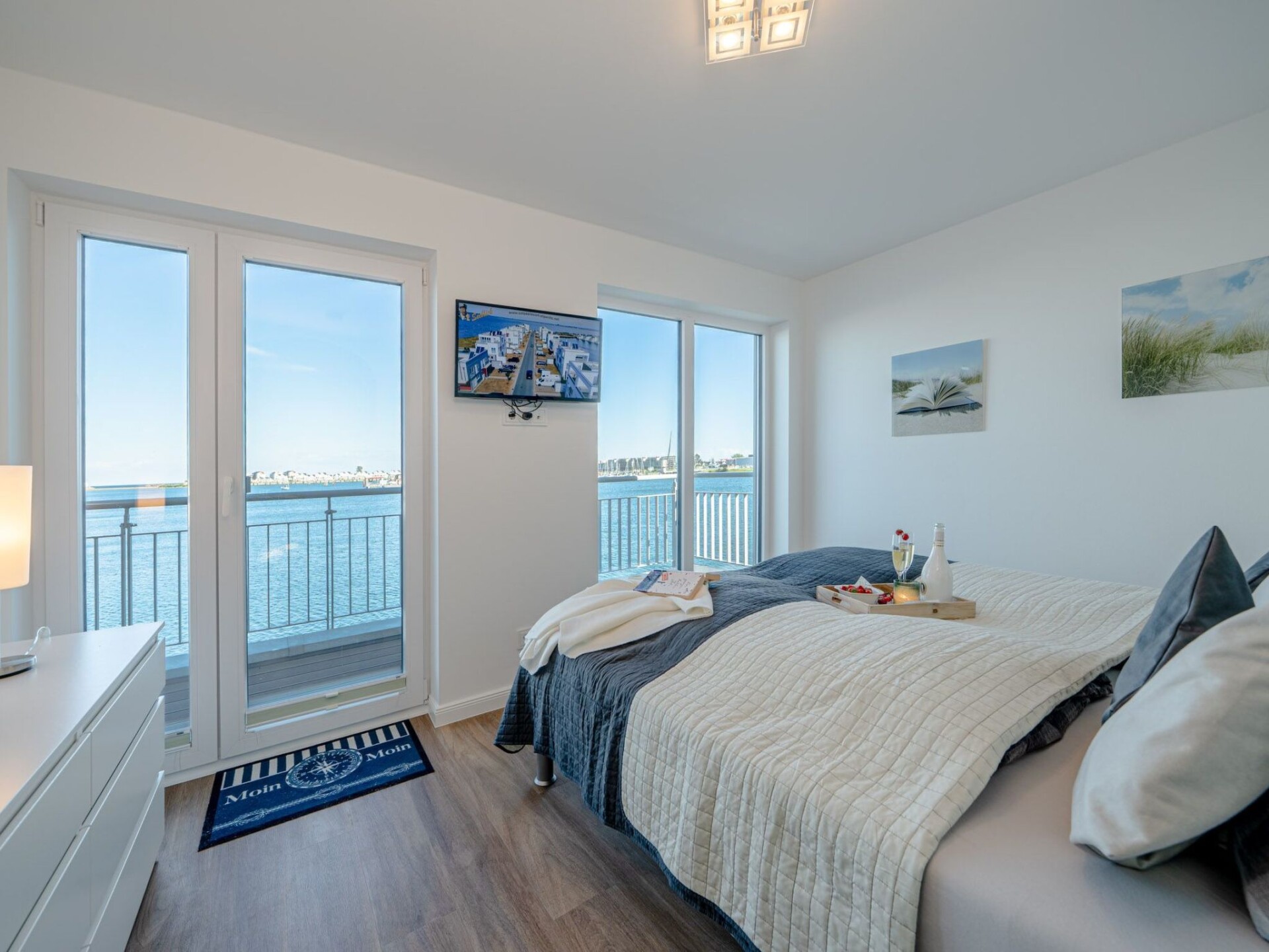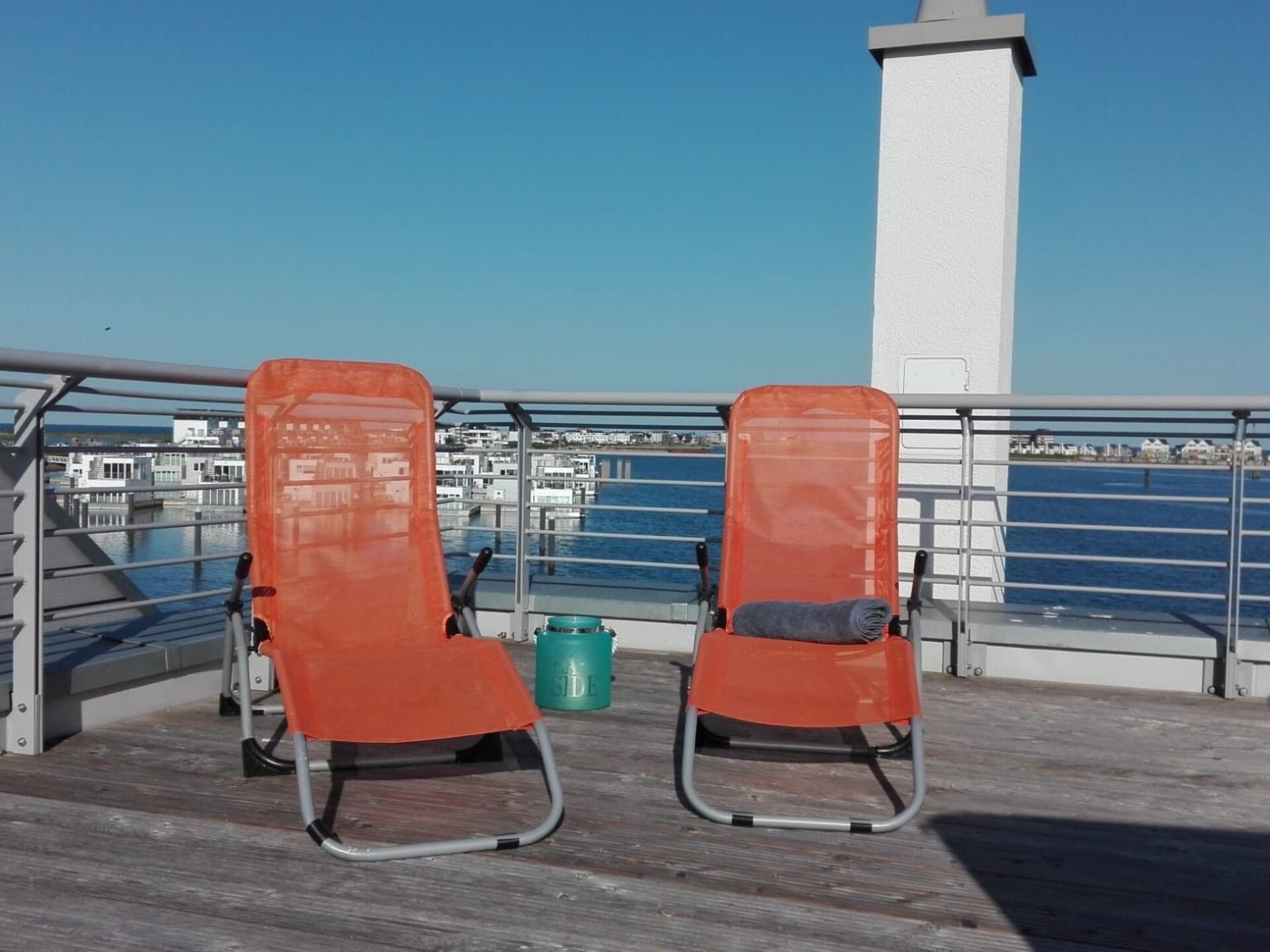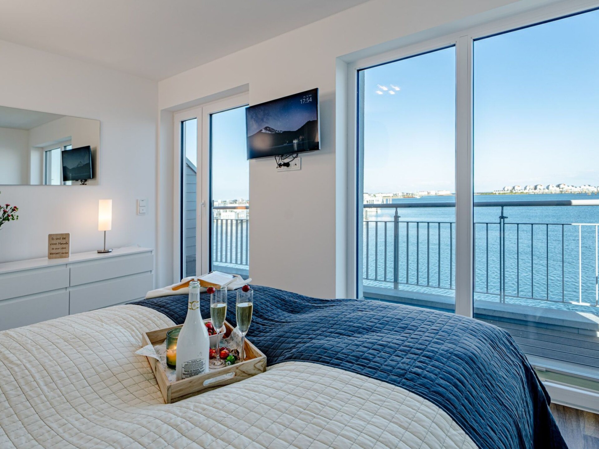 Er zijn twee slaapkamers met uitzicht op het water op de eerste verdieping. De ouderslaapkamer, met uitzicht op de haven, is ingericht met een tweepersoonsbed en biedt toegang tot een balkon en het grote dakterras. De tweede slaapkamer biedt uitzicht op de Baltische Zee fjord Schlei en heeft twee flexibele eenpersoonsbedden. Beide slaapkamers zijn uitgerust met extra flatscreen-tv's en verduisterende plisségordijnen. Als je veel moet werken terwijl je op vakantie bent, is dit zeker geen minpunt. Deze accommodatie heeft een in hoogte verstelbaar bureau in een van de slaapkamers.