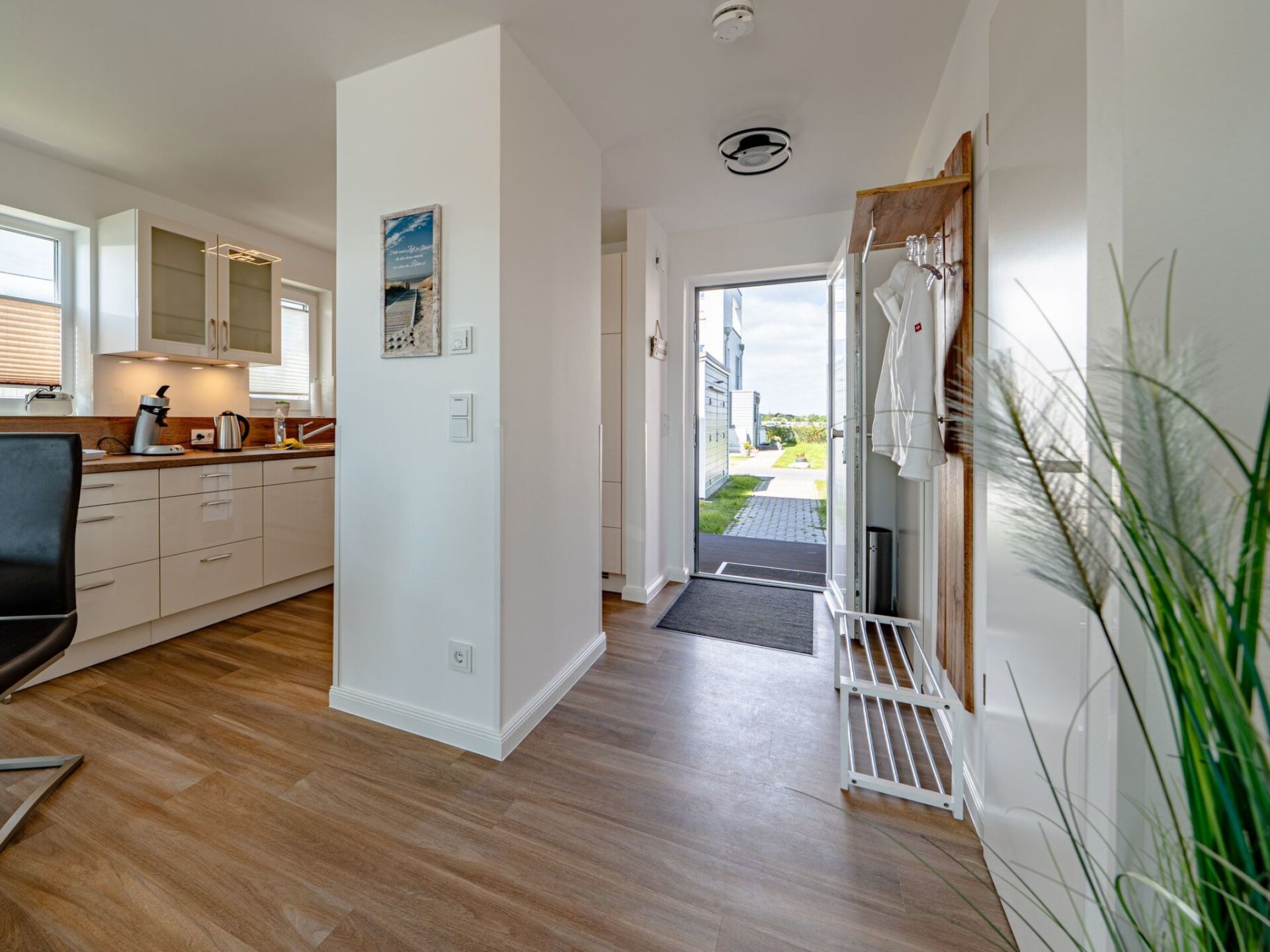 Er zijn twee gratis parkeerplaatsen voor het huis, evenals een afsluitbare fietsenstalling met oplaadmogelijkheden voor e-bikes en een wallbox voor je e-auto. De twee-onder-een-kapwoning maakt niet alleen indruk met zijn comfort, maar ook met zijn unieke locatie. Het kleine witte zandstrand van OstseeResort Olpenitz ligt op slechts ca. 700 m afstand, net als de havenpromenade en de avonturenspeeltuin. Het kilometerslange zandstrand Weidefelder, dat ook bewaakte strandgedeelten en een breed scala aan watersporten biedt, is gemakkelijk te bereiken.