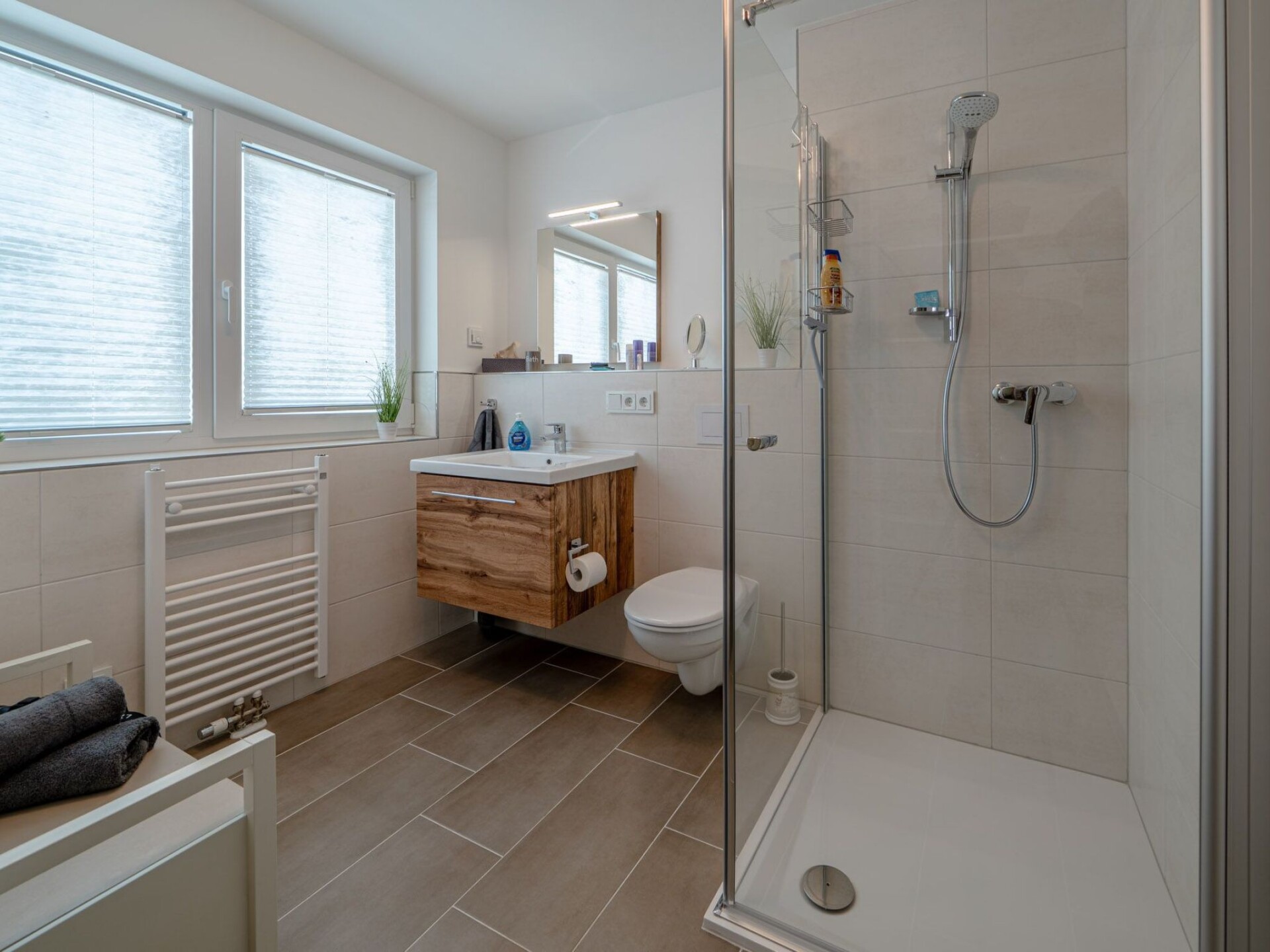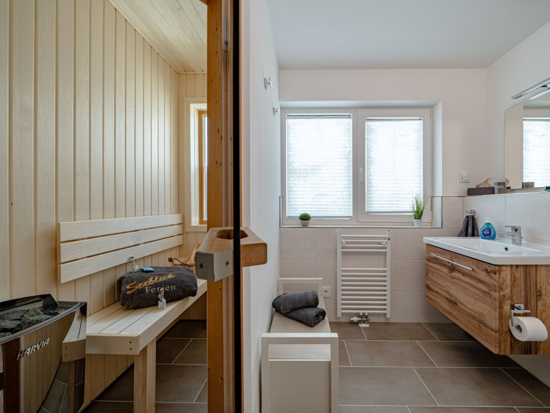 Ook op de eerste verdieping is een moderne wellnessbadkamer met douche en Finse saunacabine - met uitzicht op het water natuurlijk. Er is ook een gastentoilet op de begane grond. De hele Schleivilla Hafenblick by Seeblick Ferien ORO is voorzien van vloerverwarming, waardoor comfort en warmte het hele jaar door gegarandeerd zijn.