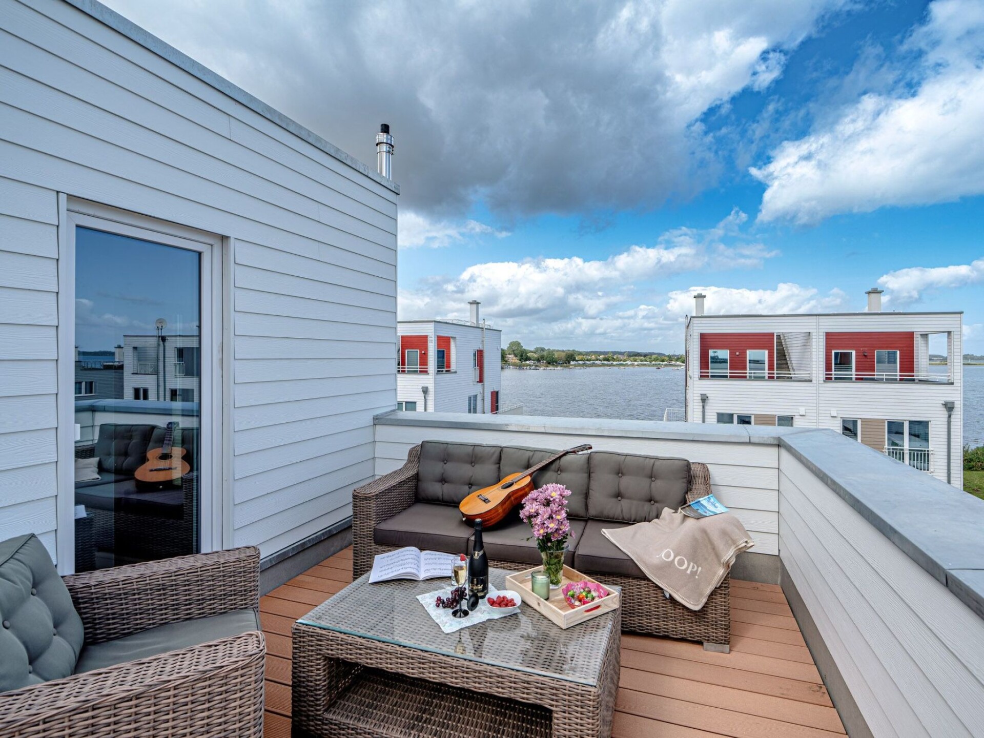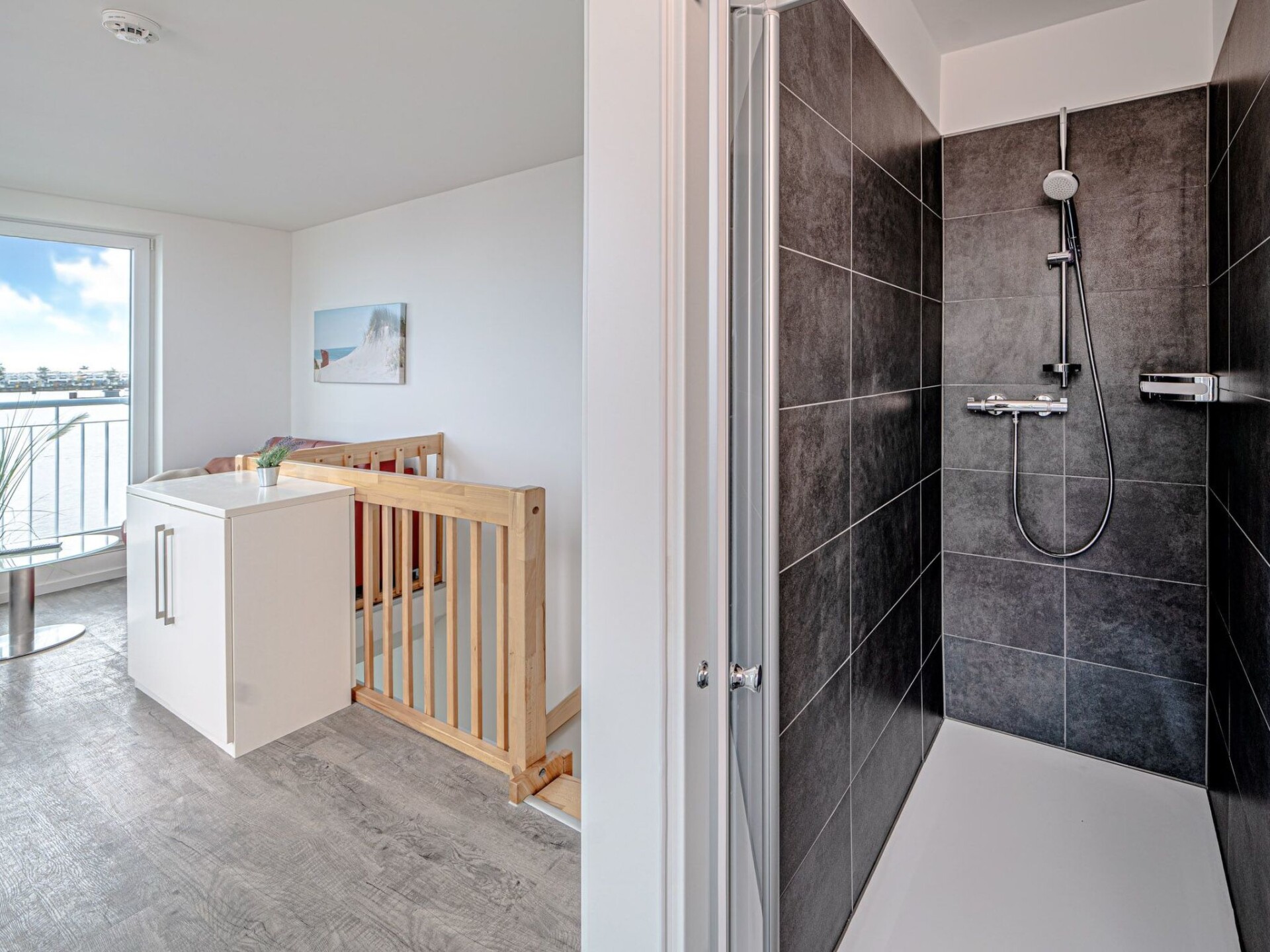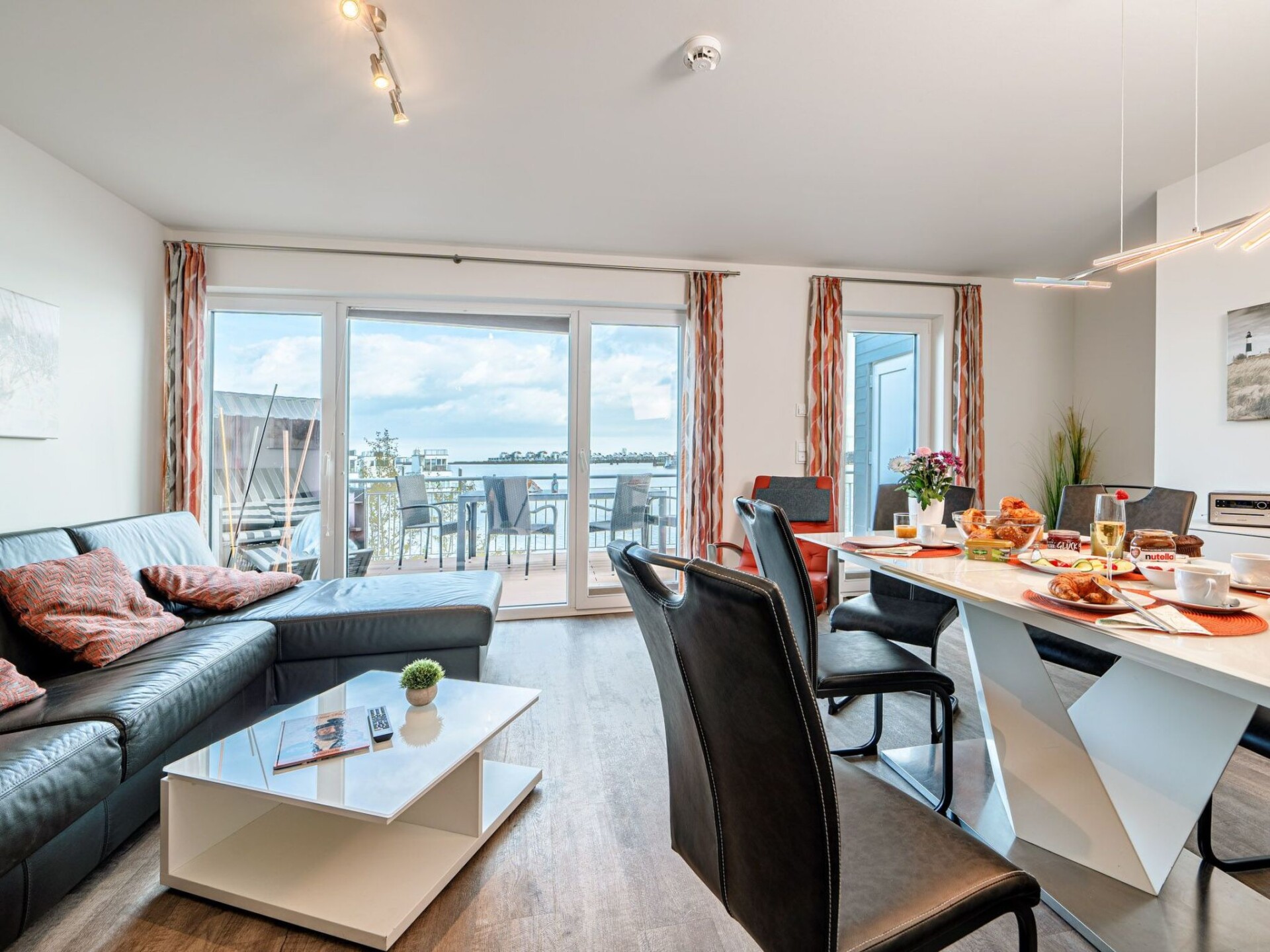Exclusief halfvrijstaand huis Lootsen Hus van Seeblick Ferien ORO op 3 verdiepingen, op een unieke locatie in de Oostzeebadplaats tussen Schlei en haven, met 127 m² woonoppervlakte, terras en dakterras, open haard, sauna, bad met whirlpoolfuncties - en fascinerend uitzicht op de haven, Schlei en Oostzee!Een grote, lichte woon- en eetruimte op de begane grond, een aparte keuken, 2 slaapkamers met hoogwaardige tweepersoonsbedden op de bovenverdieping, een woon-/slaapruimte op de galerij op de 2e verdieping met comfortabele slaapbank en prachtig uitzicht, nog een slaapbank in het onderste woongedeelte en 2 douches bieden voldoende ruimte voor maximaal 7 personen om zich thuis te voelen. In dit geval zijn er ook 2 parkeerplaatsen direct voor de deur (gratis)! Dit huis is echt een ABSOLUUT HIGHLIGHT! Het appartement heeft een open haard, sauna en bad met whirlpoolfuncties.